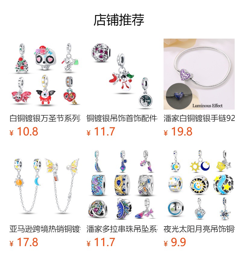 아마존 핫 세일 화이트 구리 실버 도금 할로윈 할로윈 빛나는 검은 유령 펜던트 구슬 DIY 팔찌 목걸이스토어 가기