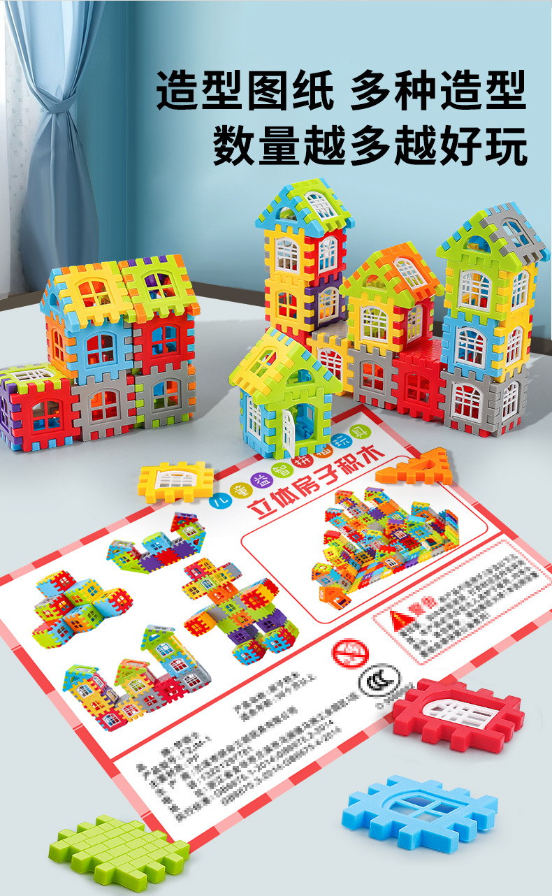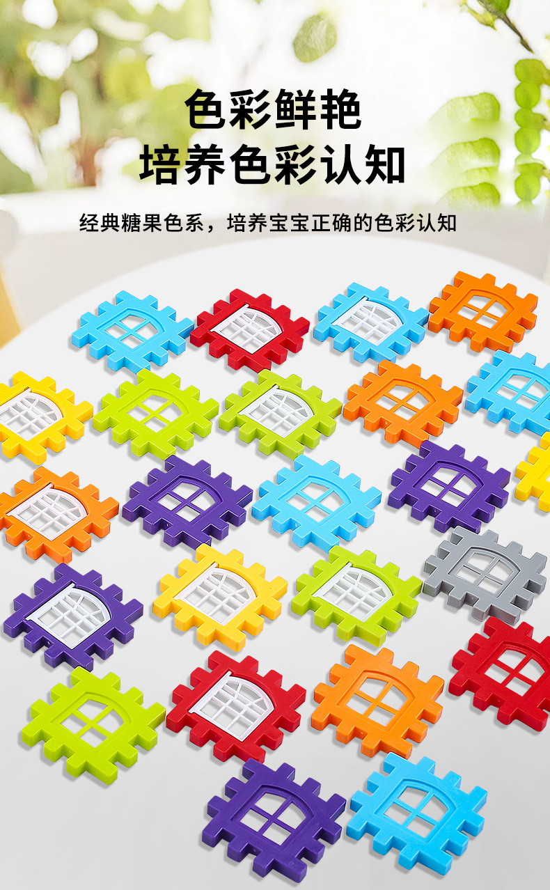 3 세 6 세 소년 소녀 아이들은 장난감 퍼즐 큰 입자 사각형 벽 창 모델 퍼즐을 조립하는 집 빌딩 블록을 만듭니다.스토어 가기