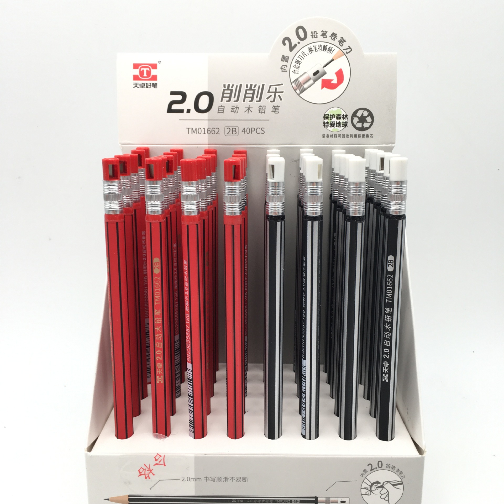 Tianzhuo 01662 기계식 연필은 초등학생이 쓸 수있는 두꺼운 코어 자동 펜 2.0mm 프레스 연필을 깨기 쉽지 않습니다.스토어 가기