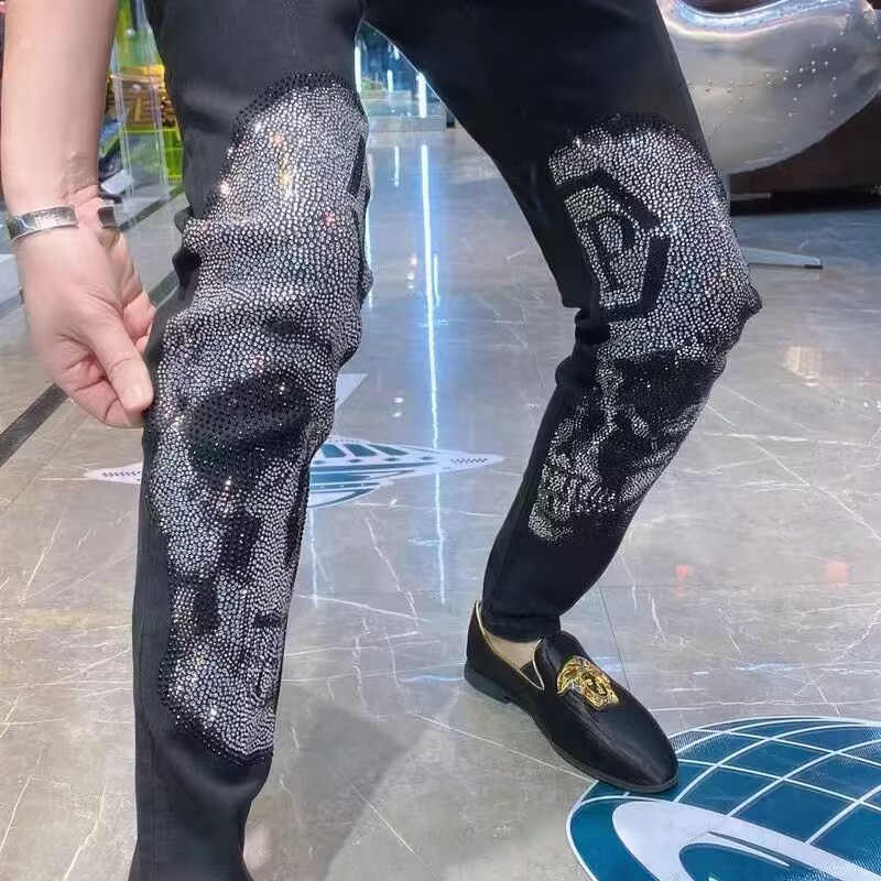 크로스 보더 공급 업체 핫 드릴링 청바지 남성용 스플래시 잉크 슬림핏 발 바지 남성용 같은 바지스토어 가기
