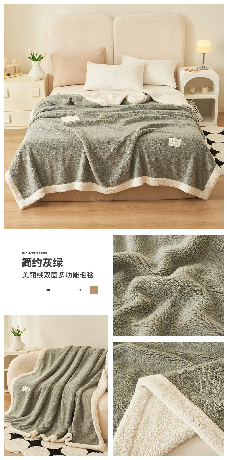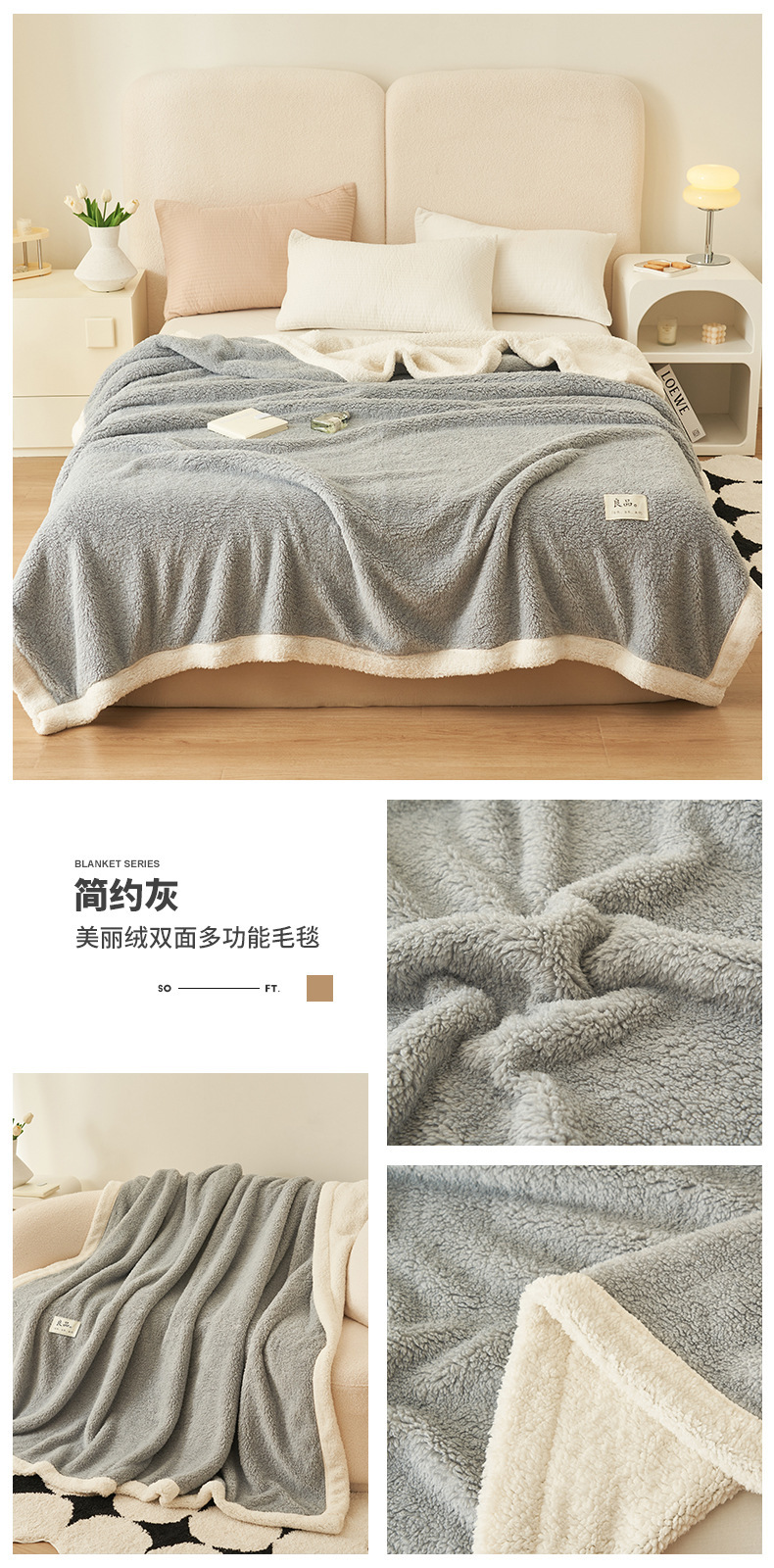 • 아름다운 벨벳-순수한 쌀 [양면 기모 피부 친화적 따뜻함]]