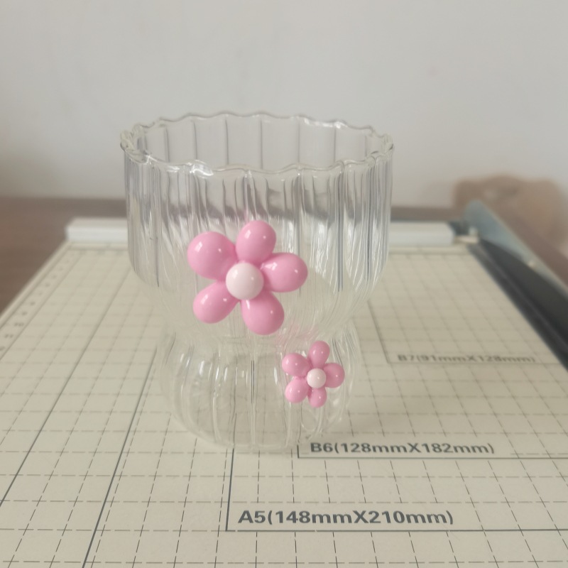 条纹玻璃杯材质是高硼硅耐热玻璃,可装熟食或开水