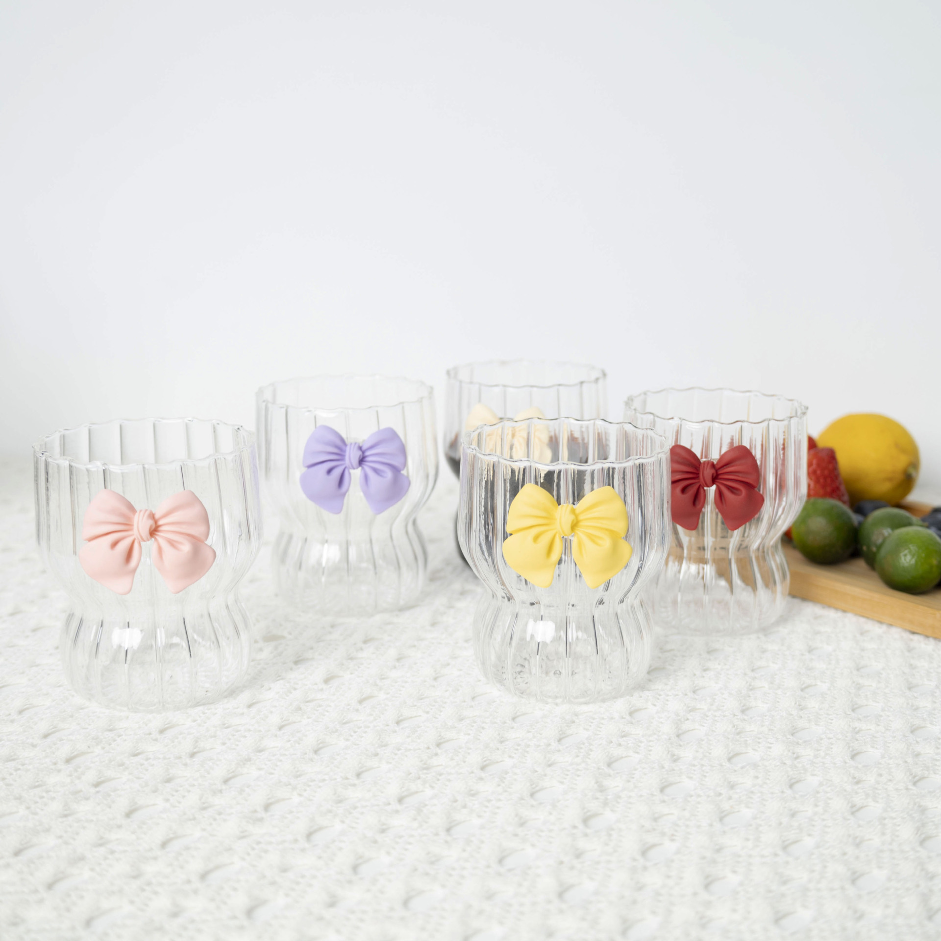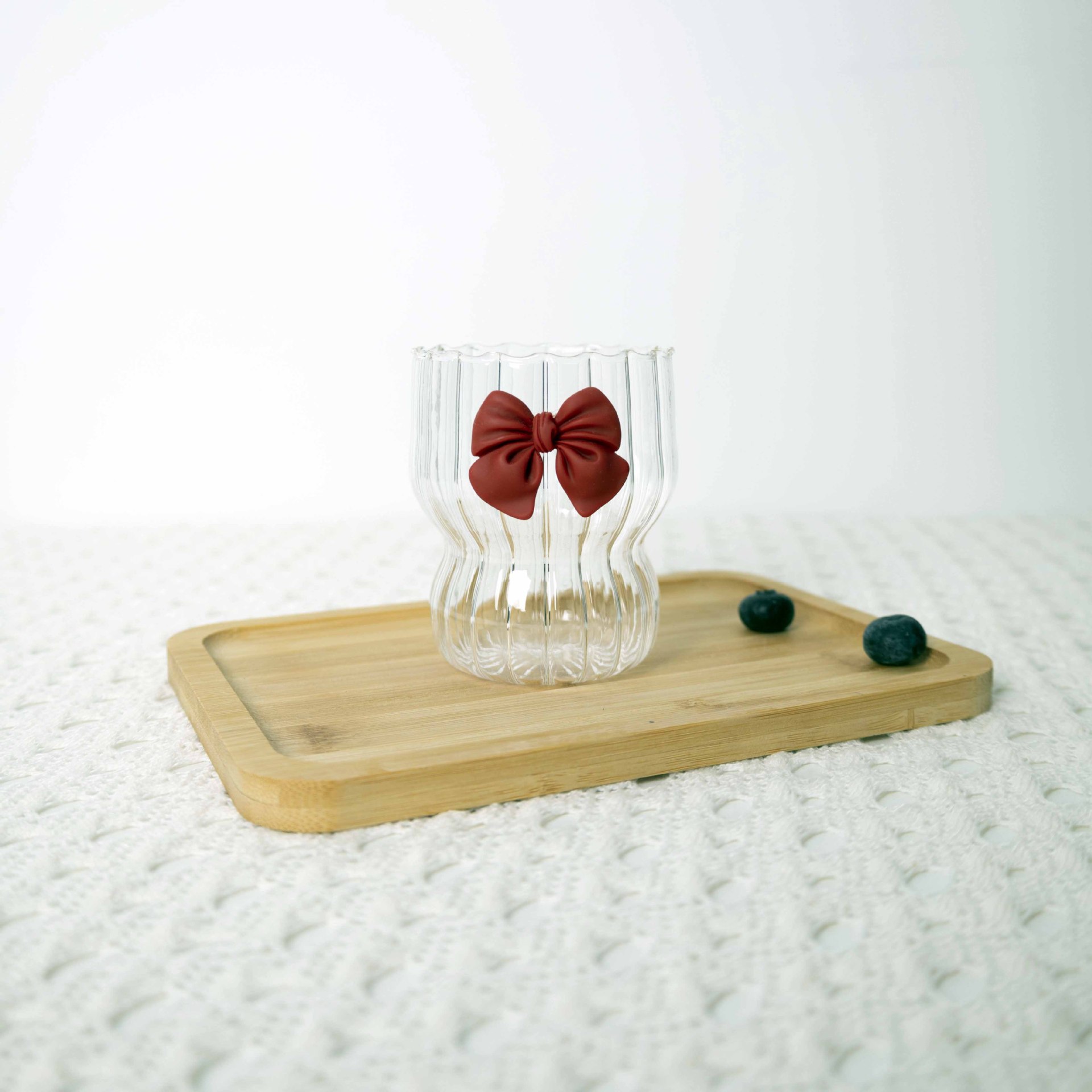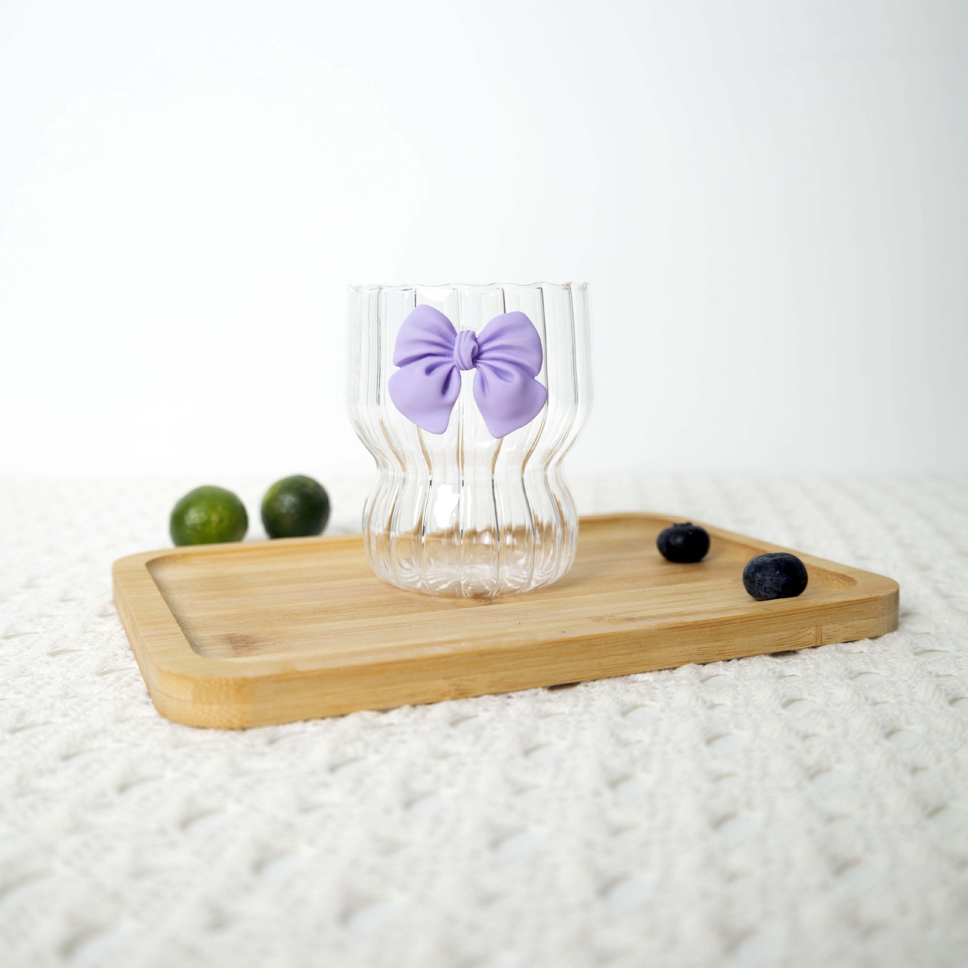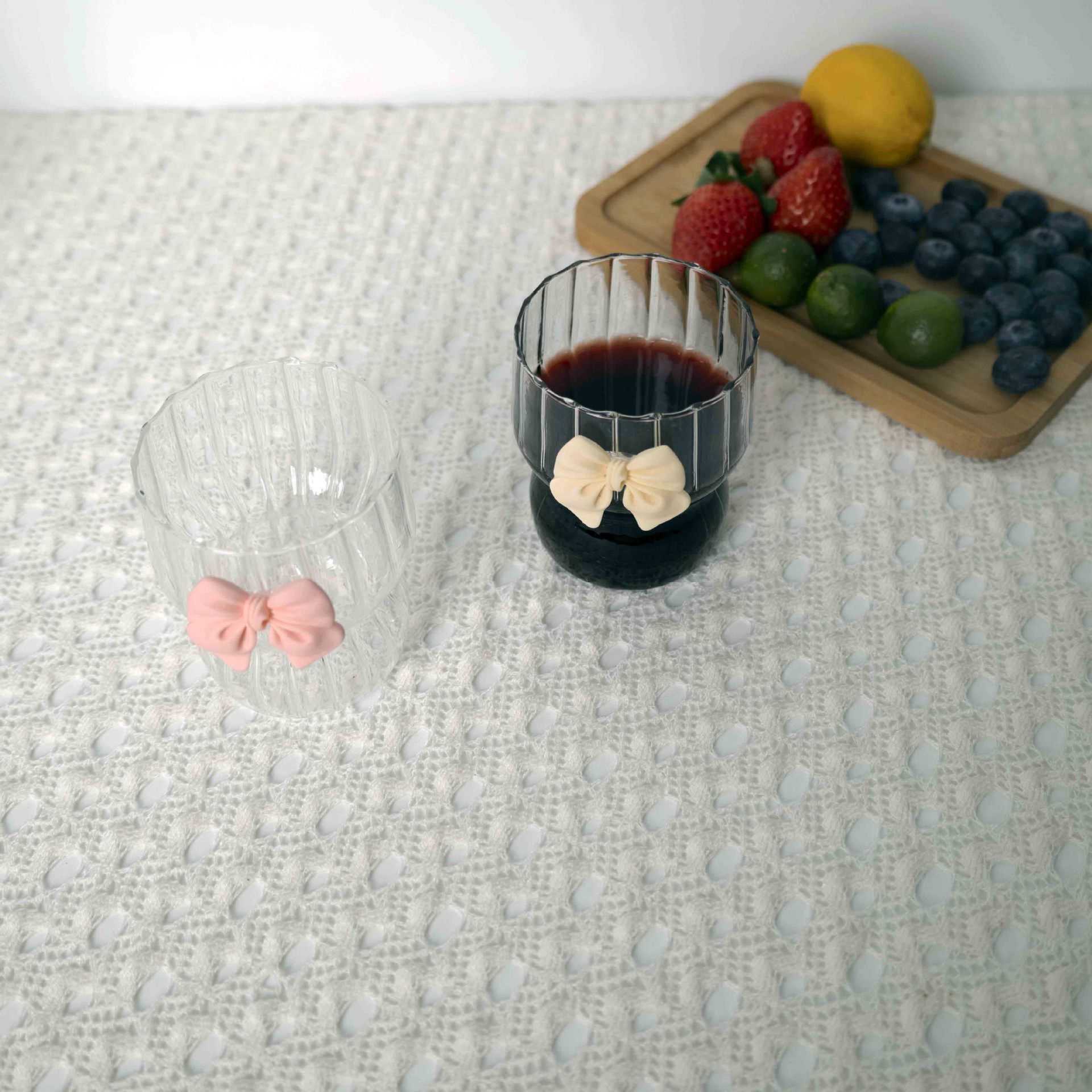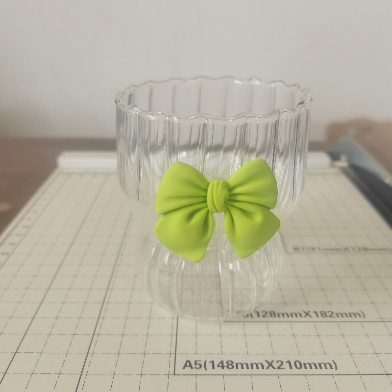 蝴蝶结是用UV胶经过紫外线灯照过贴在玻璃表面的,本身非常牢固,可放开水里面泡煮确保蝴蝶结不脱落。但蝴蝶结贴底部是平的,玻璃杯有弧度,所以请各位公主大大高抬贵手别大力压她。