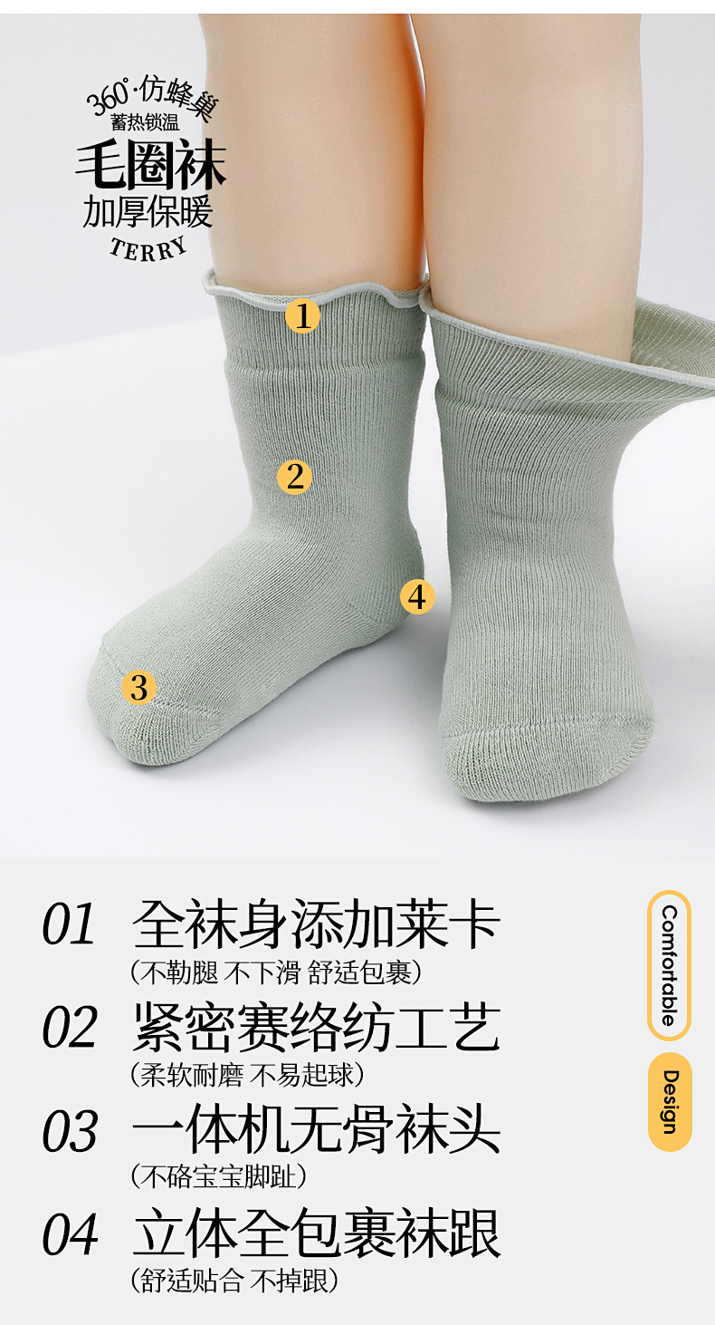 베이비 두꺼운 테리 아기 양말 가을과 겨울 중간 길이 스타킹 어린이 양말 레이스 신생아 양말