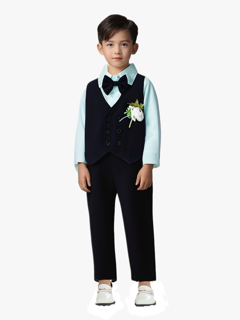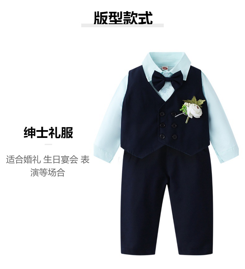 크로스 국경 유럽과 미국 새로운 봄과 가을 긴 소매 셔츠 조끼 코사지 멀티 피스 세트 소년의 결혼식 원피스 성능 원피스