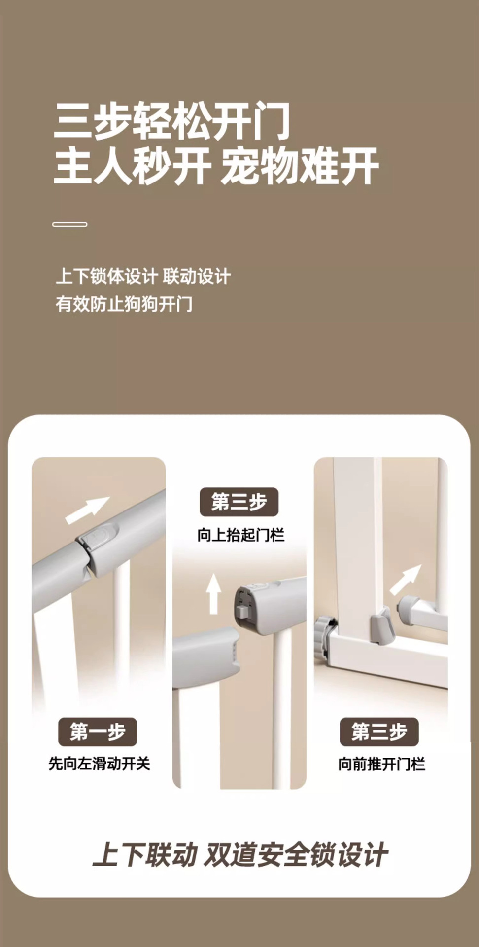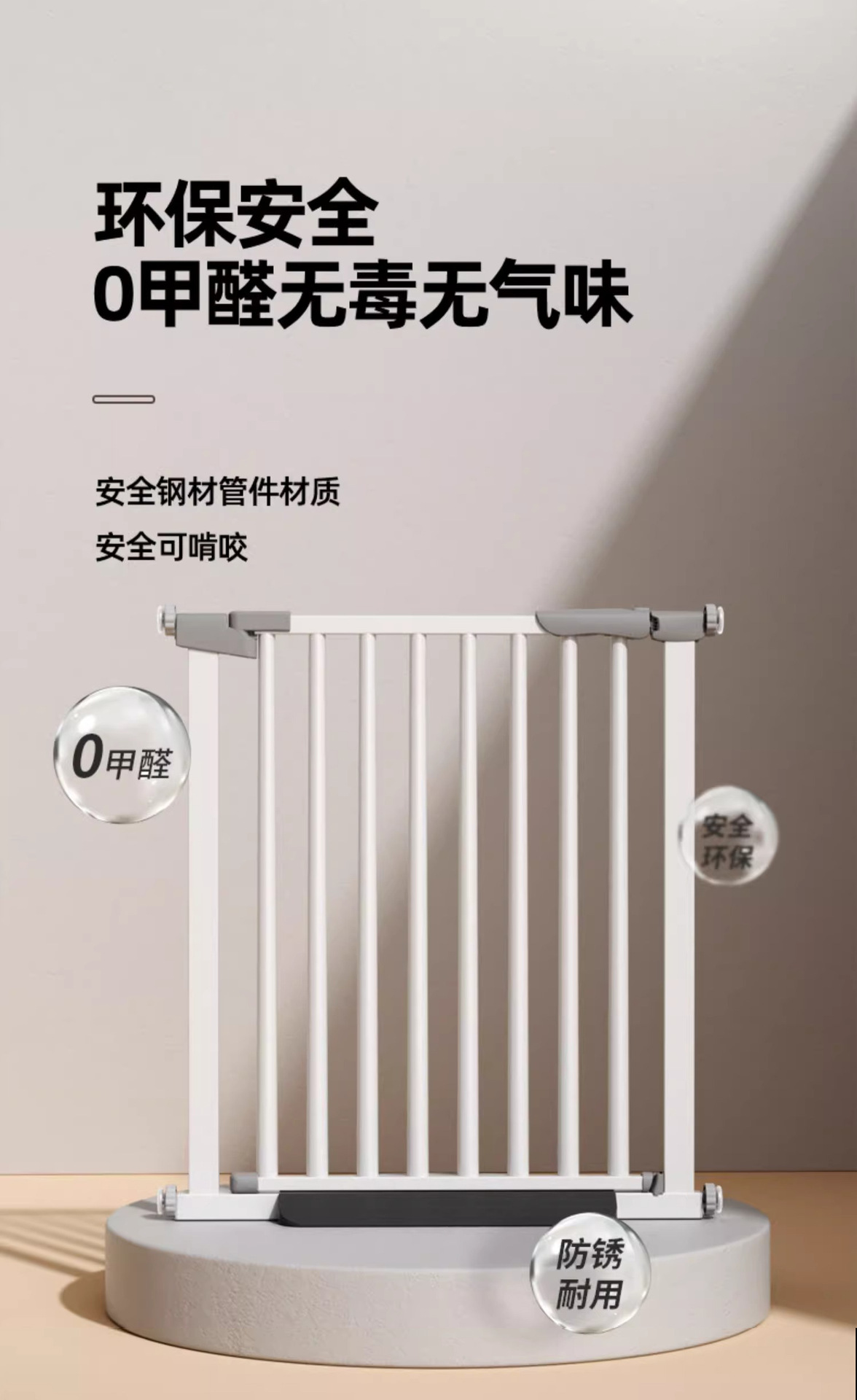 【产品简介】本产品全称为儿童安全门栏:可适用于防护儿童及宠物