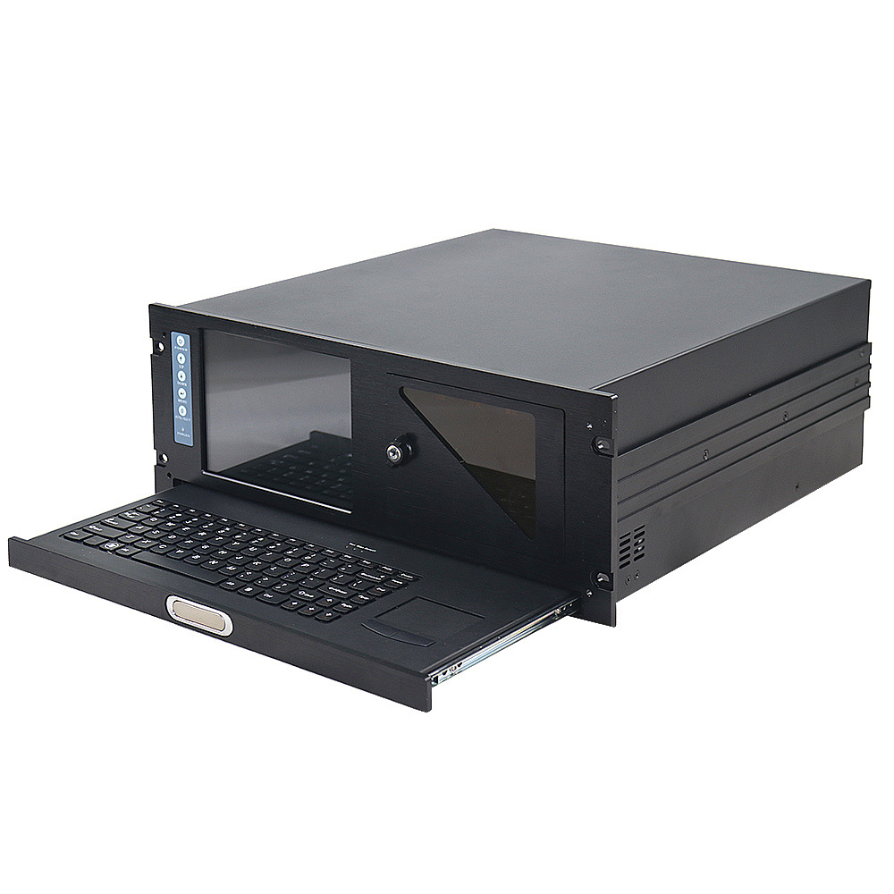 키보드 랙이있는 9 인치 디스플레이 화면 보조 화면이있는 4U 섀시 산업용 제어 올인원 워크 스테이션 서버 사용자 정의