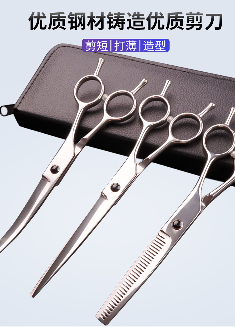 • 7 인치 더블 테일 네일 가위 + 가위 가방 + 강철 빗