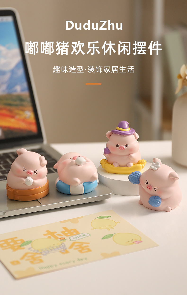 귀여운 귀여운 애완 동물 Dudu 돼지 수지 작은 장식품 만화 치유 사무실 침실 데스크탑 장식 장식품 인형 선물