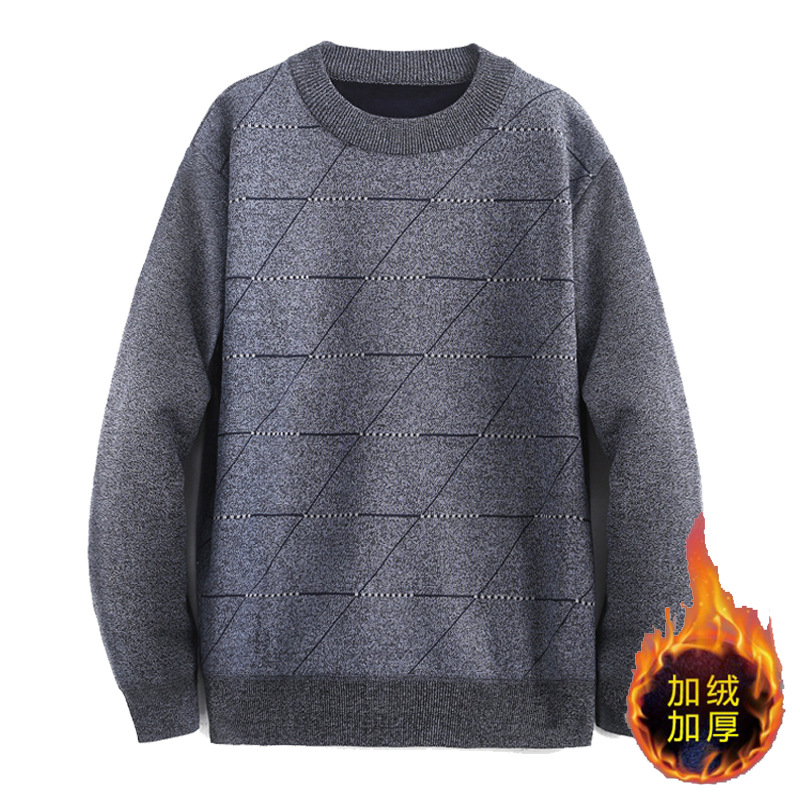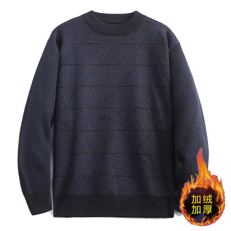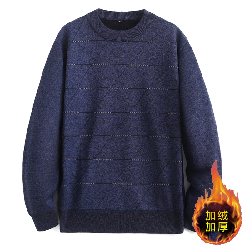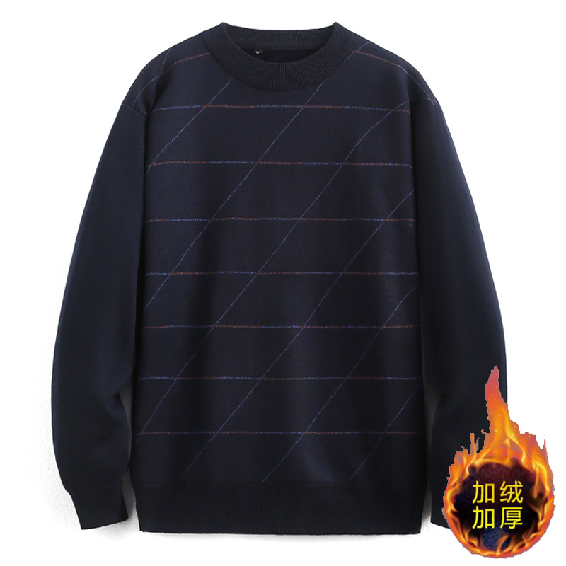 남성용 라운드넥 가을 겨울 플리스 스웨터 풀오버 아빠룩 니트 스웨터 겨울용 두꺼운 루즈핏 이너웨어