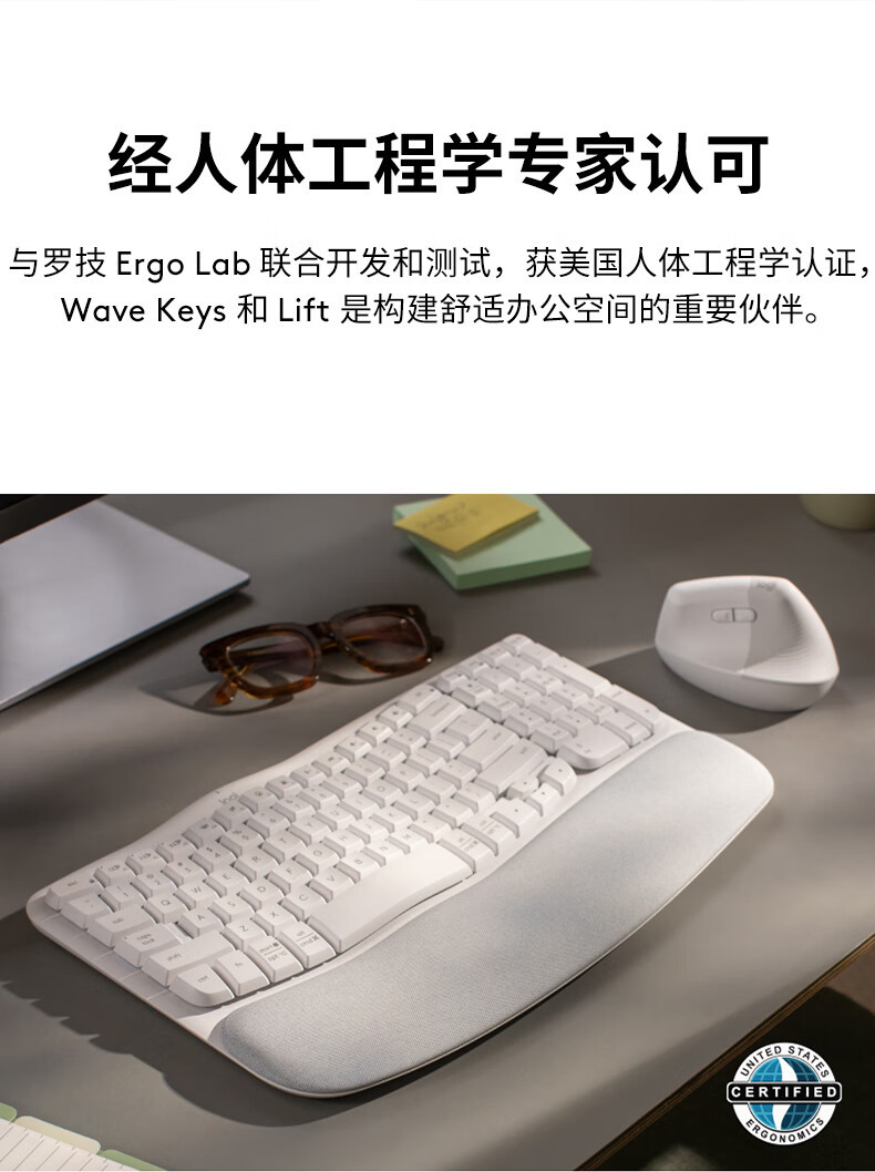Logitech 웨이브 키 인체 공학적 키보드 + 패딩 손바닥 받침대가있는 4 ° 틸트 브래킷