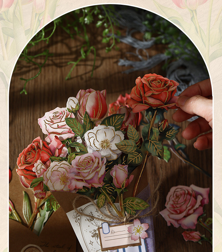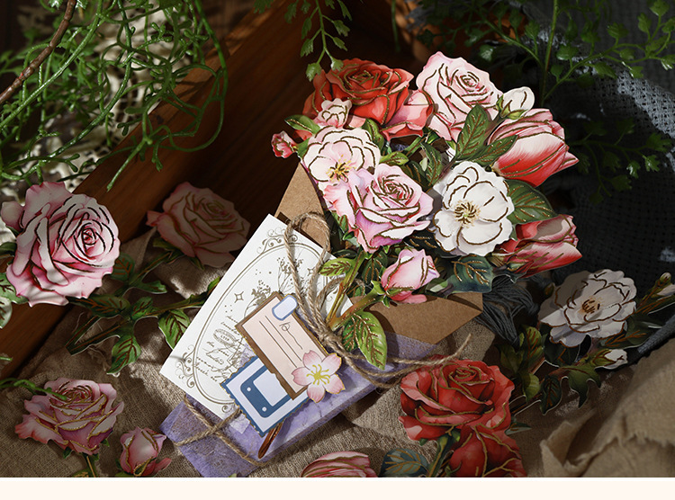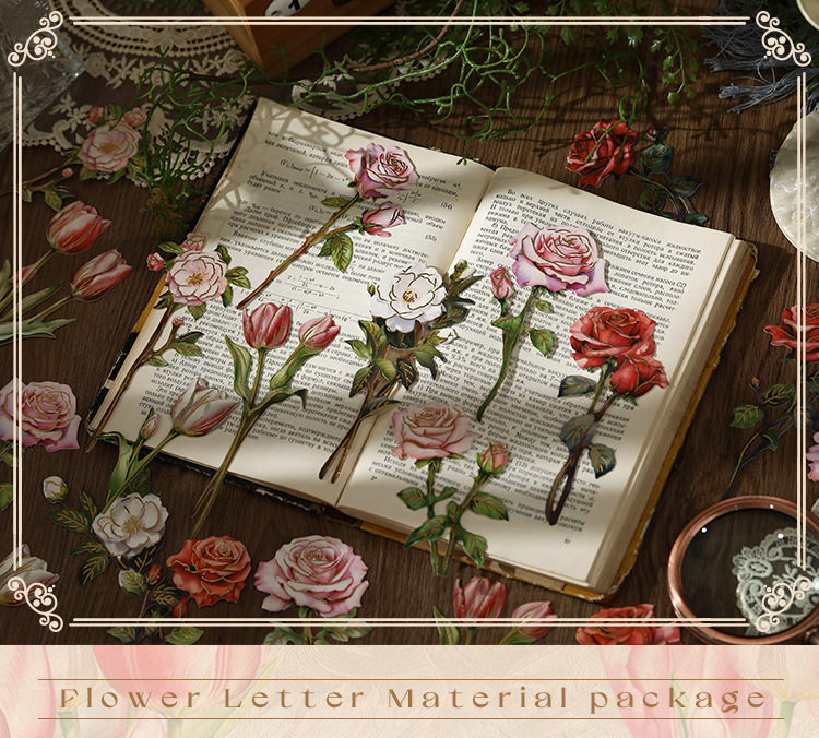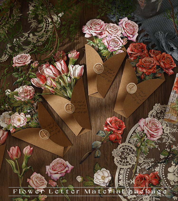 언어 유휴 꽃 편지 재료 가방 가벼운 복고풍 시뮬레이션 꽃다발 선물 손 계정 배경 기본 장식 재료 가방스토어 가기