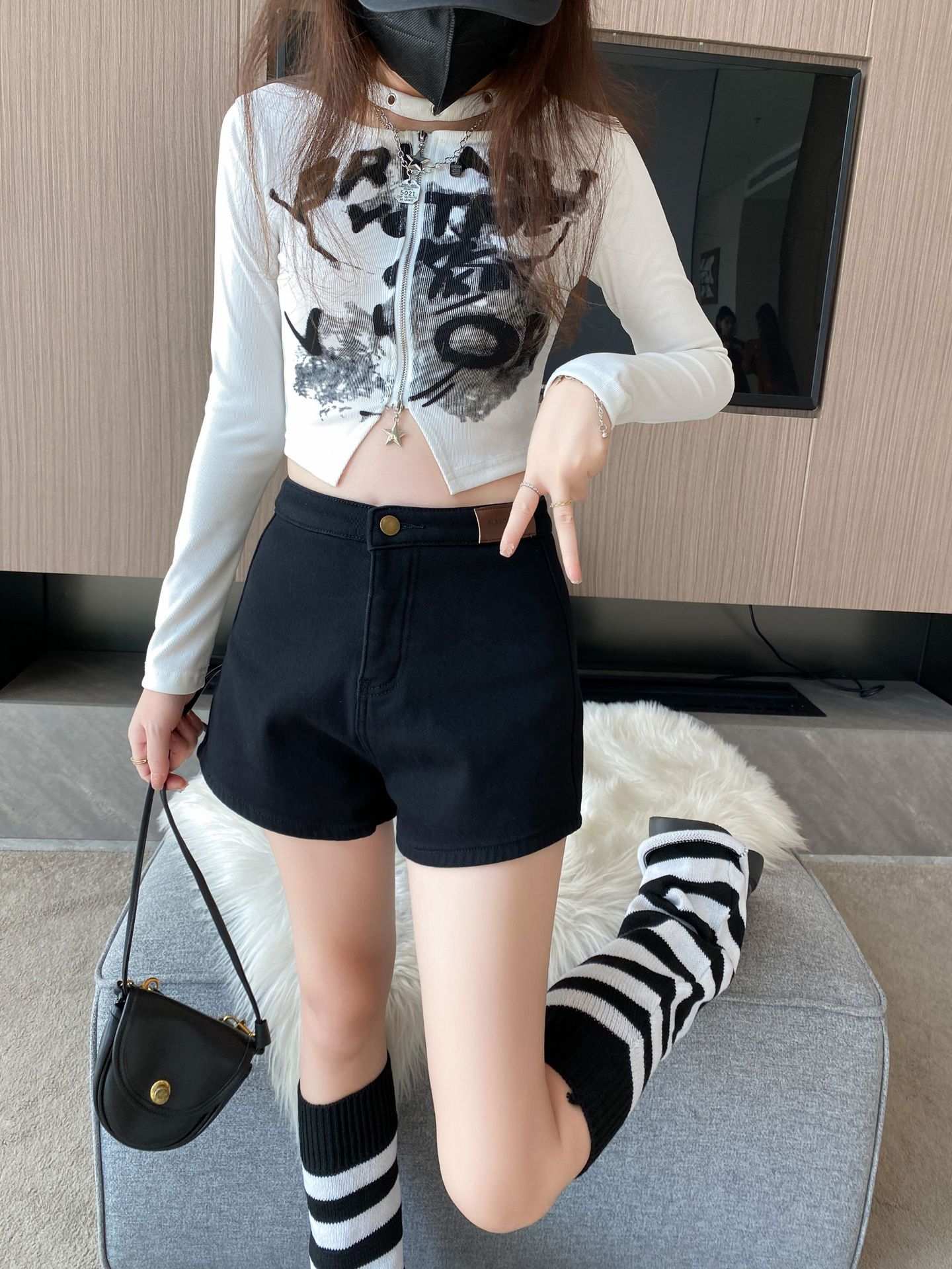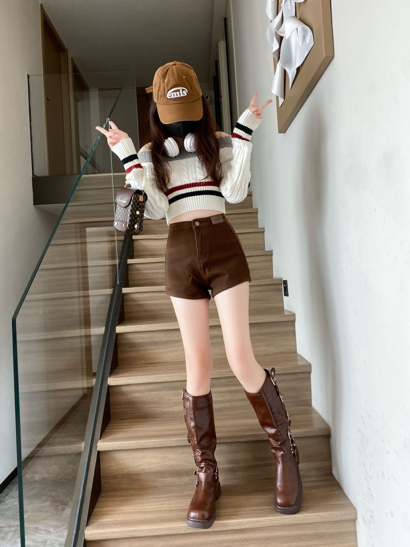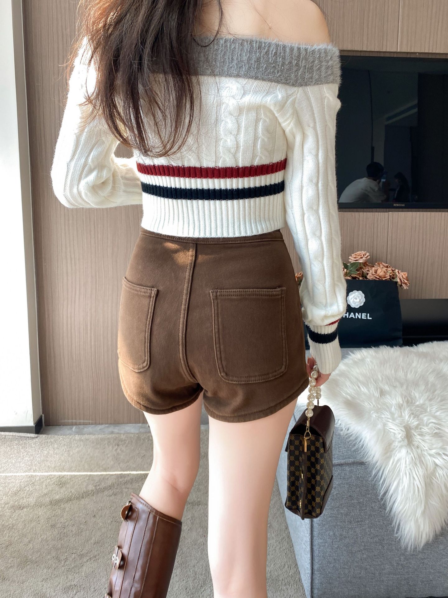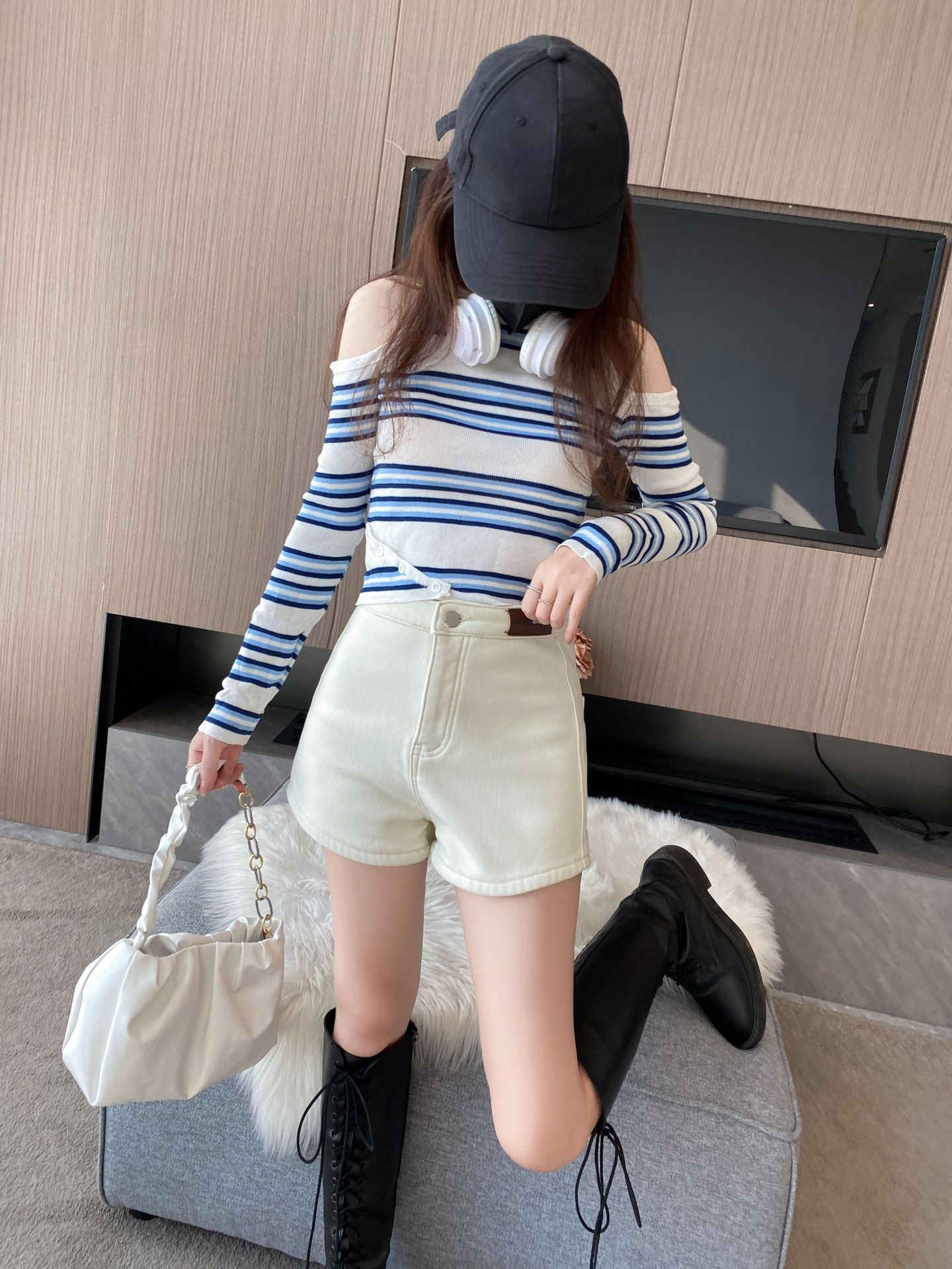 기모 두꺼운 반바지 여자의 겉옷 바닥 2023 가을 새로운 하이 웨이스트 스파이스 소녀 스키니 청바지 엉덩이 핫 팬츠스토어 가기