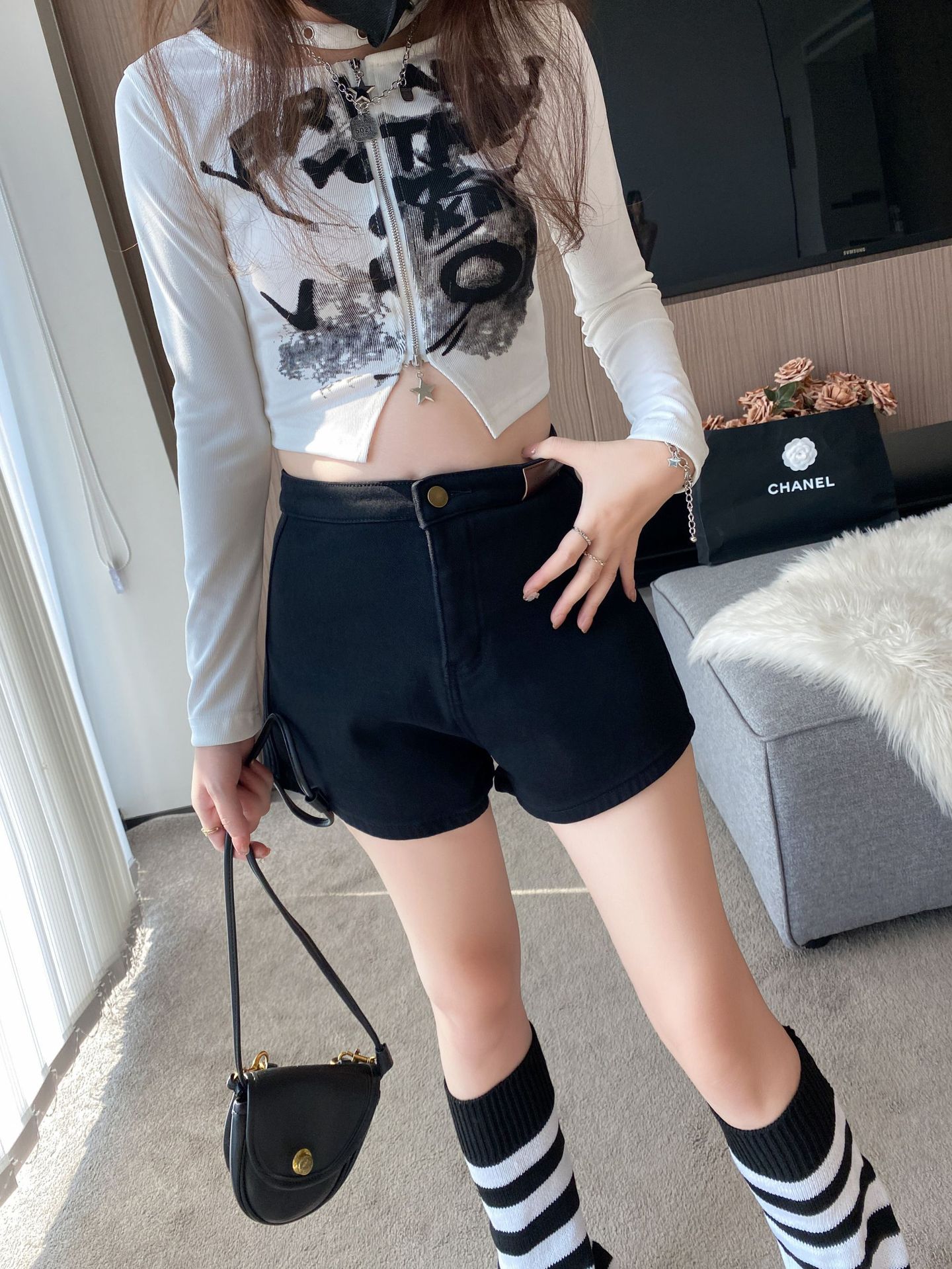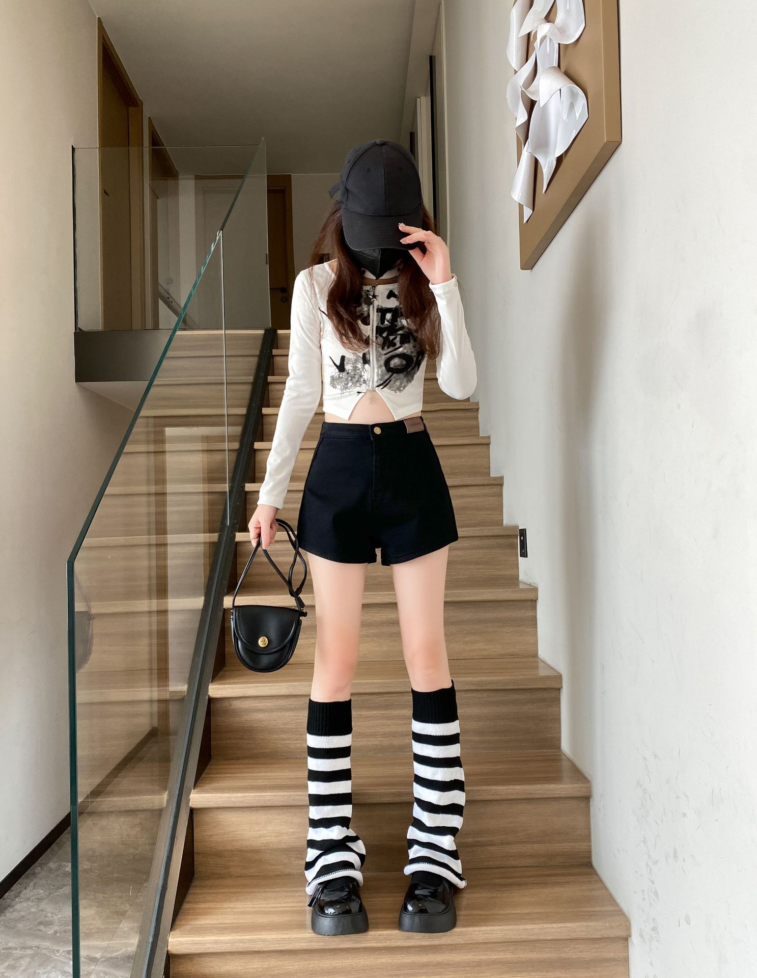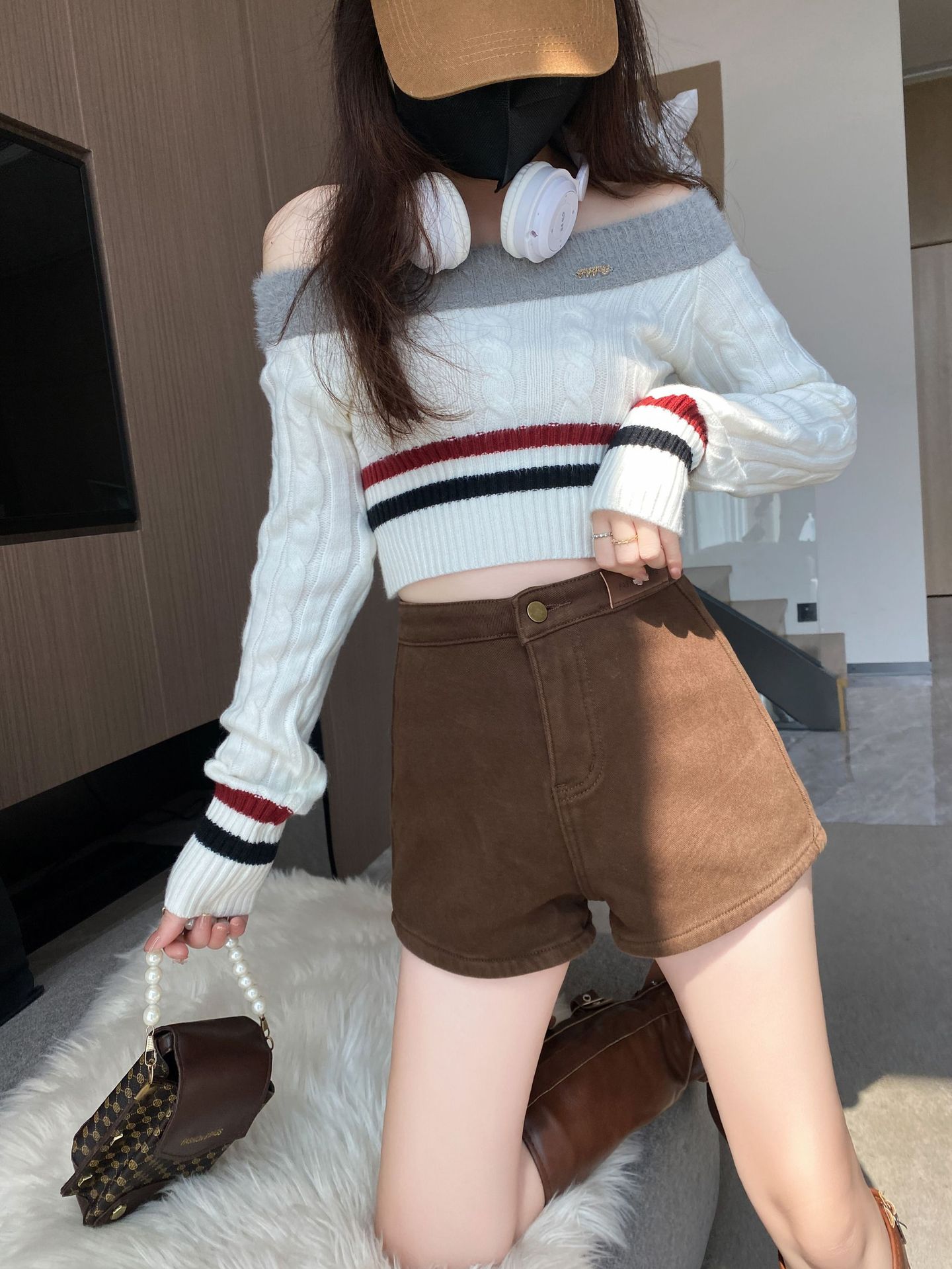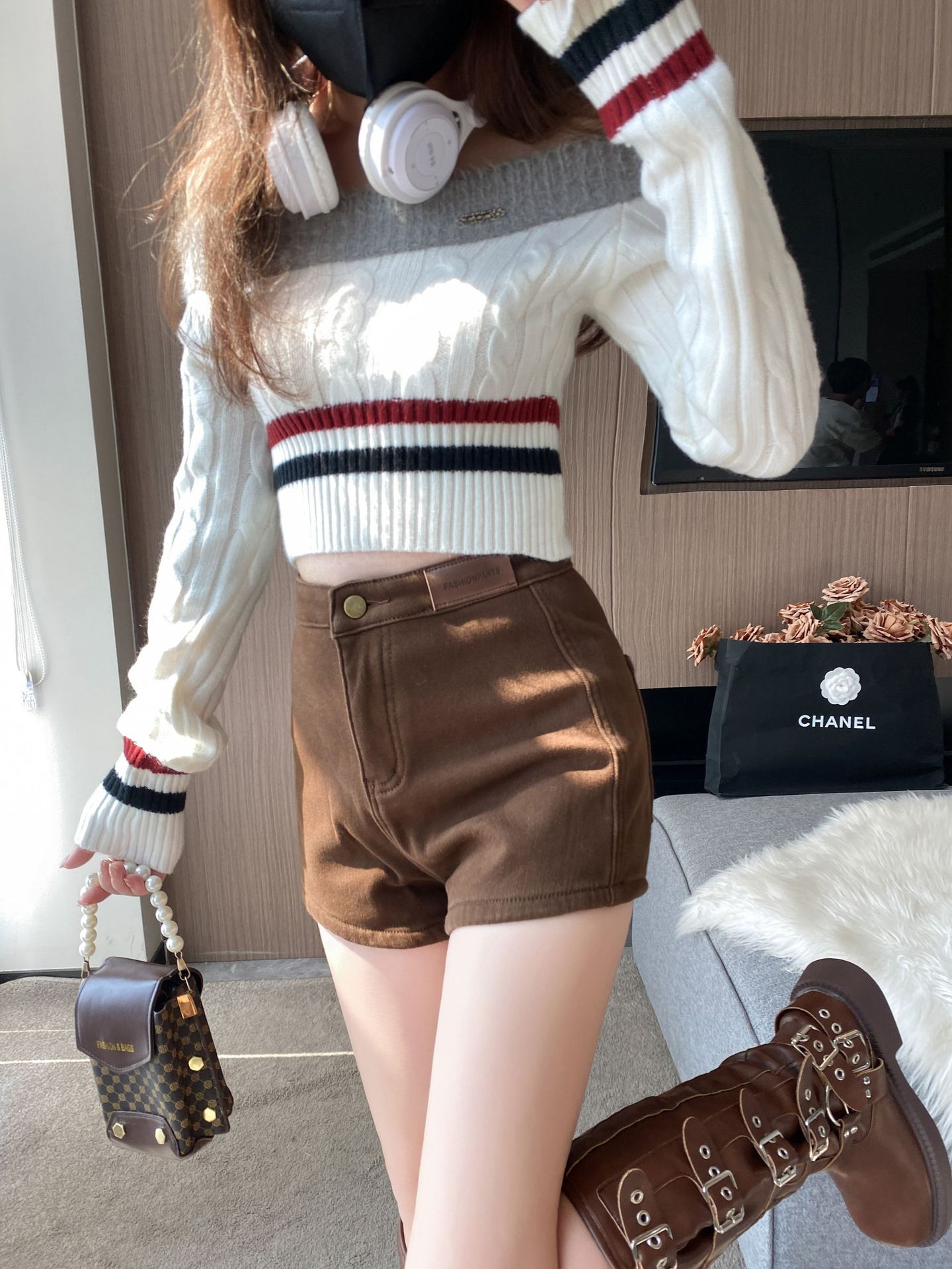 기모 두꺼운 반바지 여자의 겉옷 바닥 2023 가을 새로운 하이 웨이스트 스파이스 소녀 스키니 청바지 엉덩이 핫 팬츠스토어 가기
