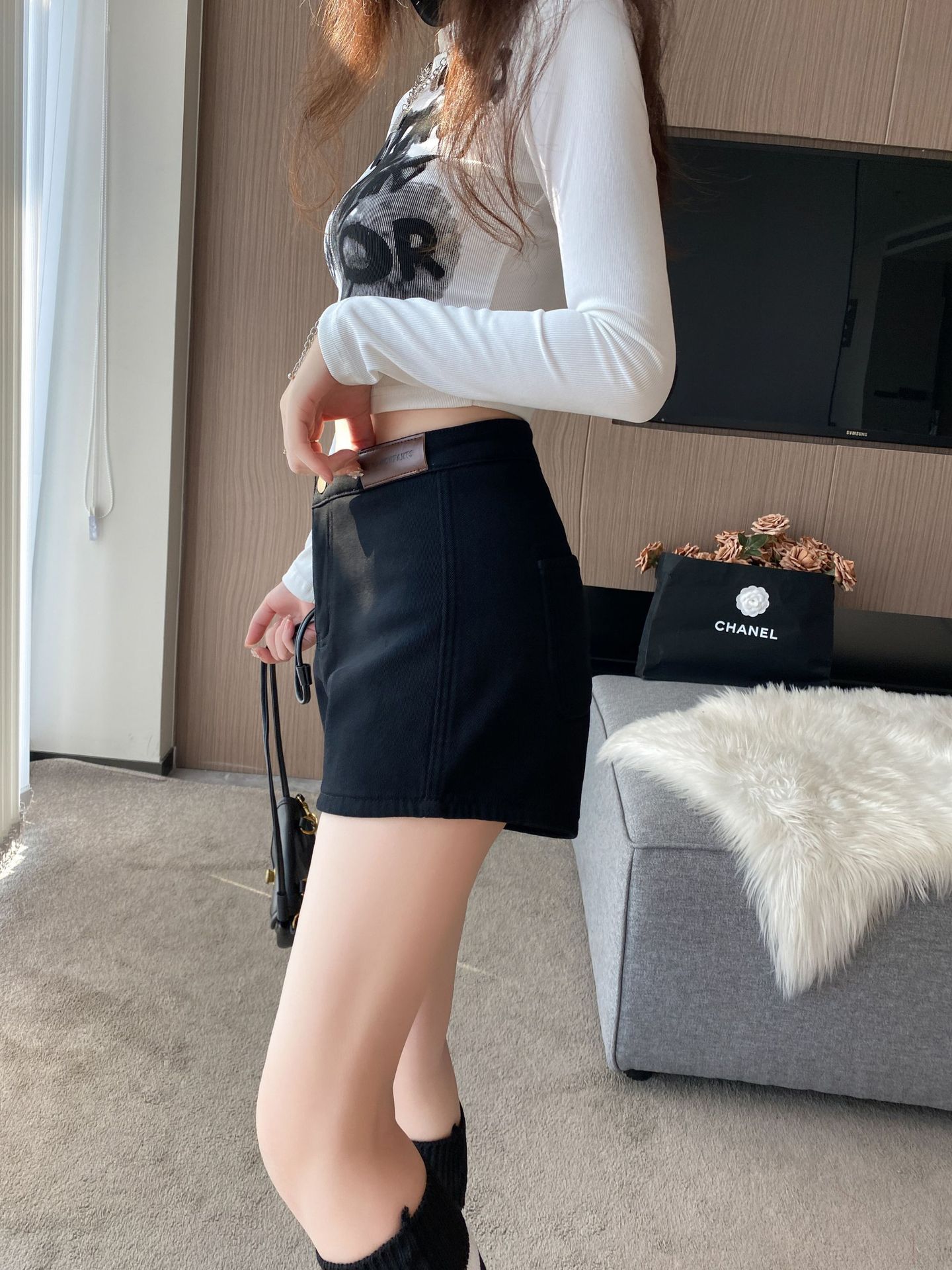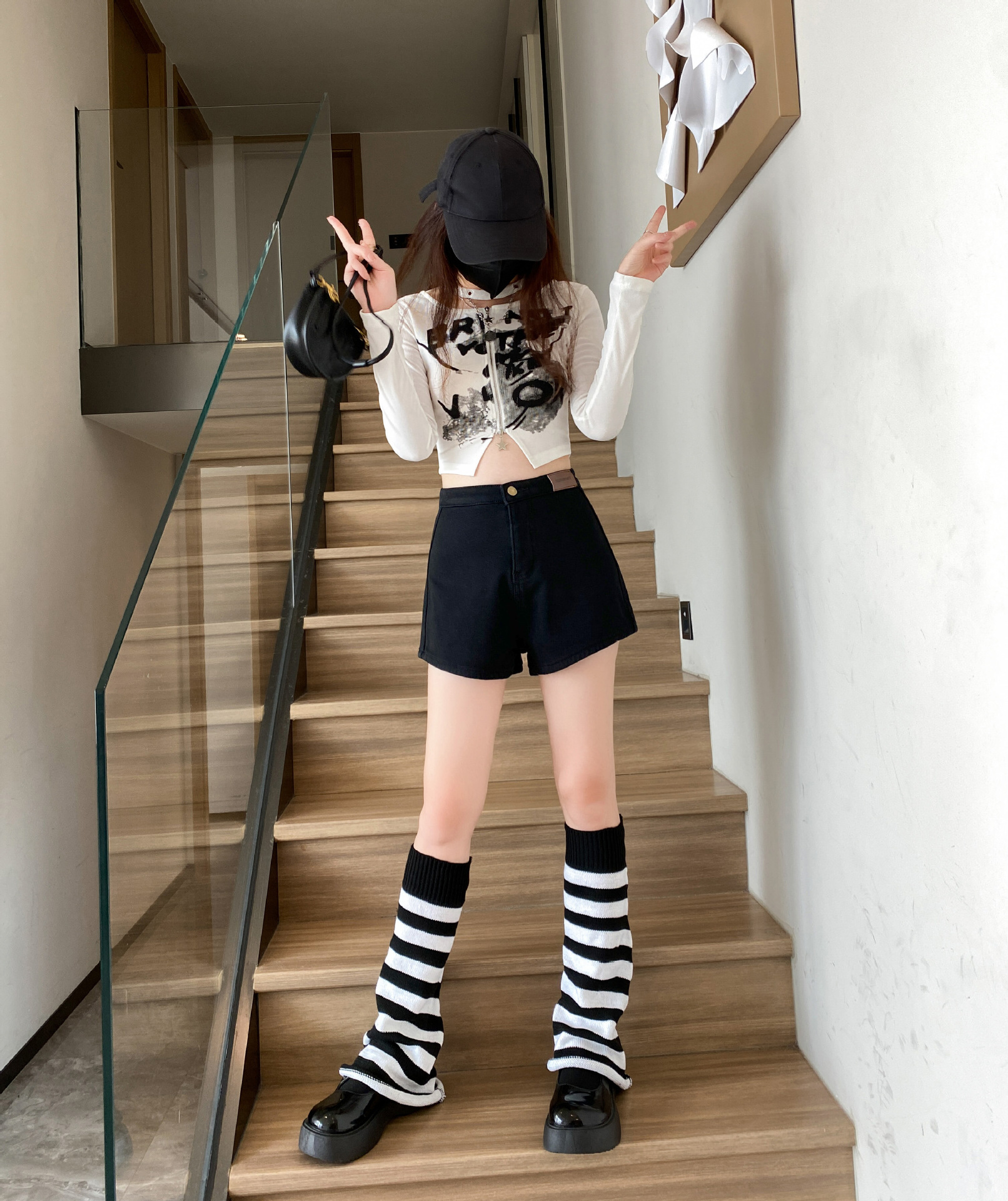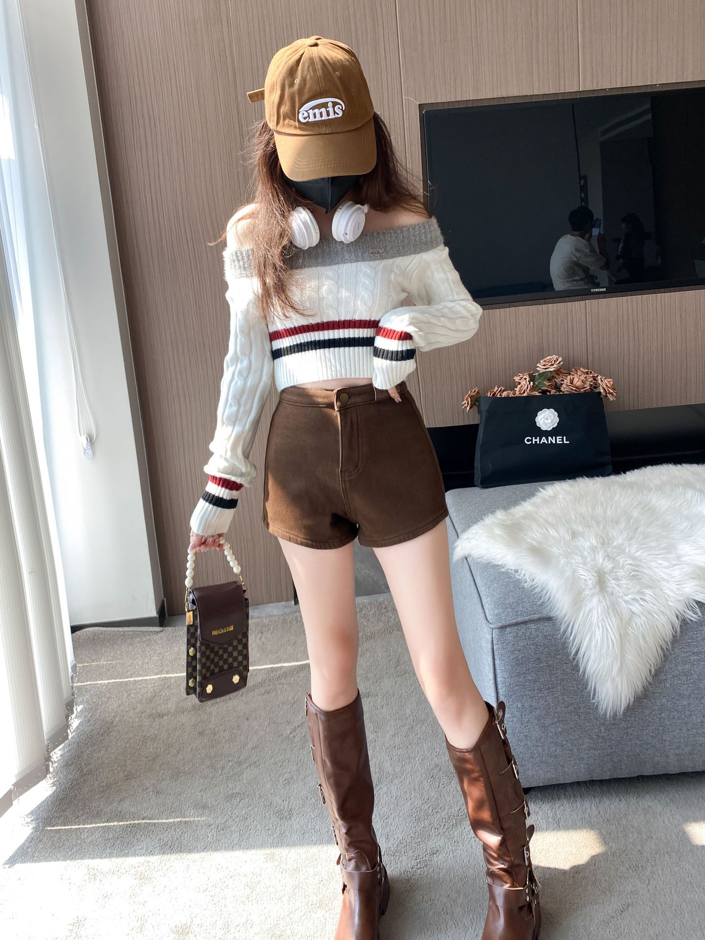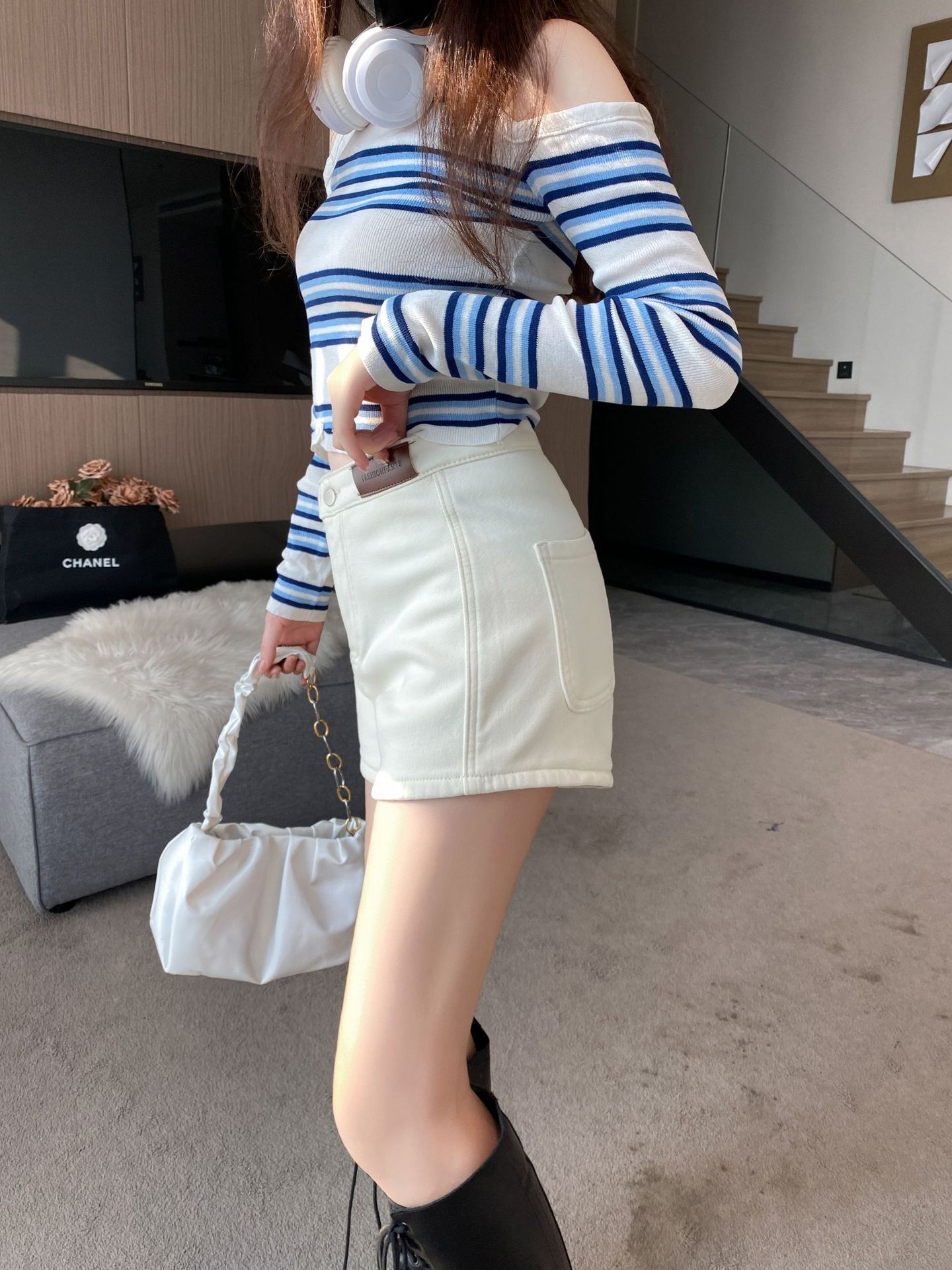 기모 두꺼운 반바지 여자의 겉옷 바닥 2023 가을 새로운 하이 웨이스트 스파이스 소녀 스키니 청바지 엉덩이 핫 팬츠스토어 가기
