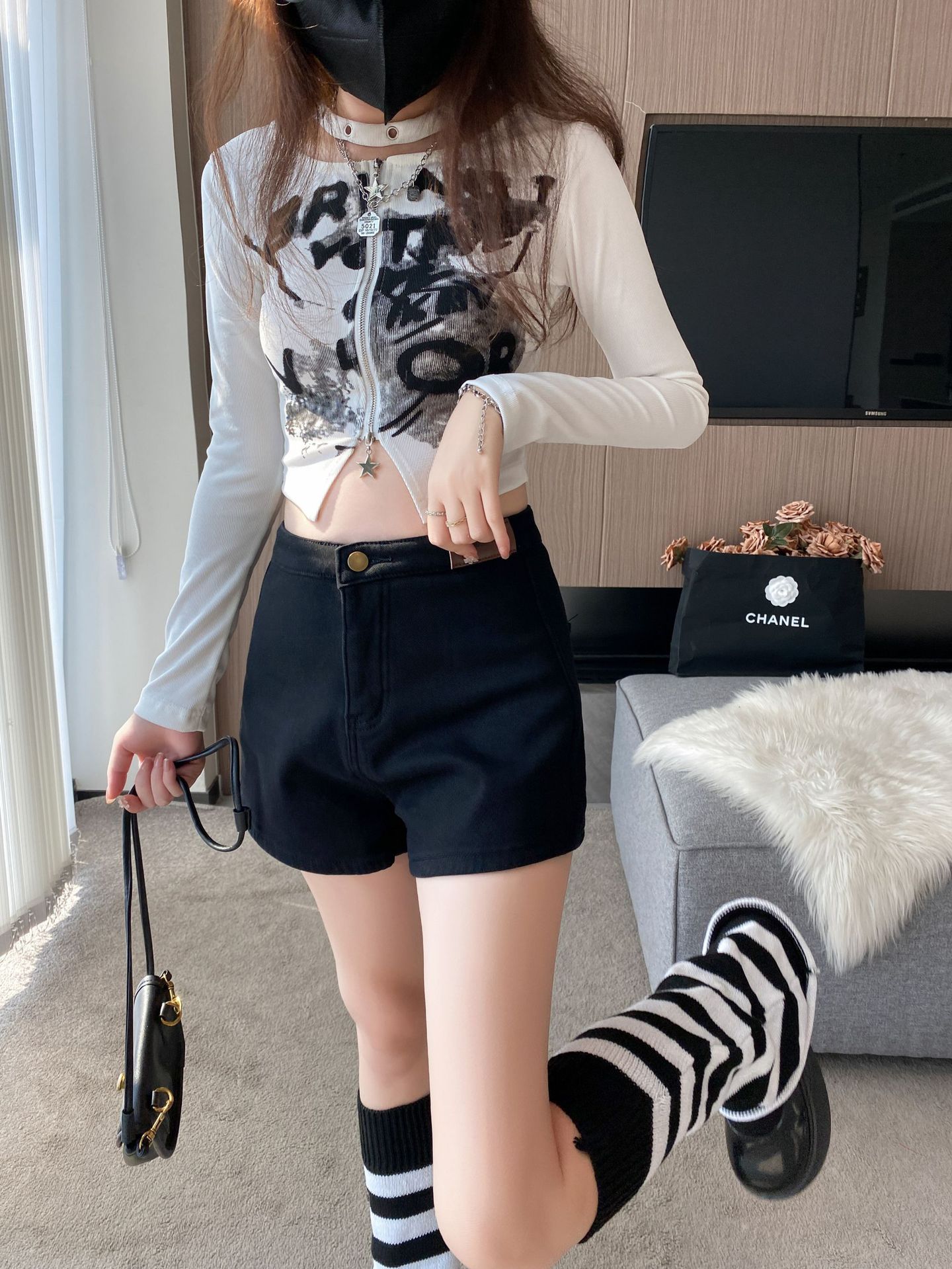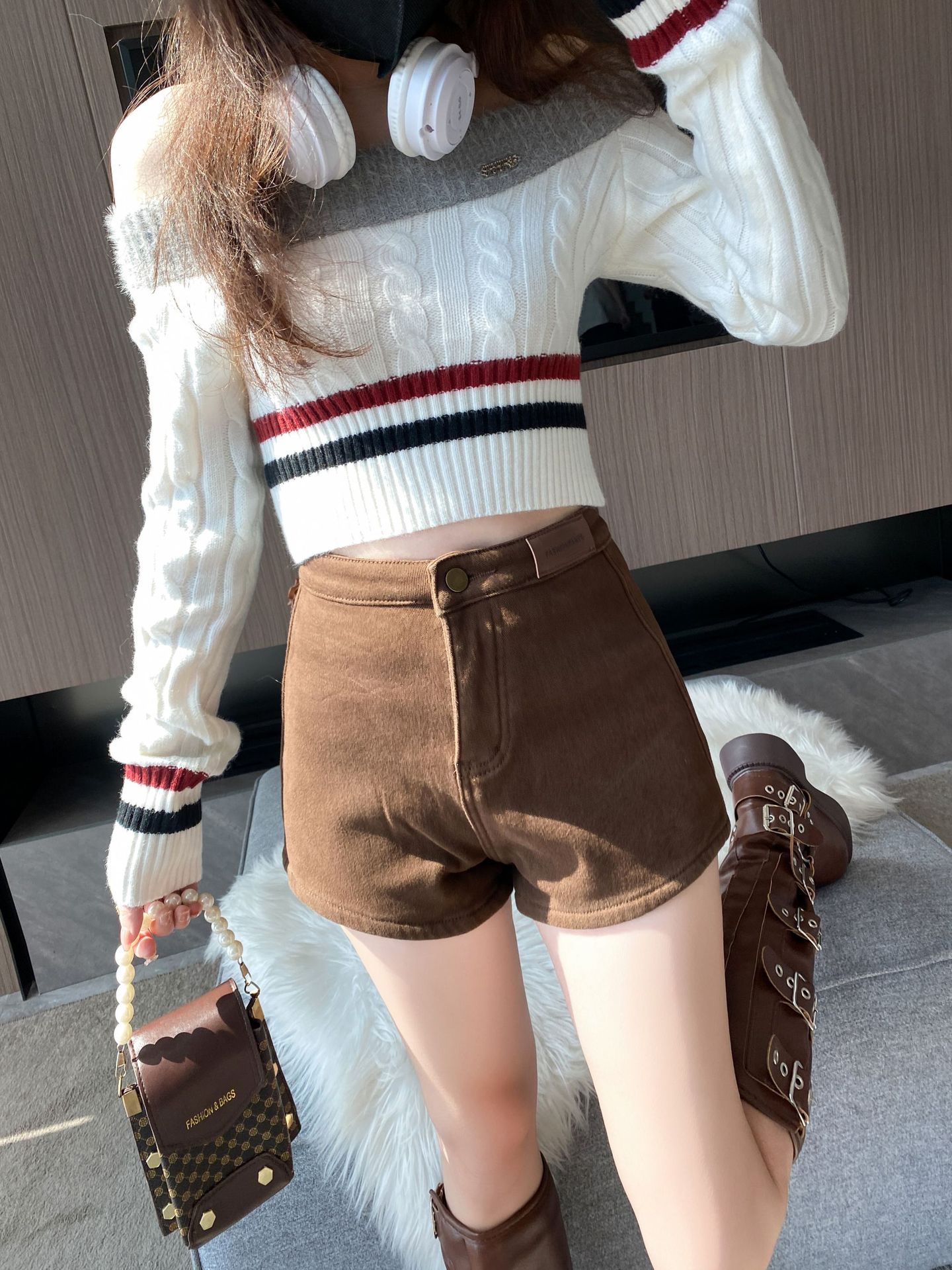 기모 두꺼운 반바지 여자의 겉옷 바닥 2023 가을 새로운 하이 웨이스트 스파이스 소녀 스키니 청바지 엉덩이 핫 팬츠