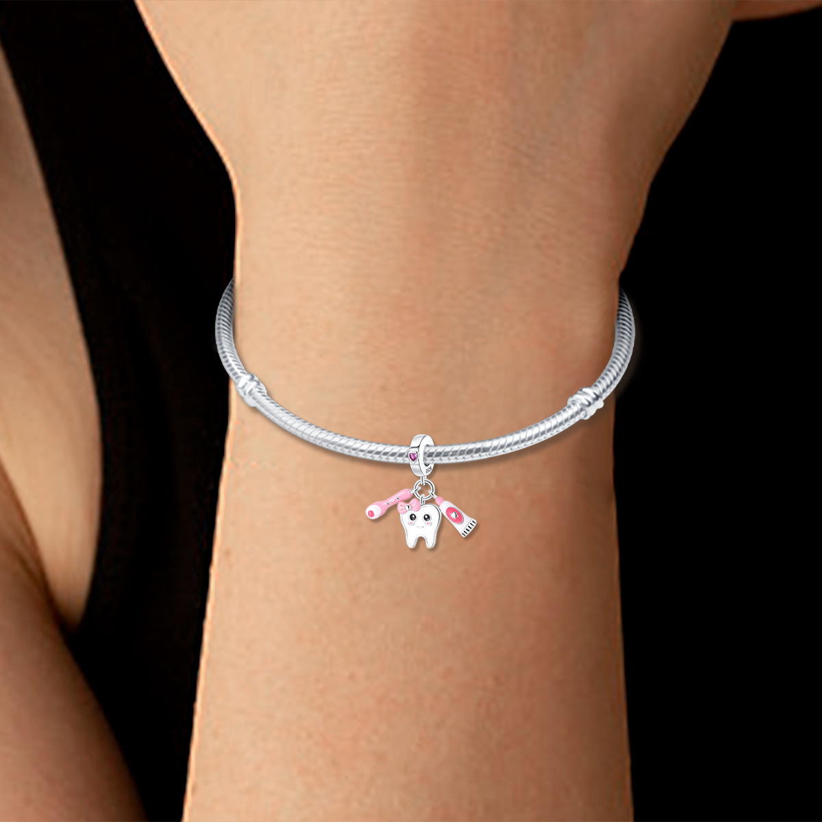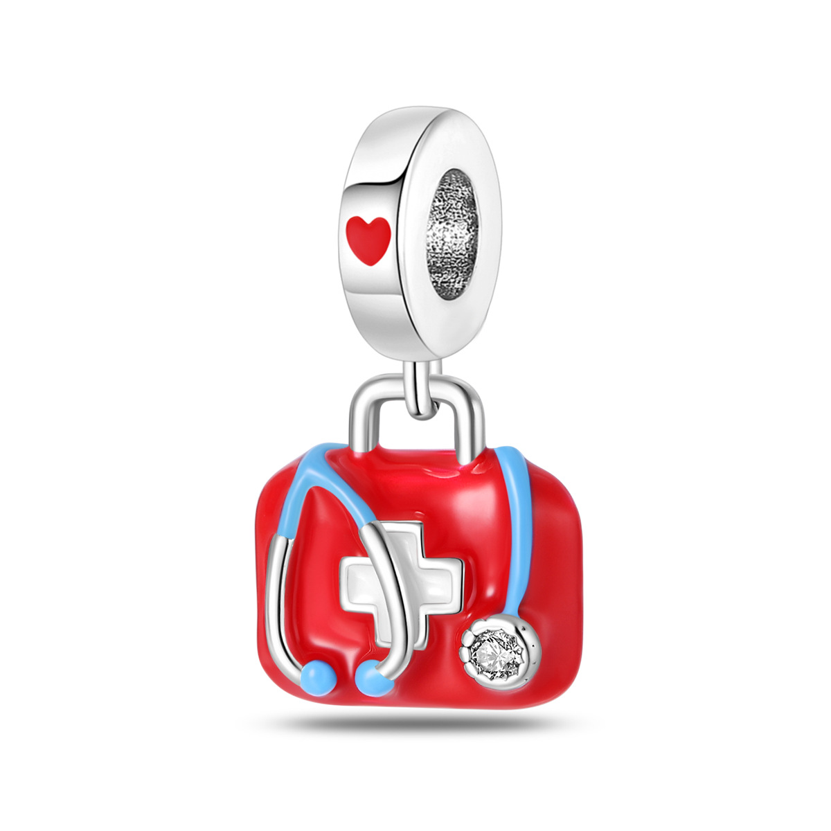 전문 시리즈 의학 상자 치아 교사 구슬 매달려 흰색 구리 실버 도금 925DIY 팔찌 비즈 유럽과 미국 국경 뜨거운 판매