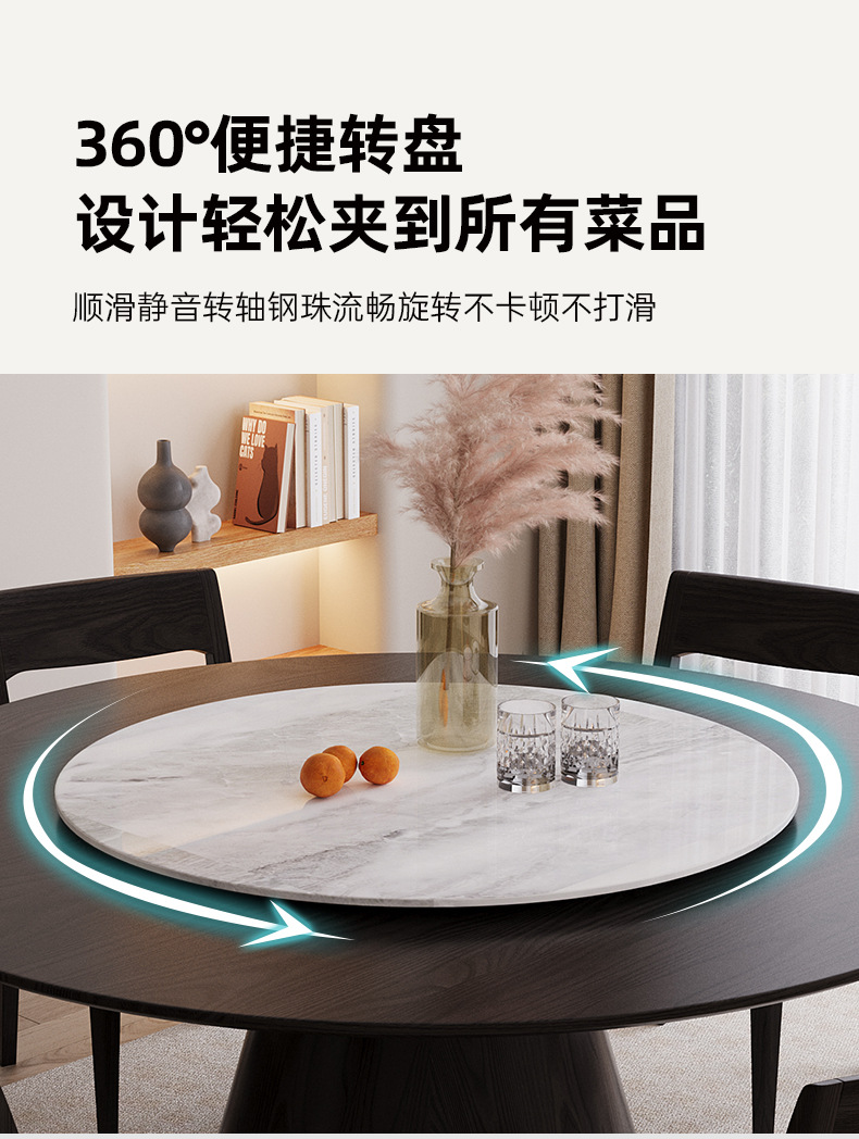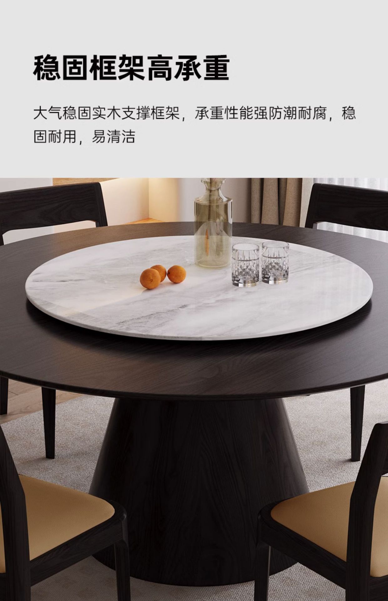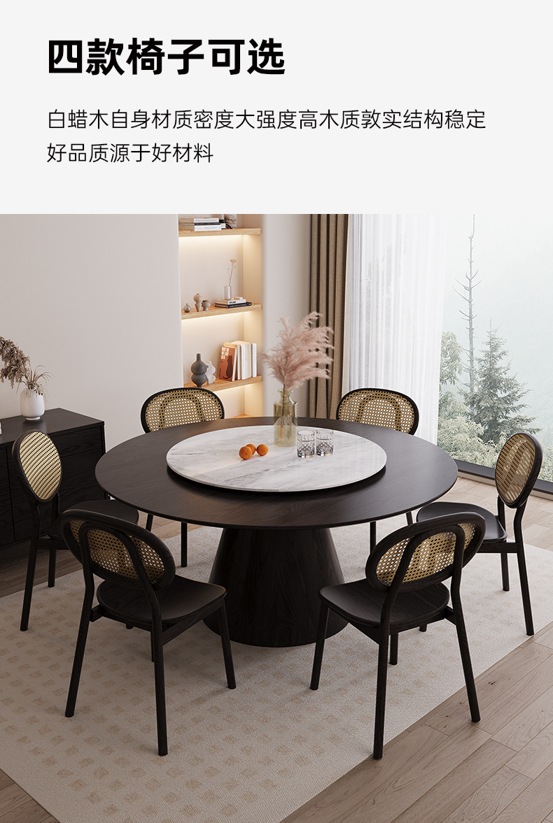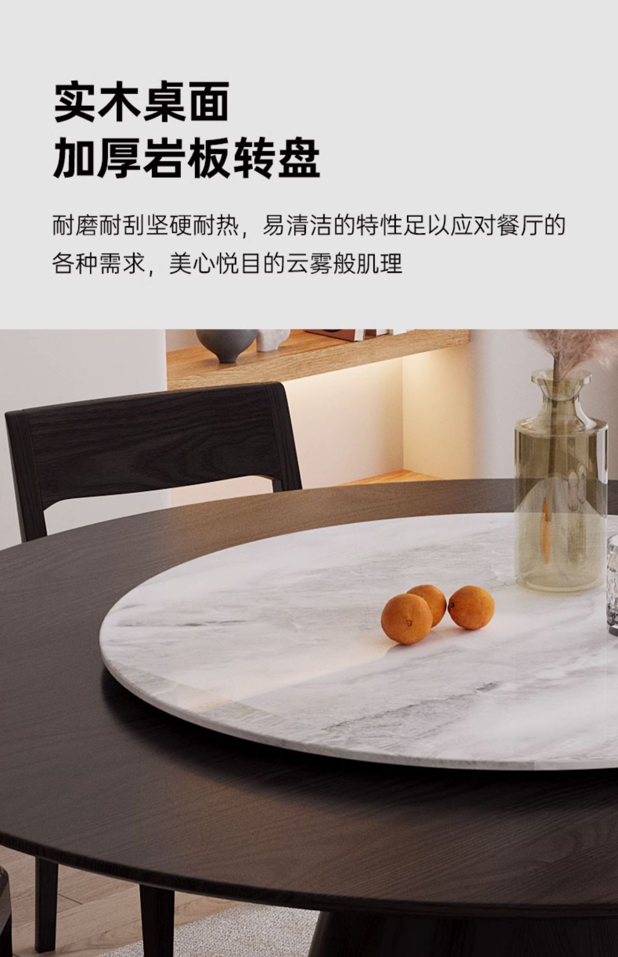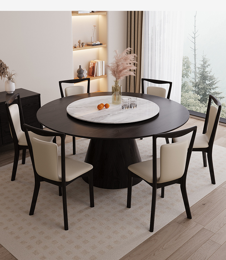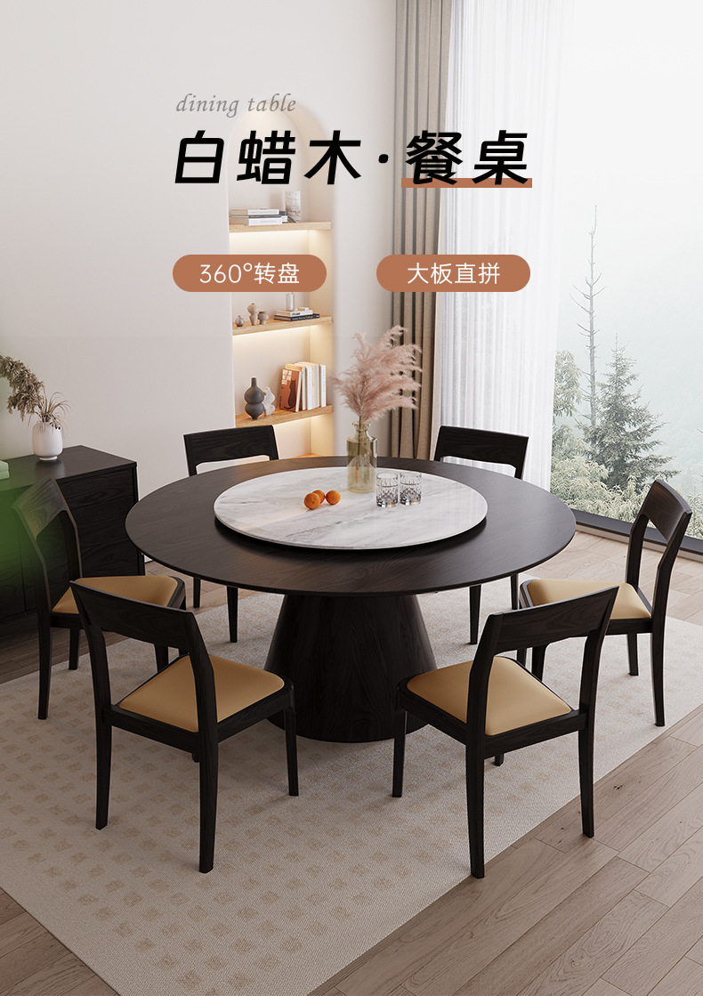 북유럽 스타일 화이트 왁스 나무 식탁 및 의자 조합 작은 아파트 바위 판 턴테이블 블랙 대형 원형 테이블 식탁스토어 가기
