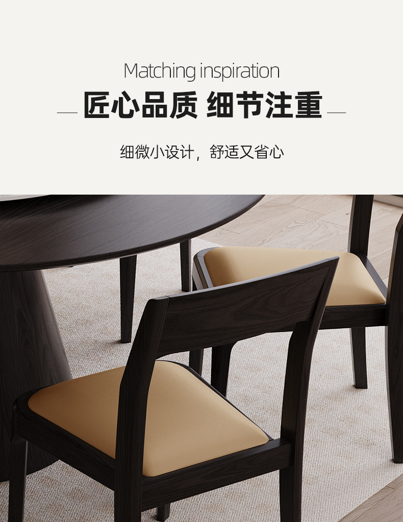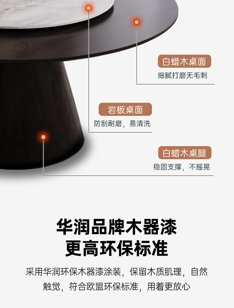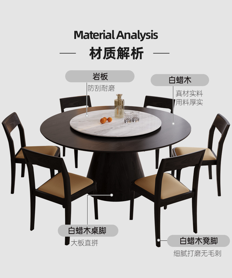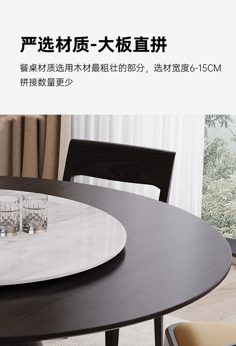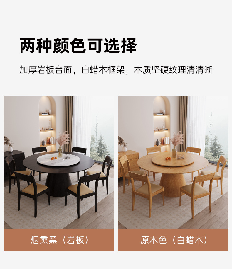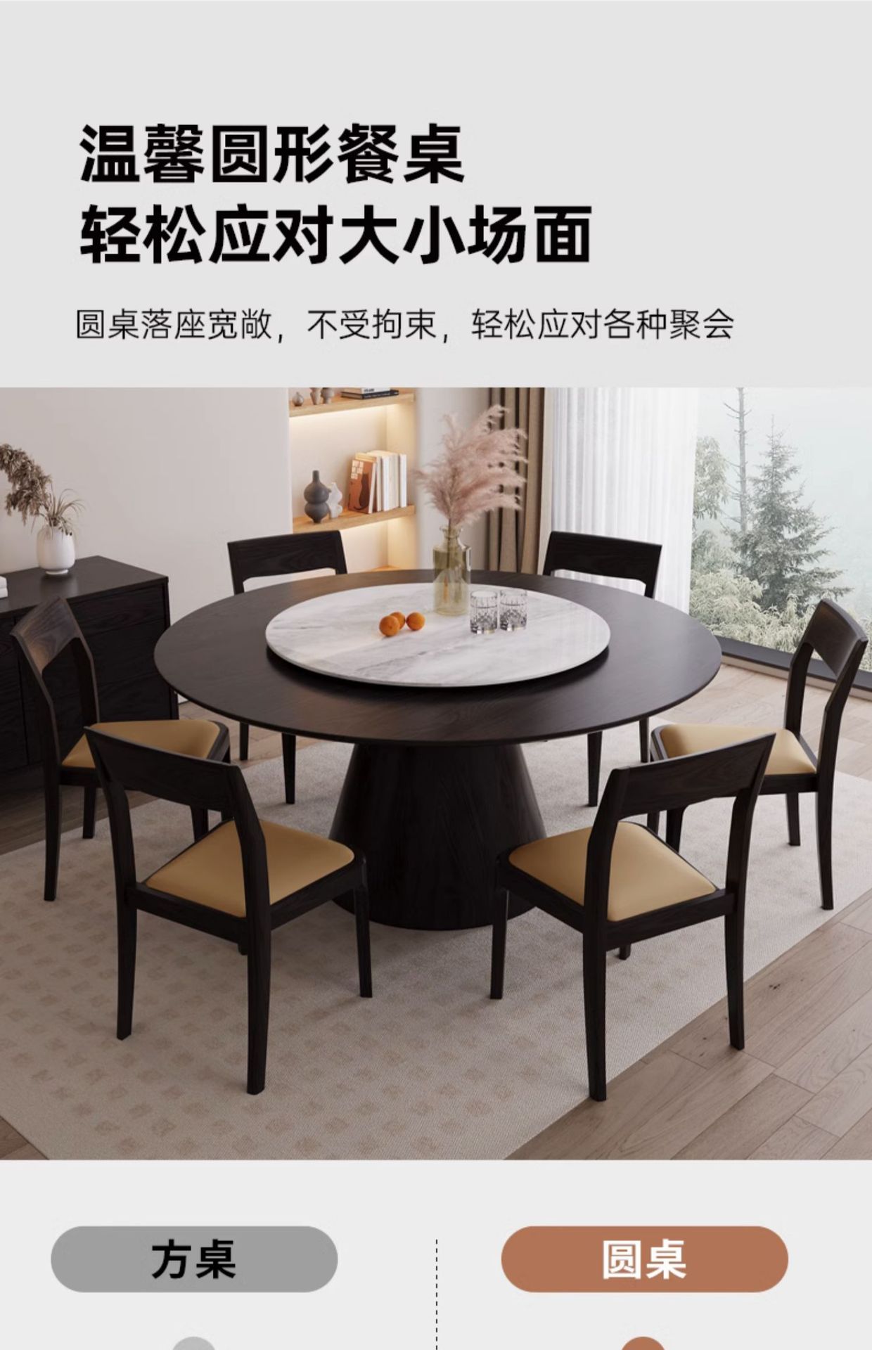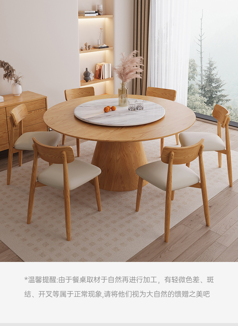북유럽 스타일 화이트 왁스 나무 식탁 및 의자 조합 작은 아파트 바위 판 턴테이블 블랙 대형 원형 테이블 식탁스토어 가기