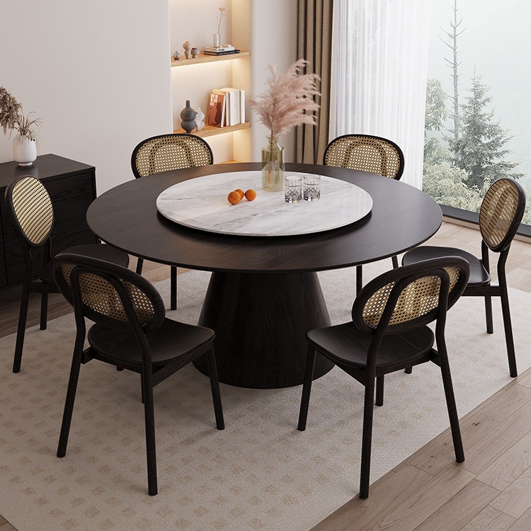 북유럽 스타일 화이트 왁스 나무 식탁 및 의자 조합 작은 아파트 바위 판 턴테이블 블랙 대형 원형 테이블 식탁