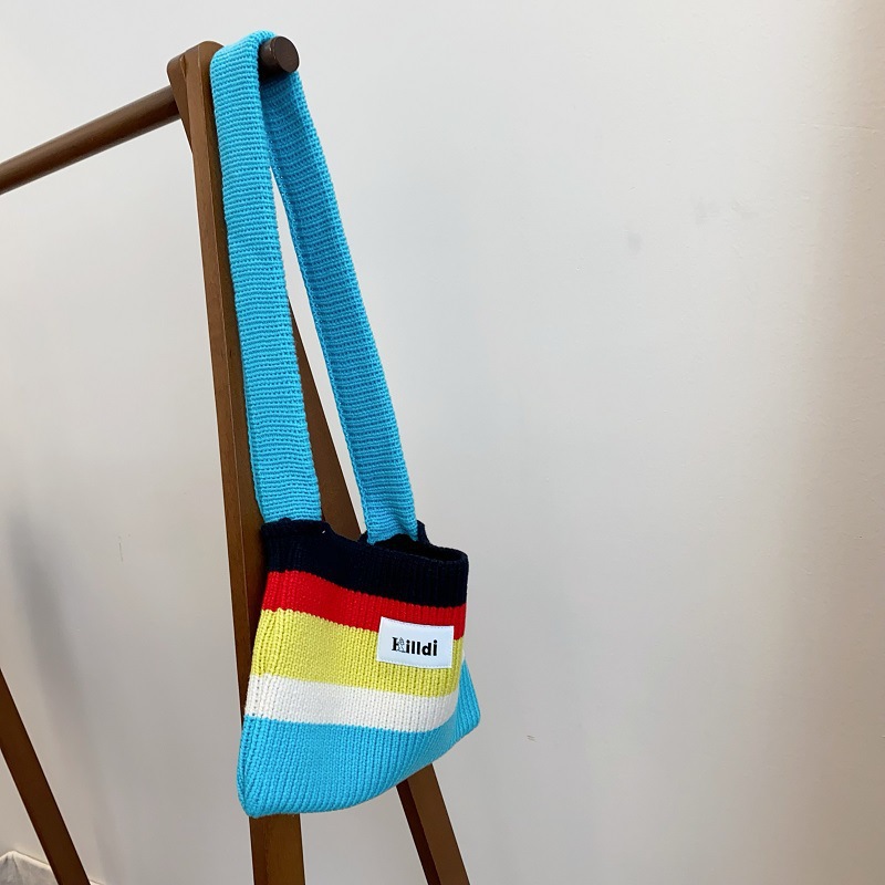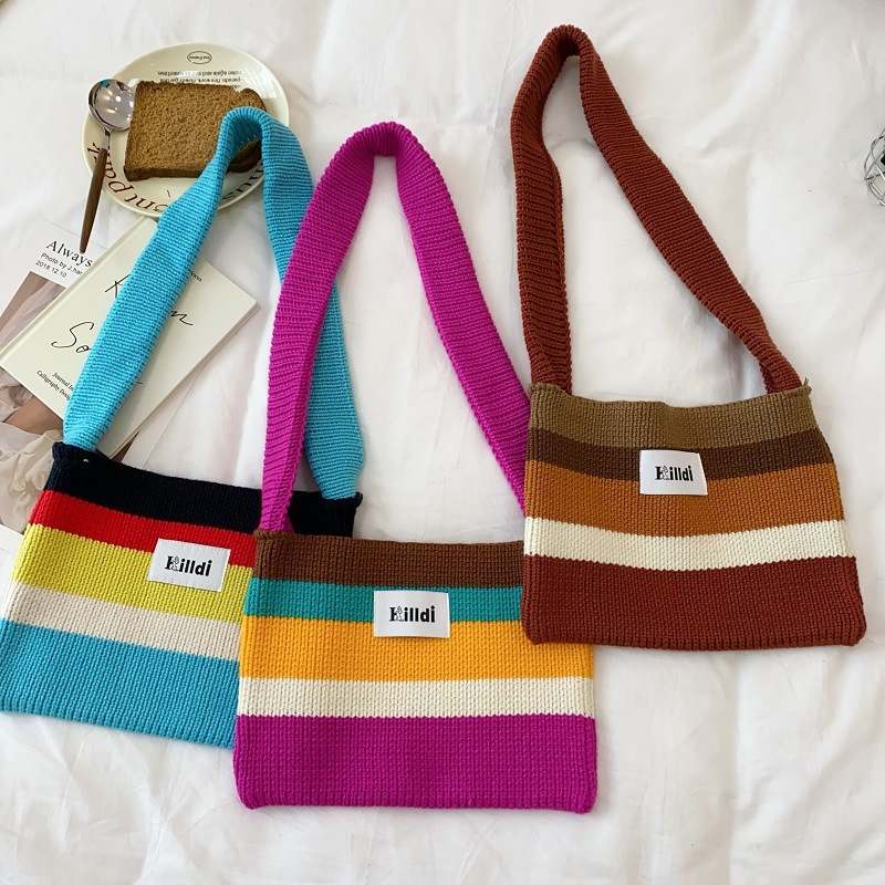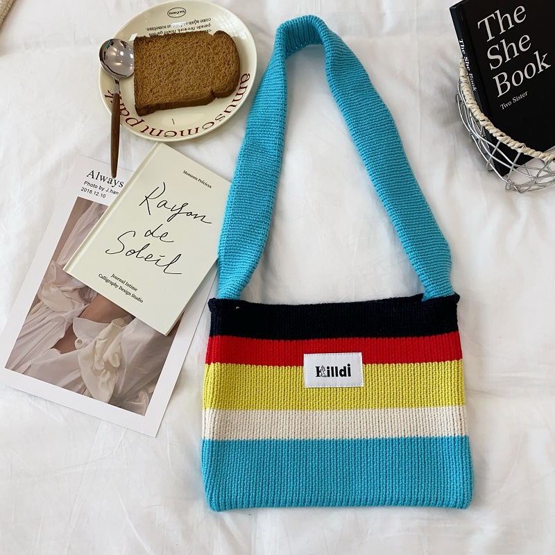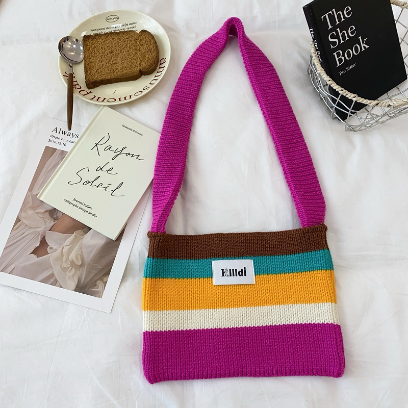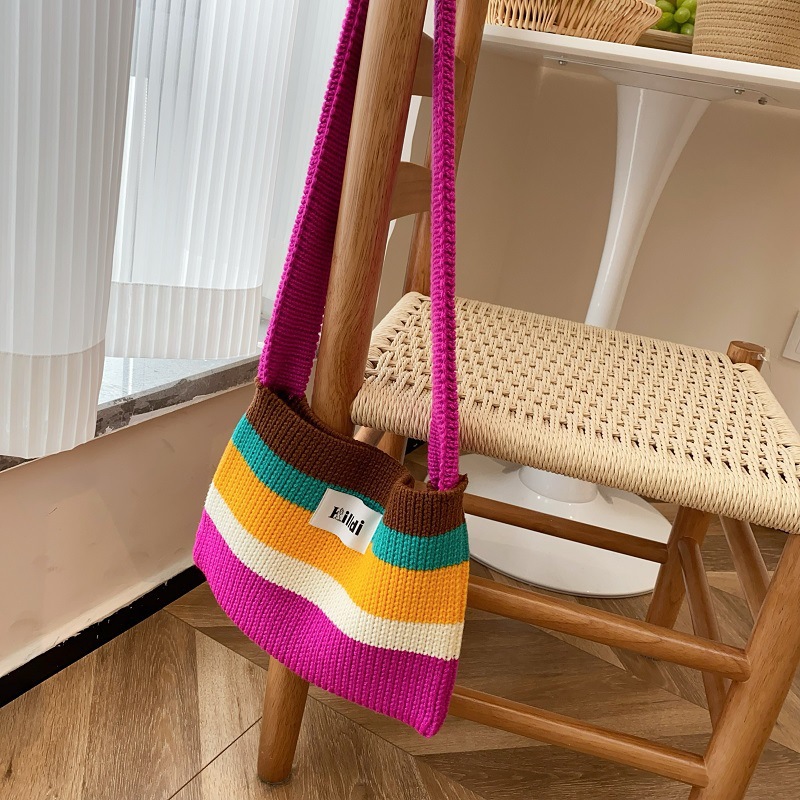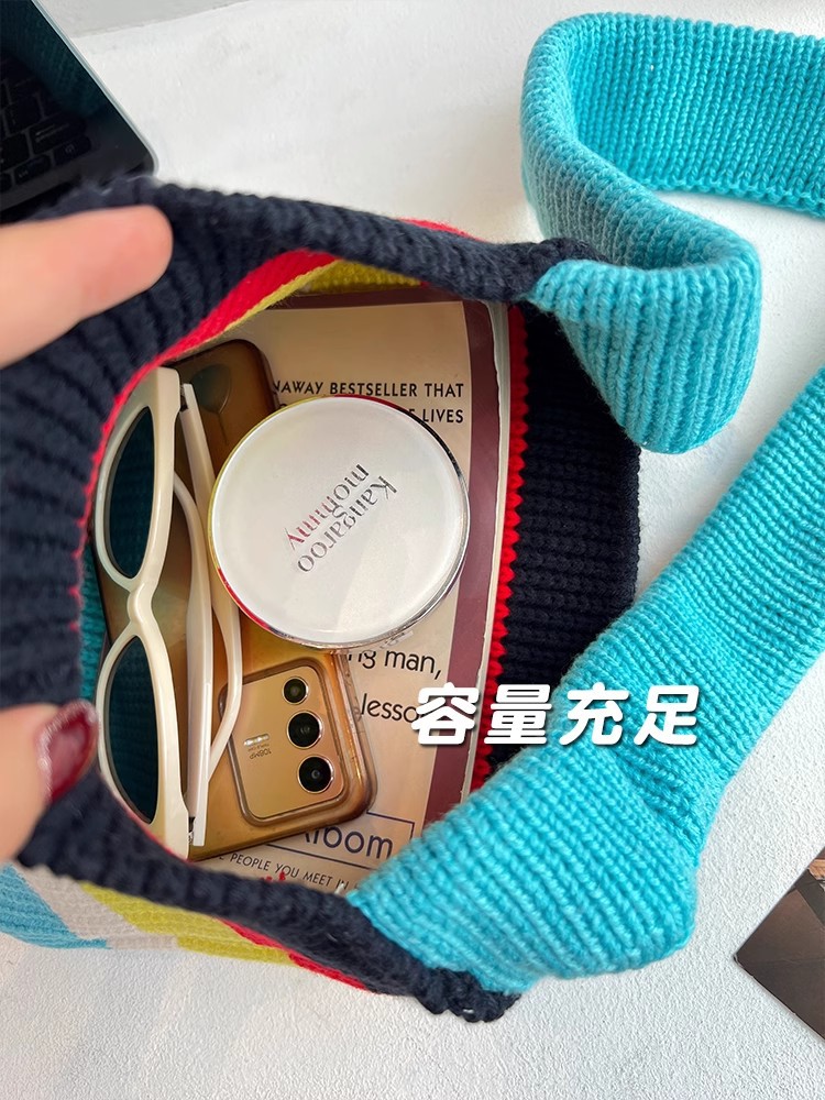 다채로운 도파민 여아 크로스바디 니트 백 가을과 겨울 메일라드 한국식 울 대용량 숄더백
