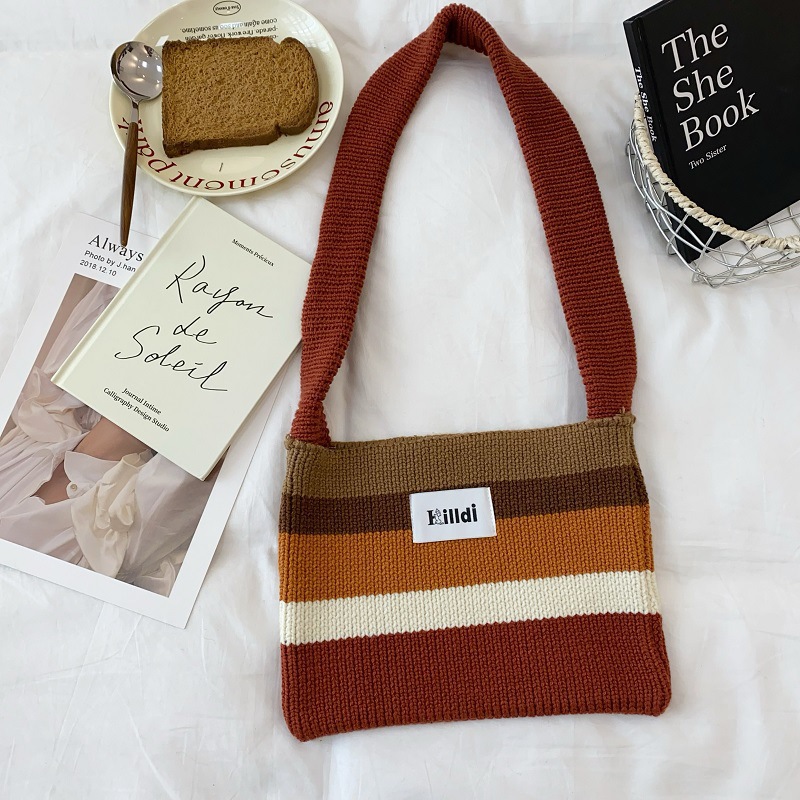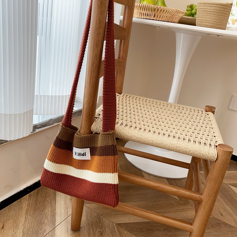다채로운 도파민 여아 크로스바디 니트 백 가을과 겨울 메일라드 한국식 울 대용량 숄더백스토어 가기