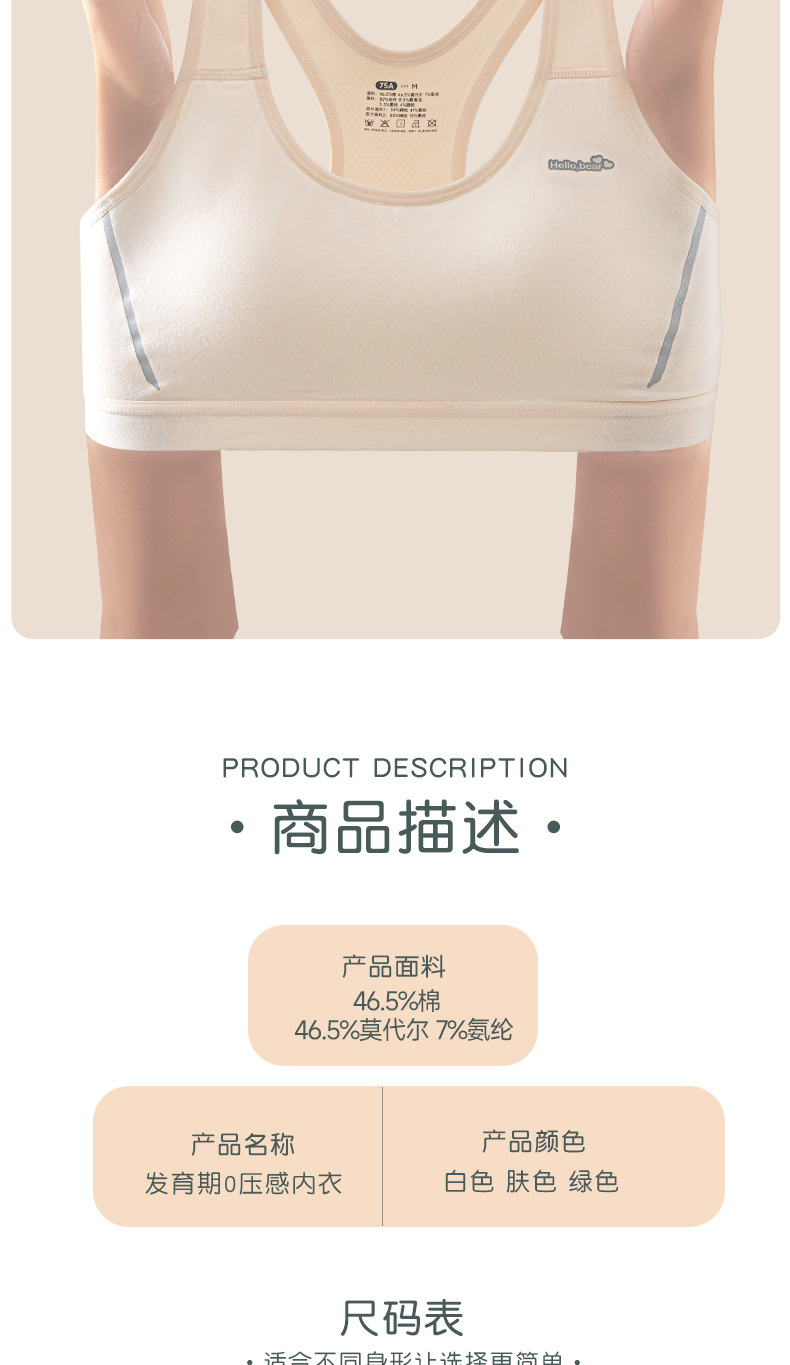 모달 여아 브라 스포츠 속옷 충격 방지 달리기 조기 발달 고등학생 여아 고정 컵 조끼스토어 가기