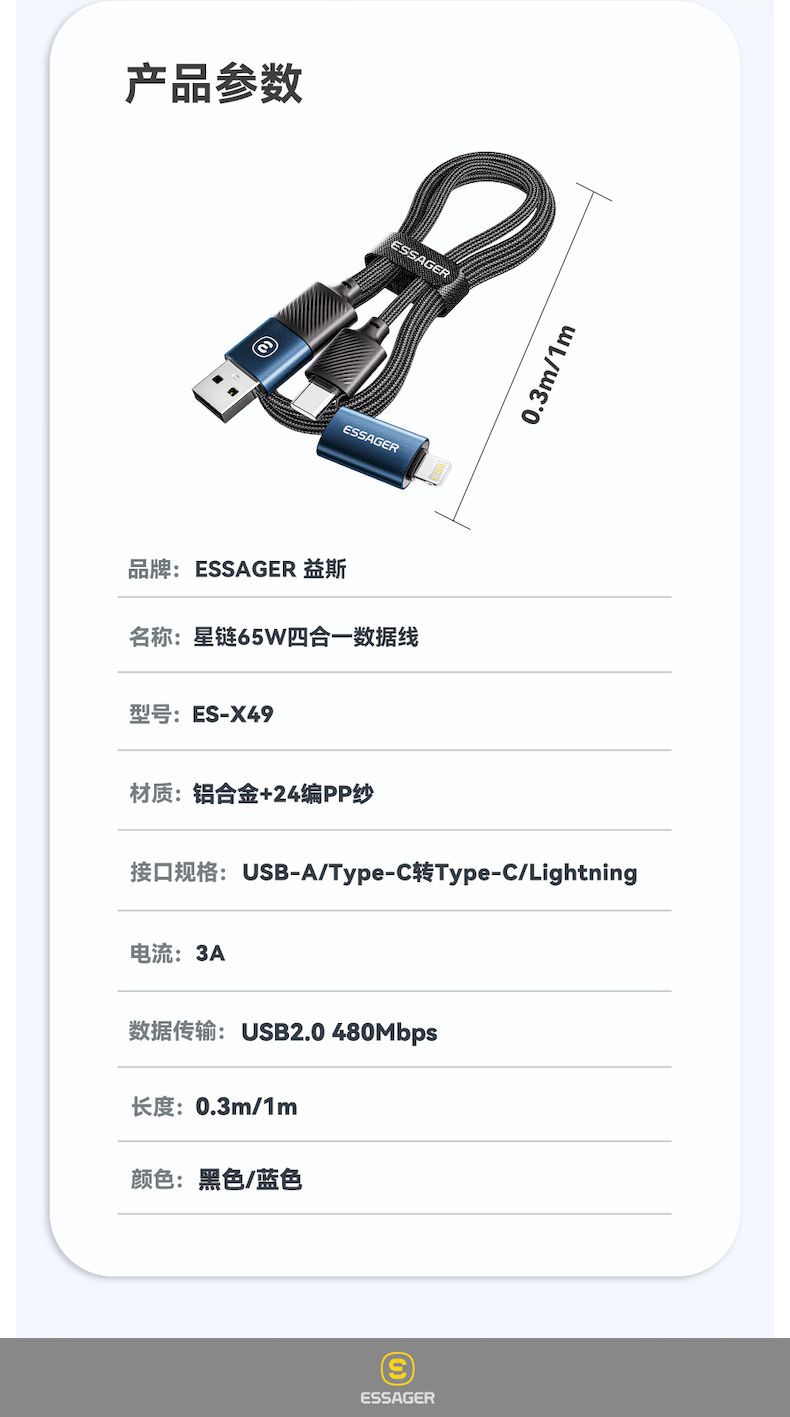 【品名】星链系列65W四合一数据线