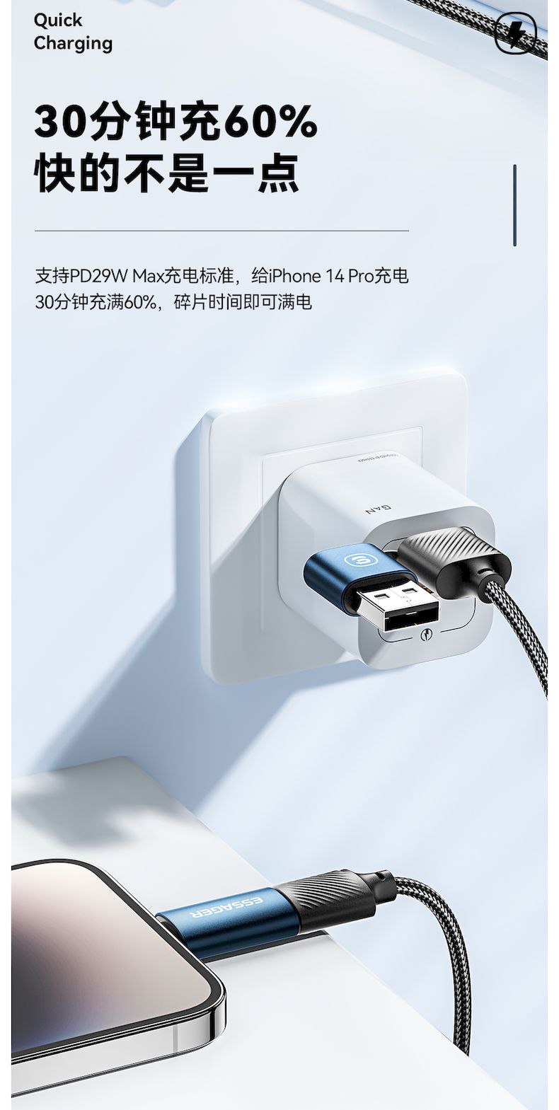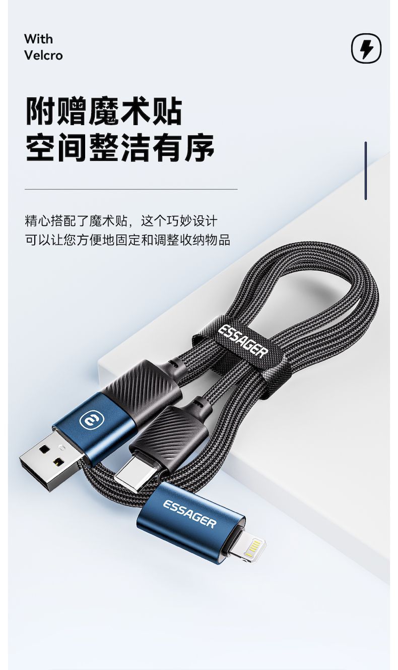 【产品特点】四种充电模式,满足多种设备,附赠魔术贴。