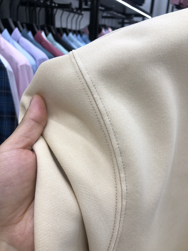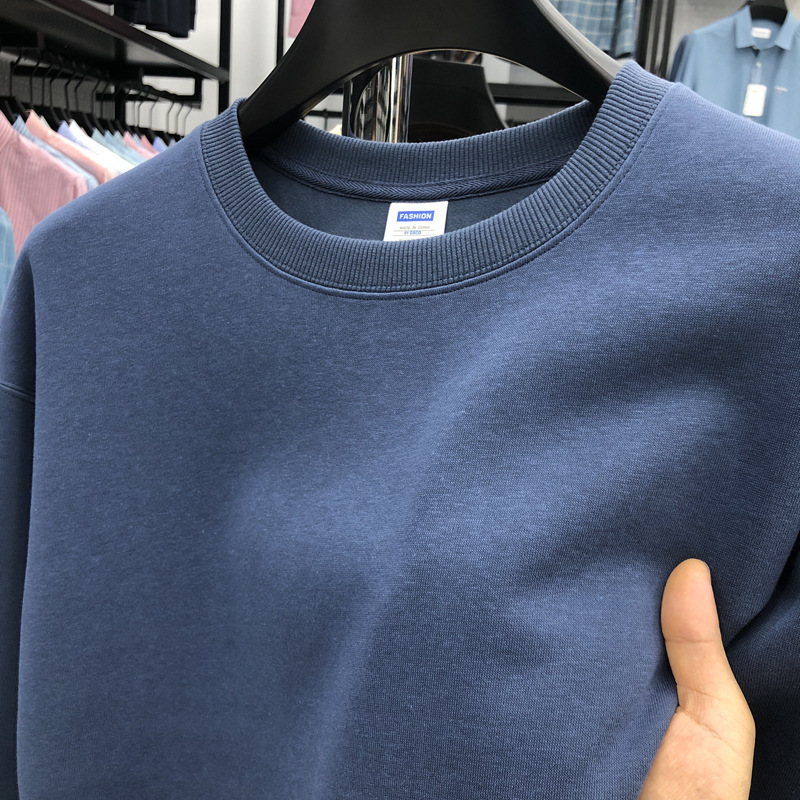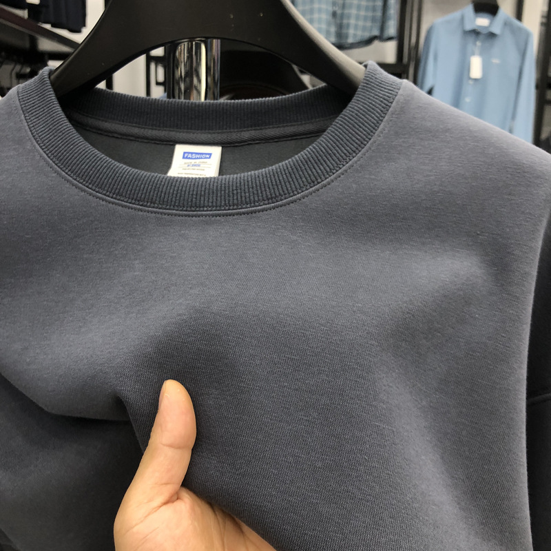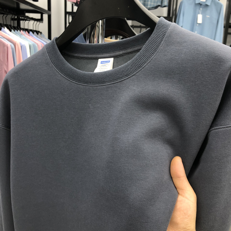 가을 새로운 단색 면 커플 더블 레이어 패브릭 숄더 느슨한 청소년 베이스 셔츠 남성용 라운드 넥 스웨터스토어 가기