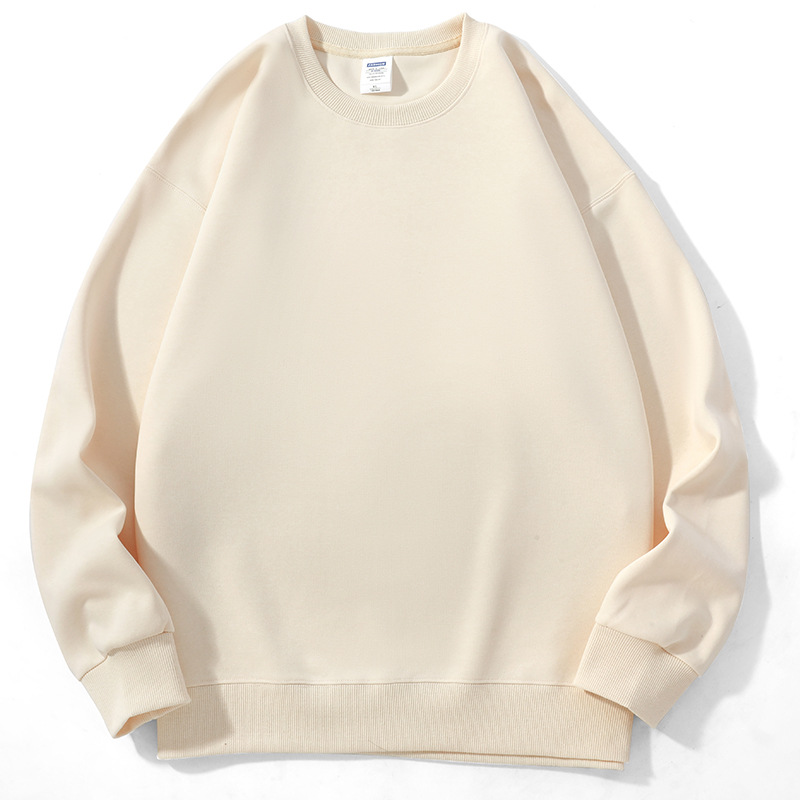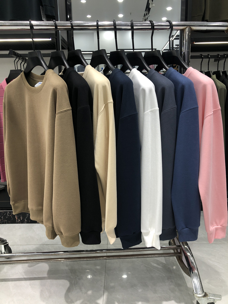 가을 새로운 단색 면 커플 더블 레이어 패브릭 숄더 느슨한 청소년 베이스 셔츠 남성용 라운드 넥 스웨터