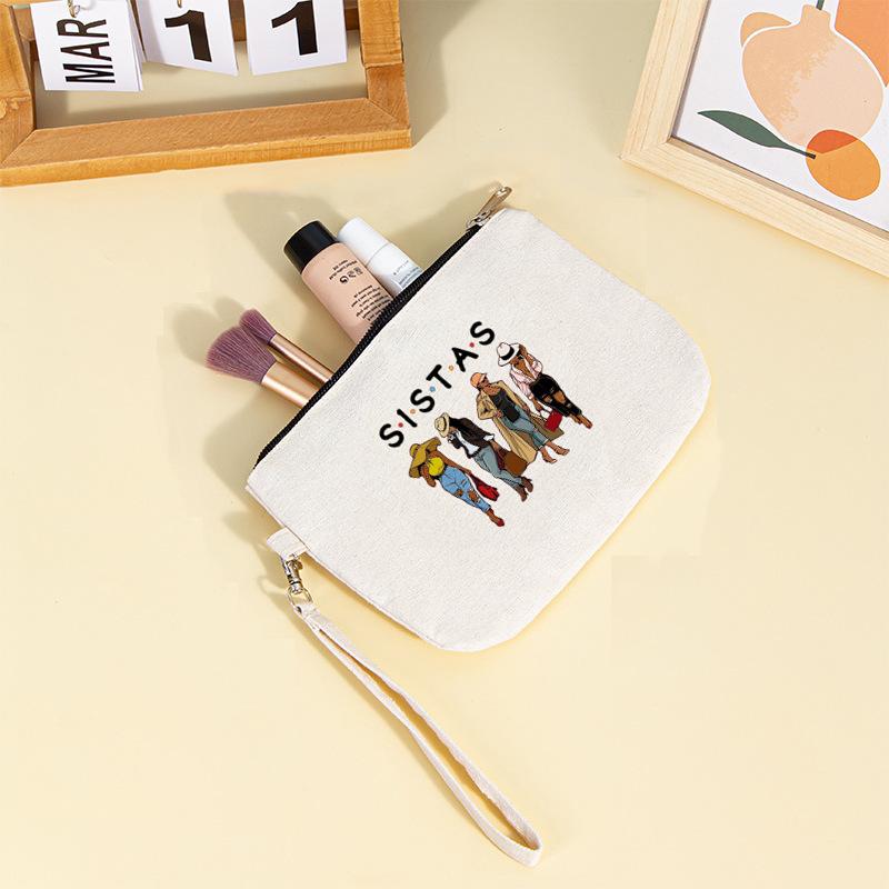 국경 간 새로운 캔버스 인쇄 손 운반 동전 지갑 휴대용 휴대 전화 립스틱 키 지퍼 저장 가방