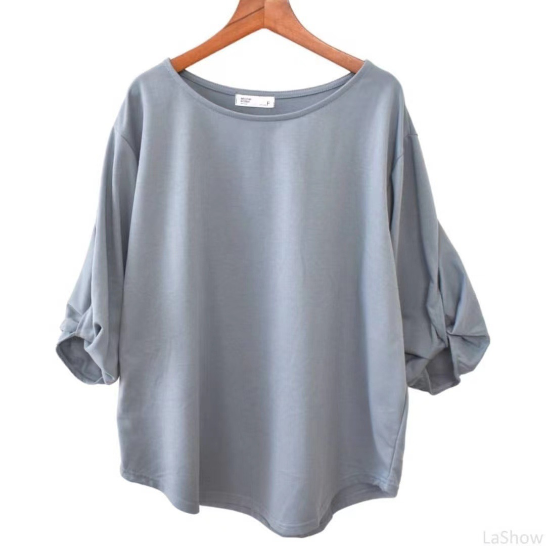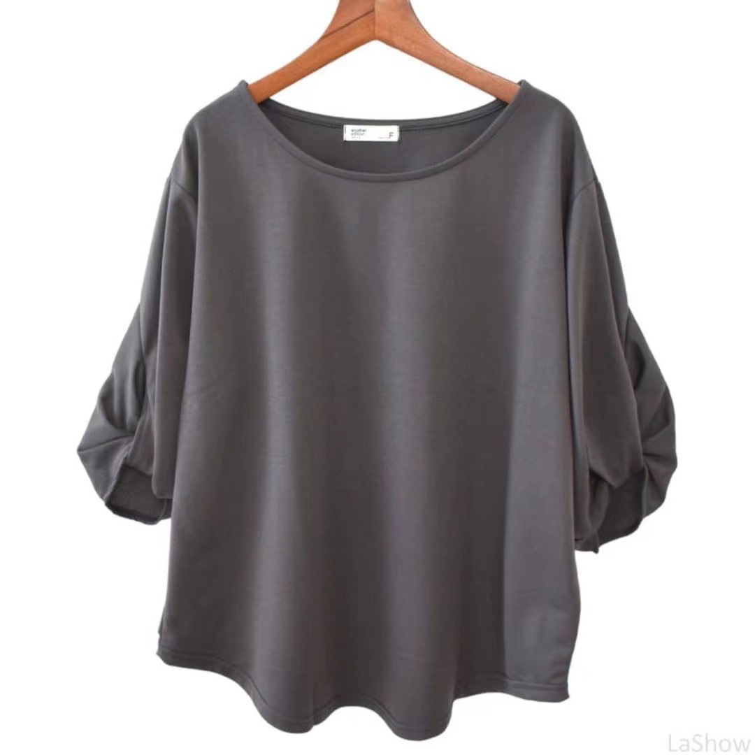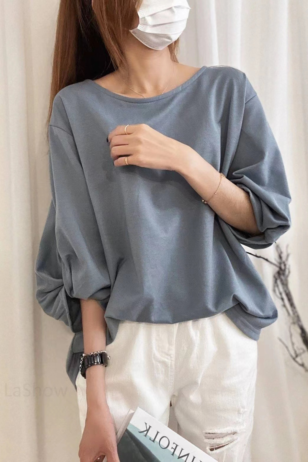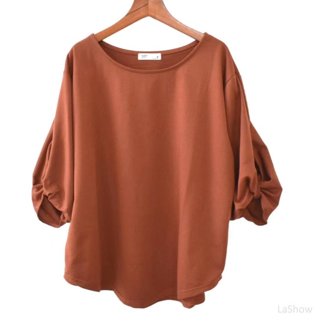초가을 여성을위한 국경 간 인기있는 3/4 소매 티셔츠 새로운 패션 느슨한 슬리밍 하프 슬리브 탑 인 스타일