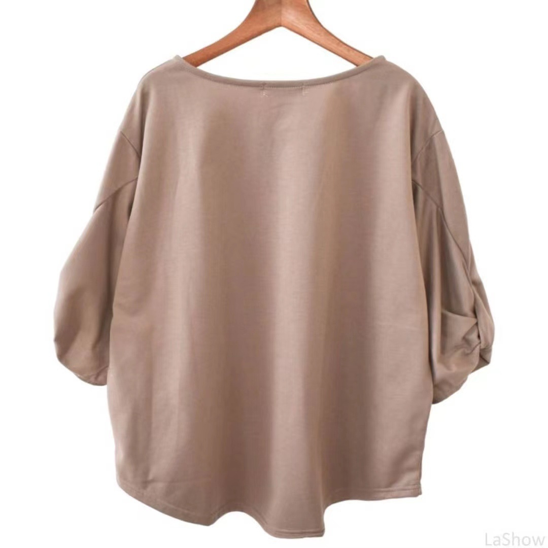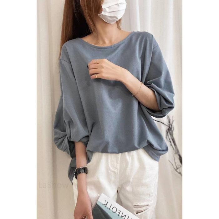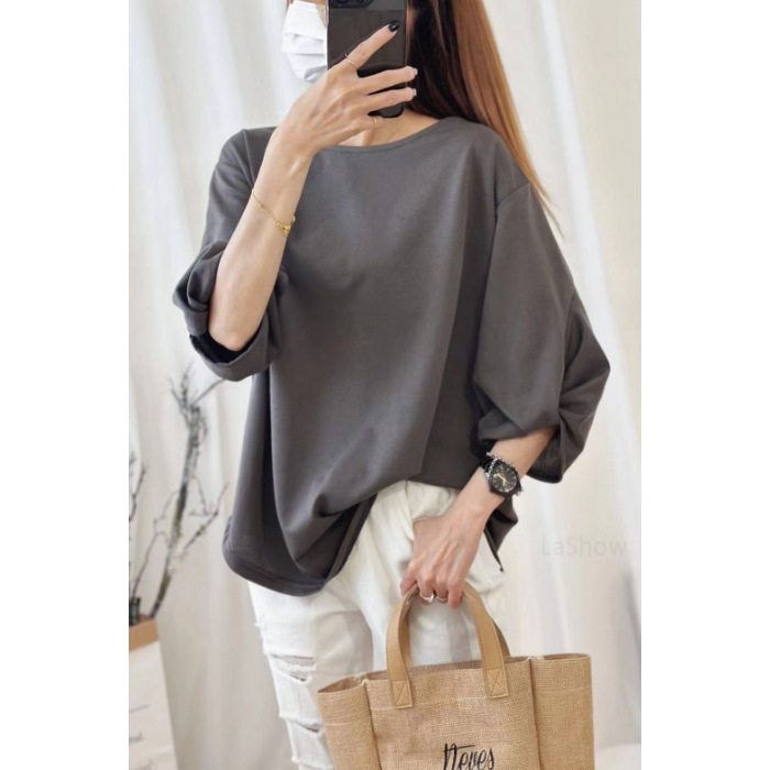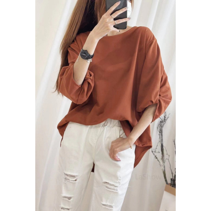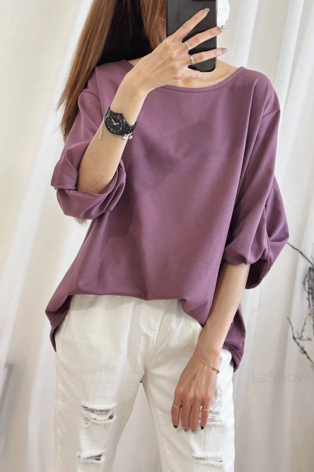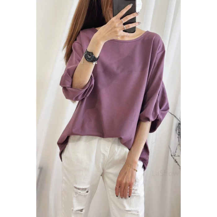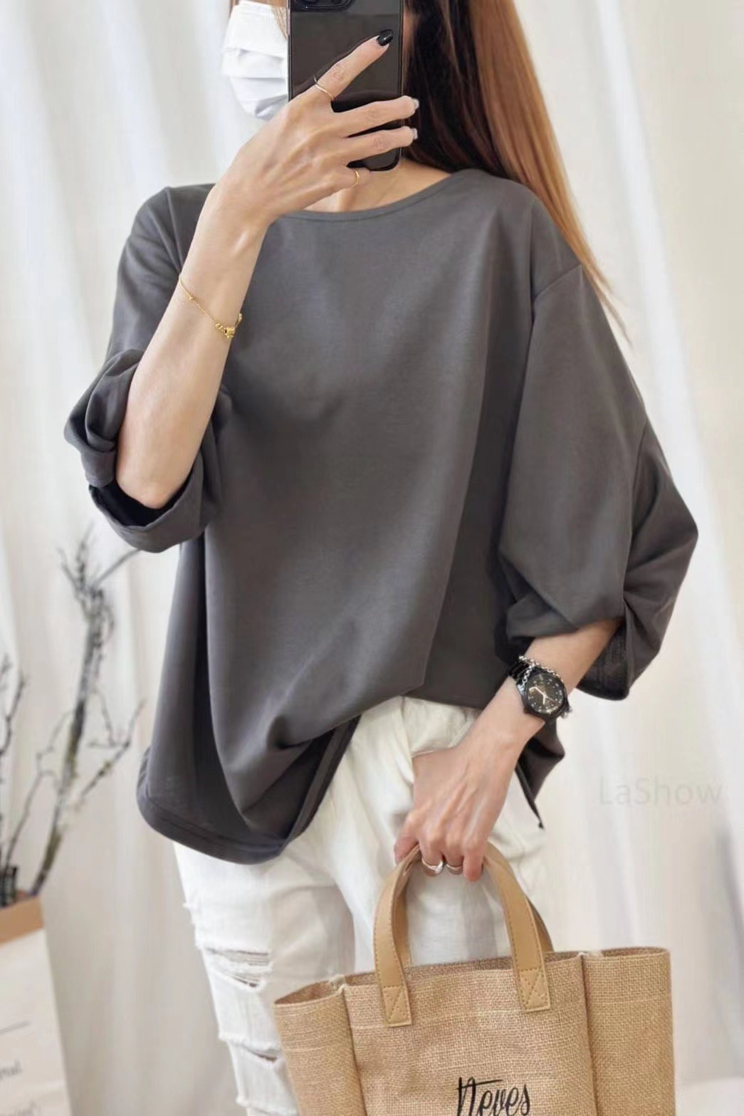 초가을 여성을위한 국경 간 인기있는 3/4 소매 티셔츠 새로운 패션 느슨한 슬리밍 하프 슬리브 탑 인 스타일