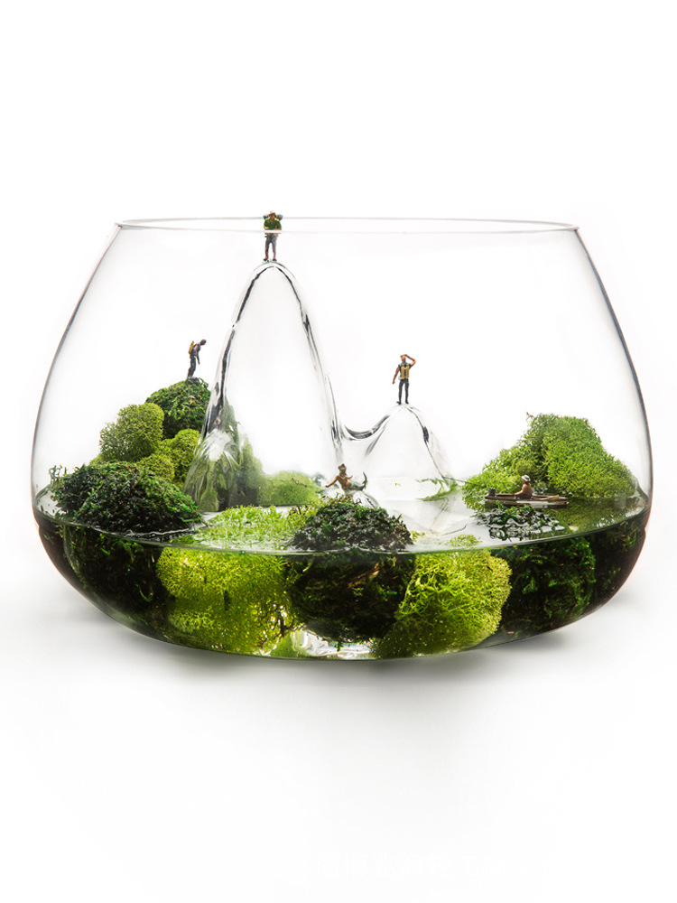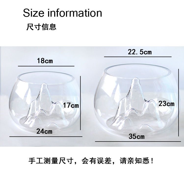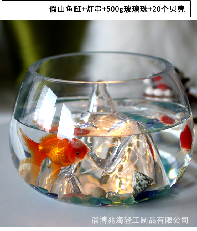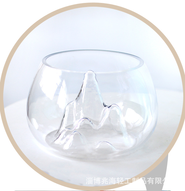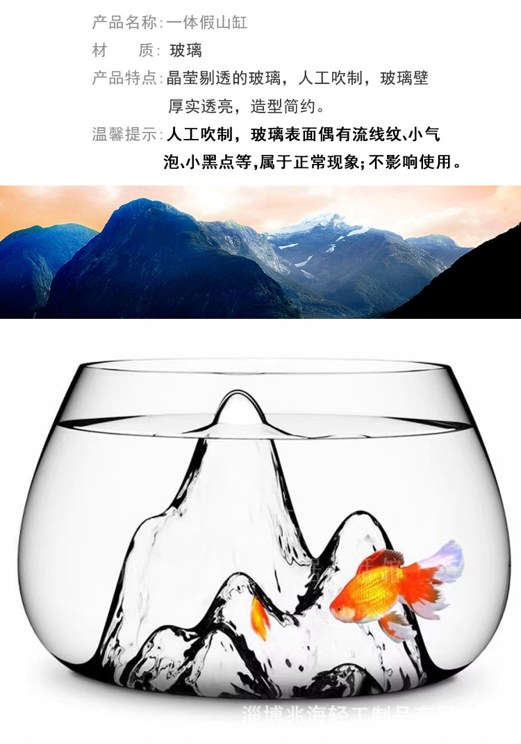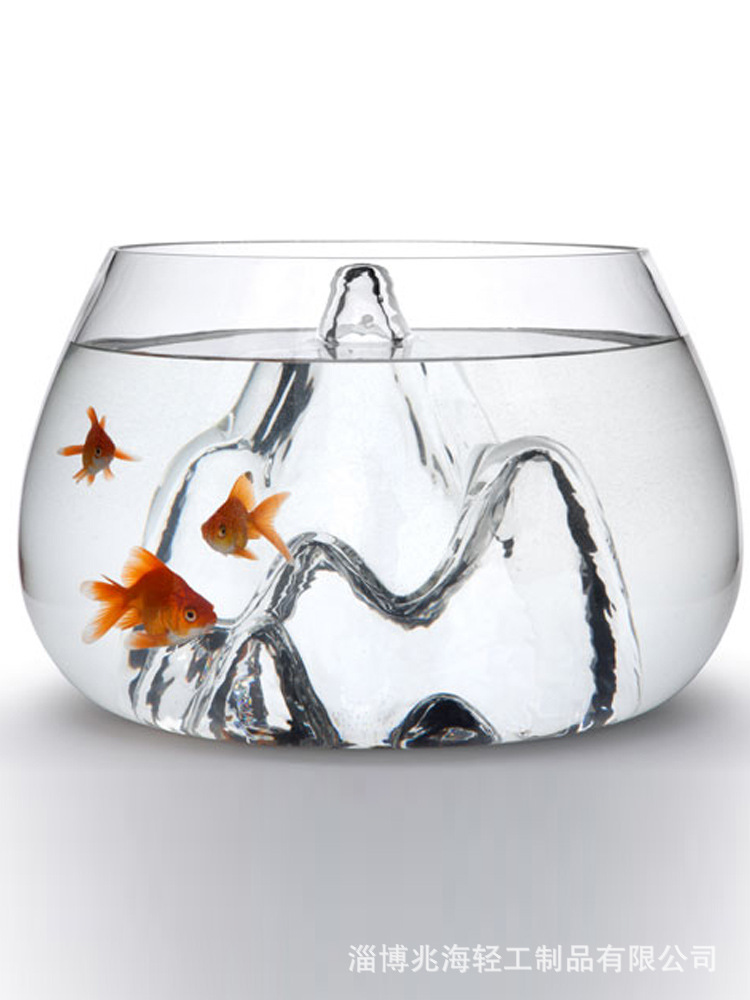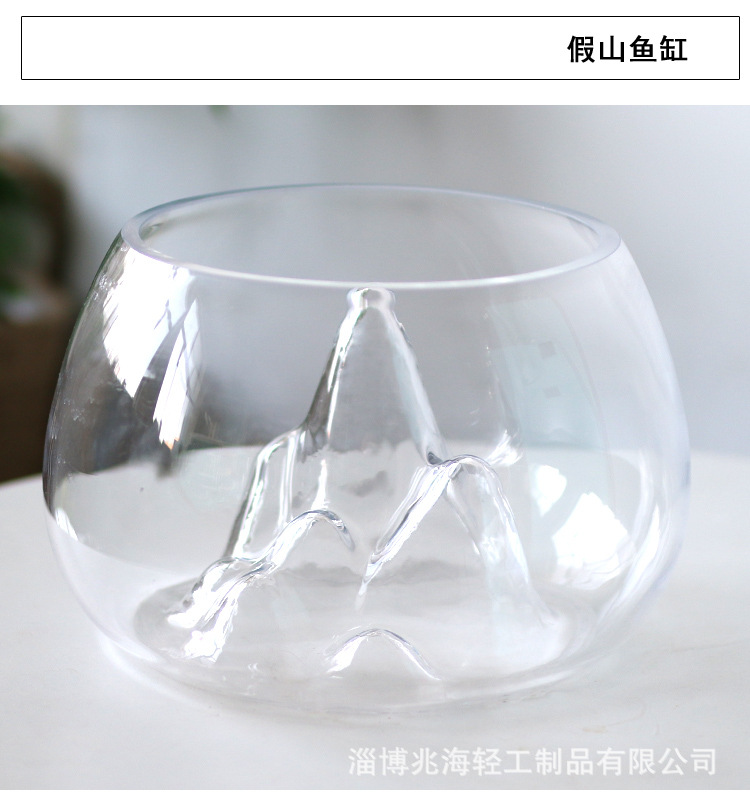 슈퍼 화이트 개인 rockery 유리 어항 두꺼운 둥근 데스크탑 금붕어 탱크 창조적 인 조경 탱크 스노우 마운틴 작은 거북이 탱크