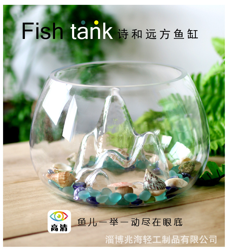 슈퍼 화이트 개인 rockery 유리 어항 두꺼운 둥근 데스크탑 금붕어 탱크 창조적 인 조경 탱크 스노우 마운틴 작은 거북이 탱크스토어 가기