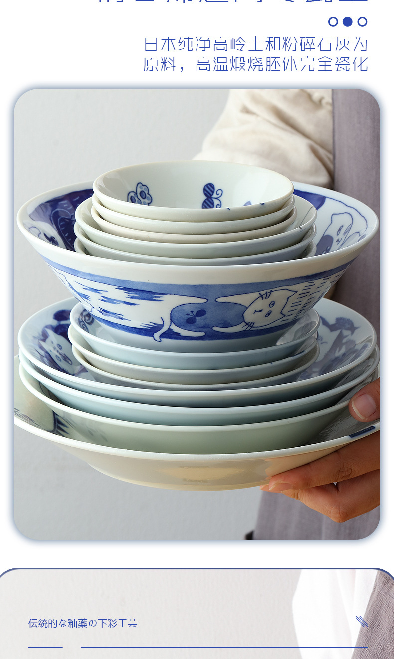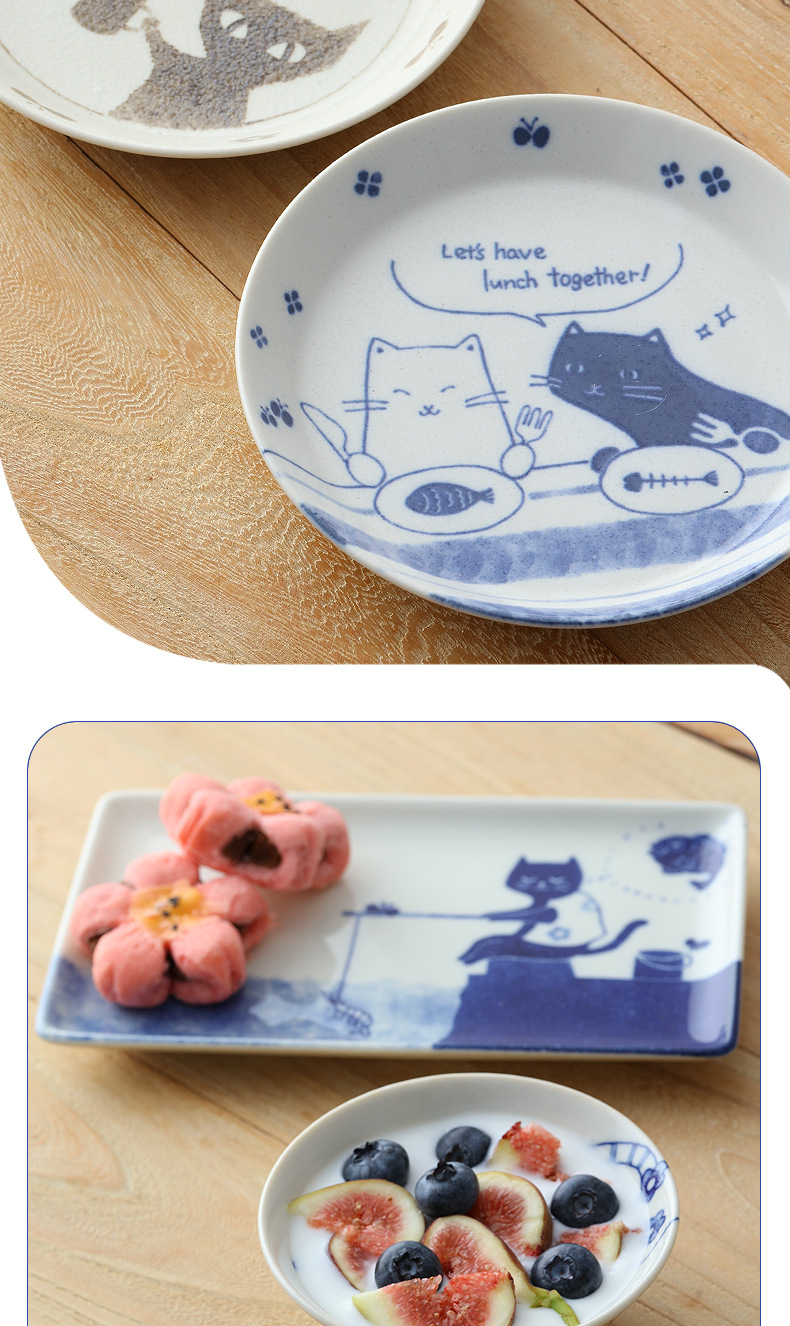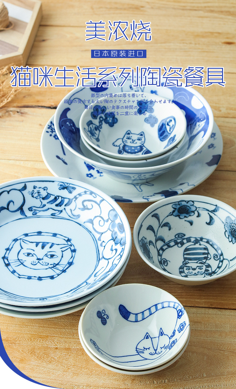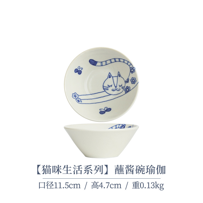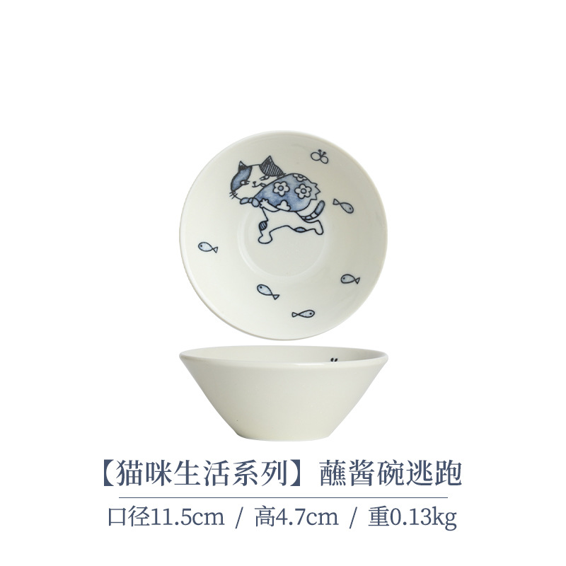 일본 수입 메이자키 세라믹 식기 고양이 라이스 그릇 일본 딥 플레이트 딥 소스 디저트 접시라면 그릇 수프 그릇
