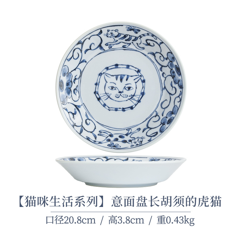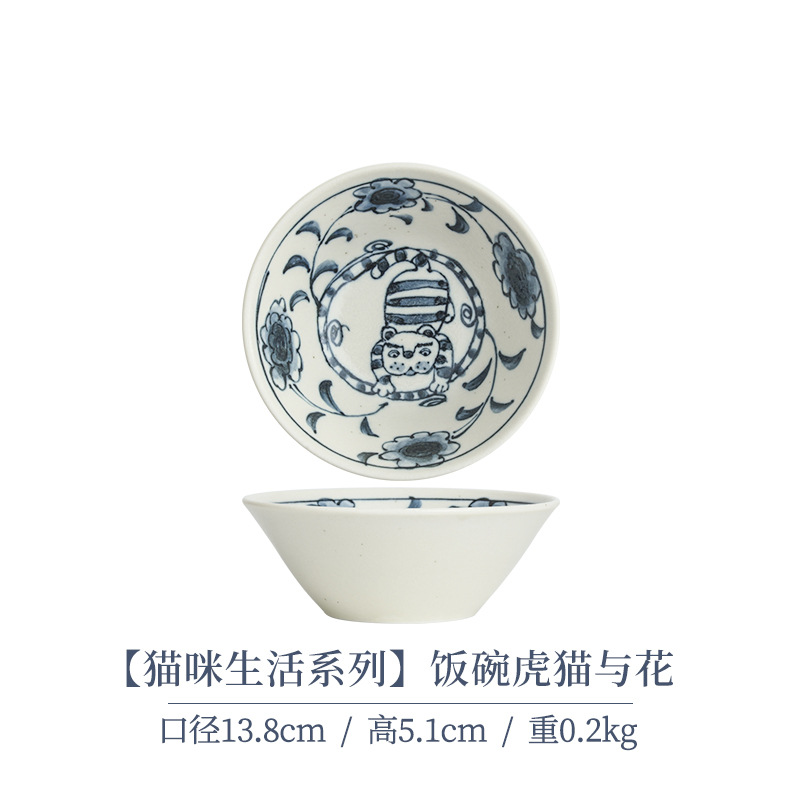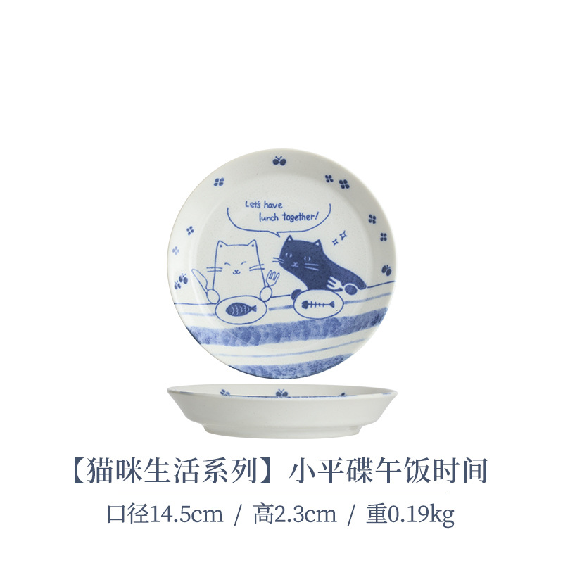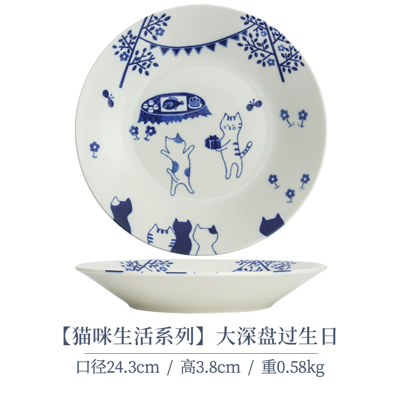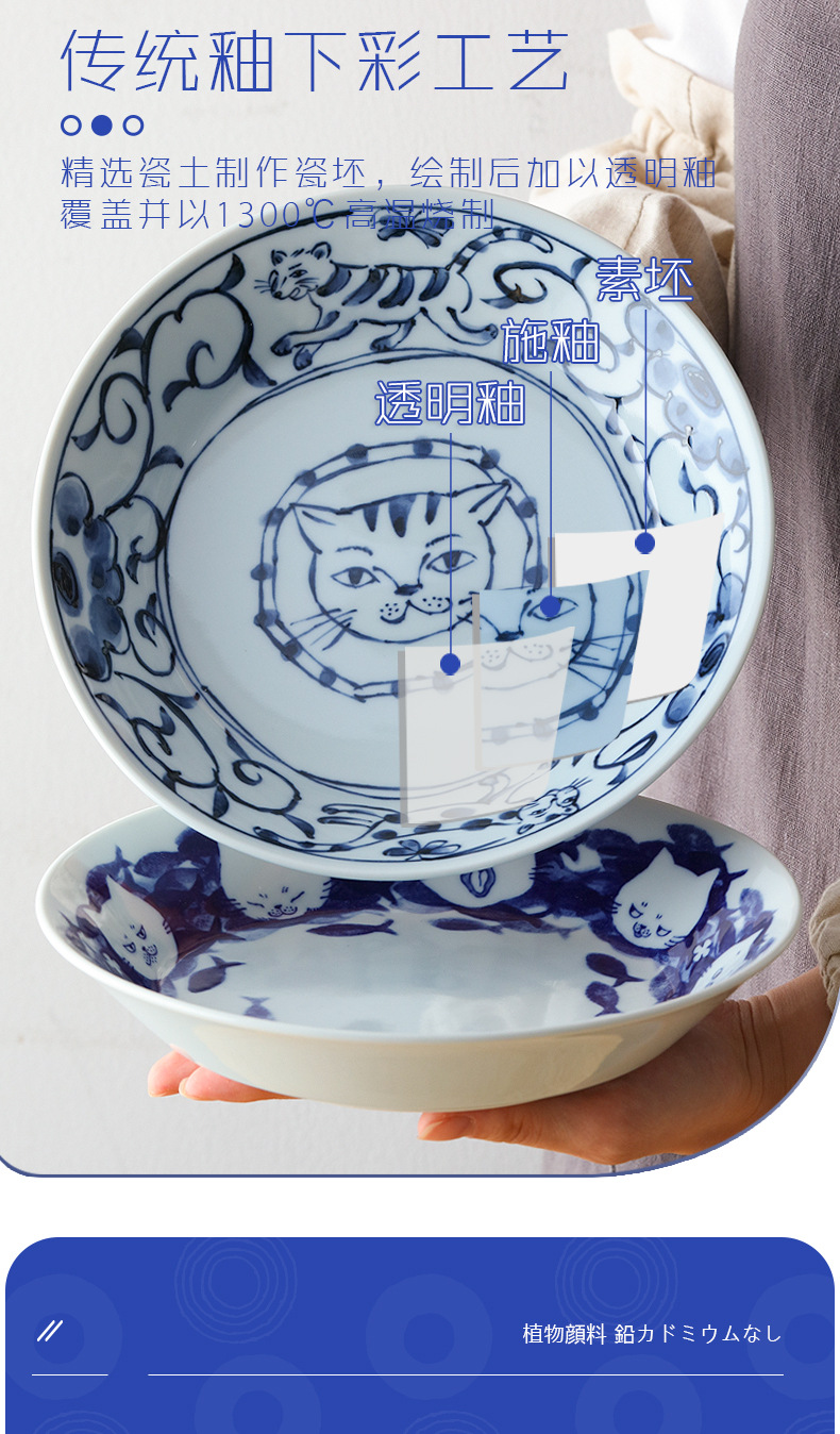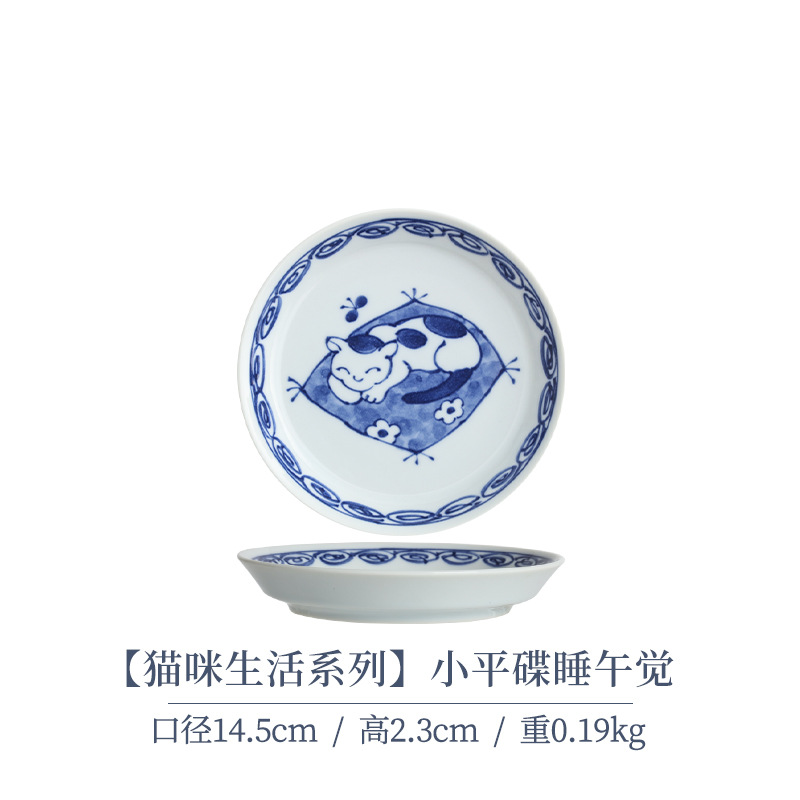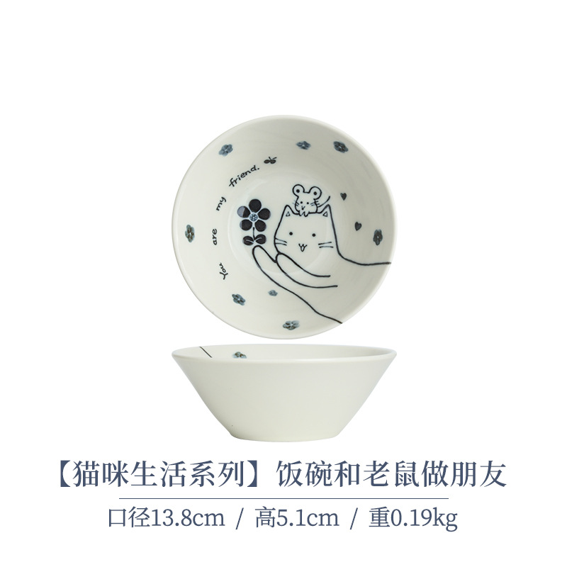 일본 수입 메이자키 세라믹 식기 고양이 라이스 그릇 일본 딥 플레이트 딥 소스 디저트 접시라면 그릇 수프 그릇