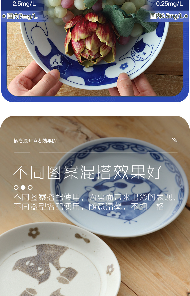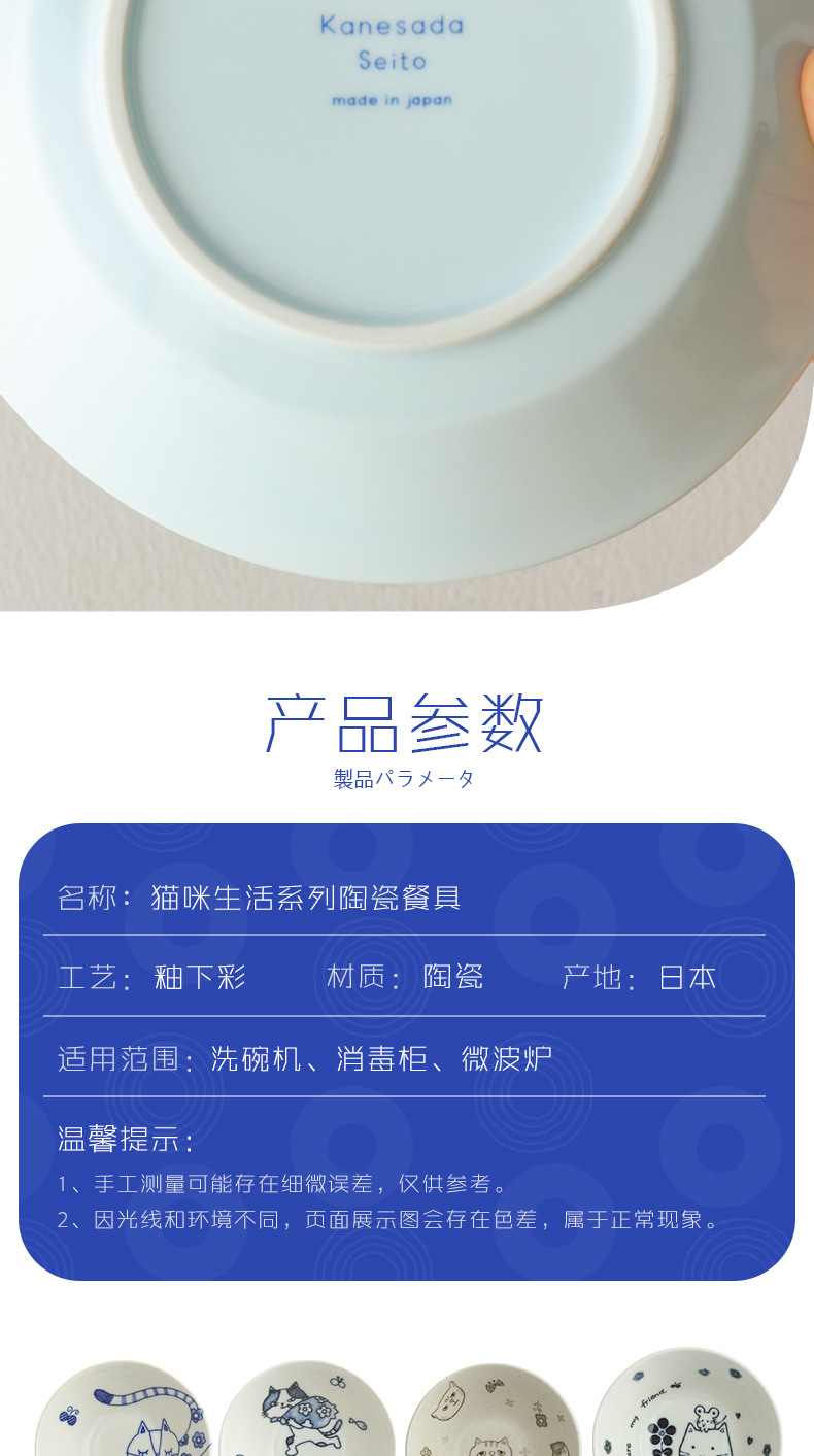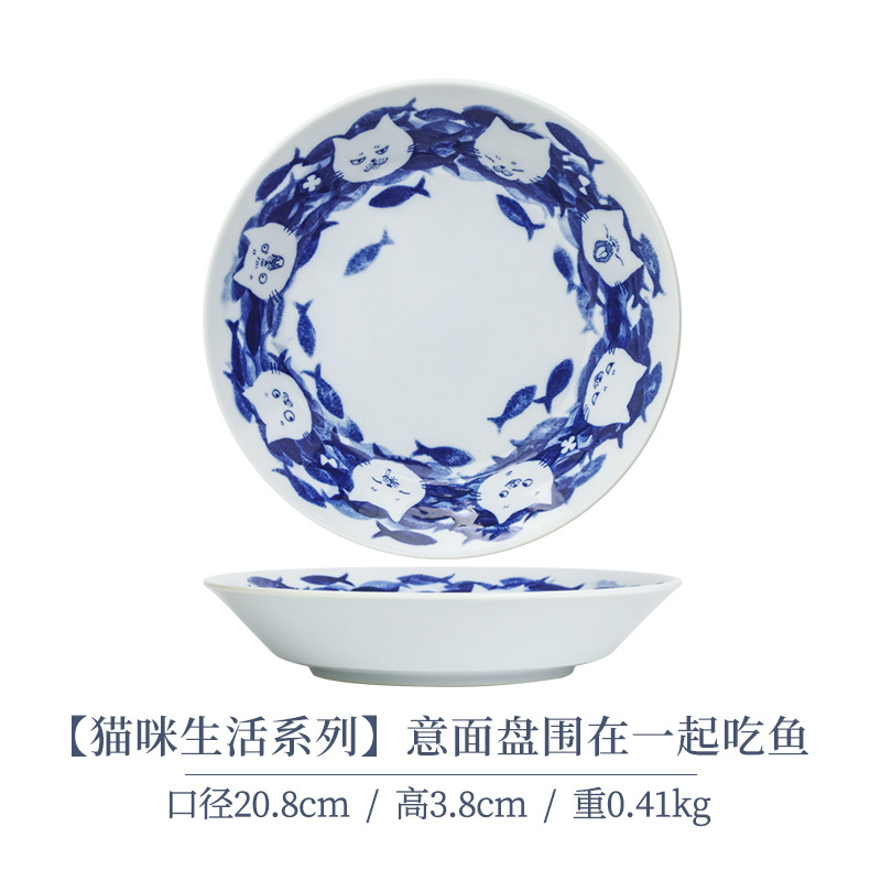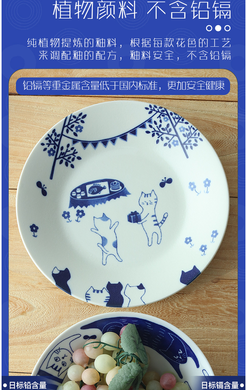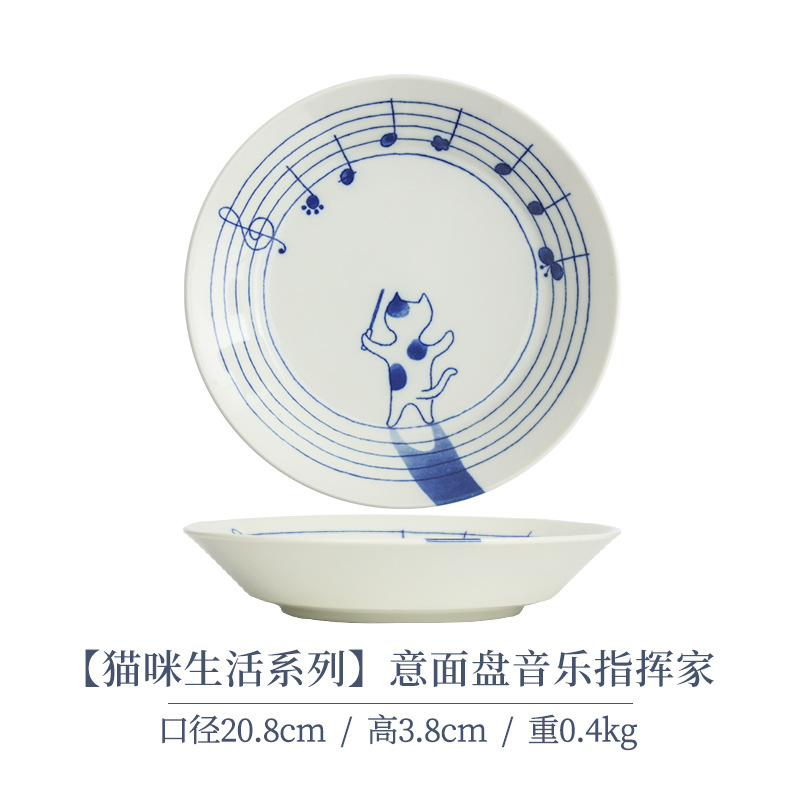 일본 수입 메이자키 세라믹 식기 고양이 라이스 그릇 일본 딥 플레이트 딥 소스 디저트 접시라면 그릇 수프 그릇