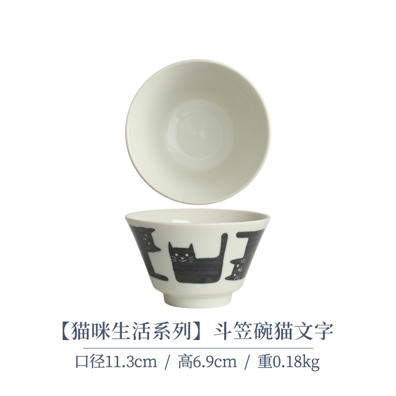 • 대나무 모자 그릇 고양이 텍스트 11.3cm