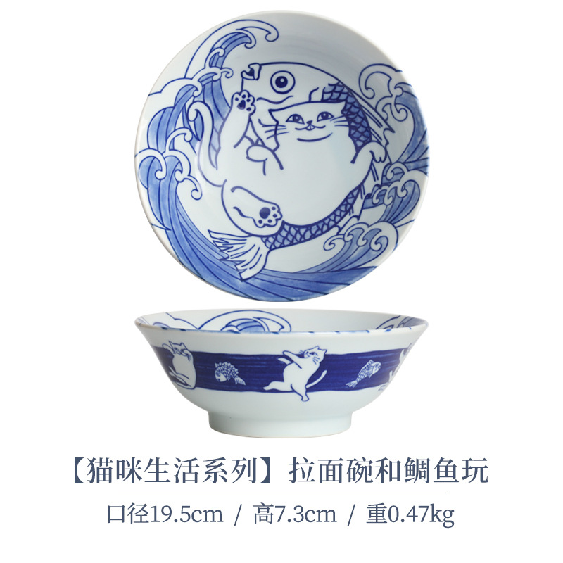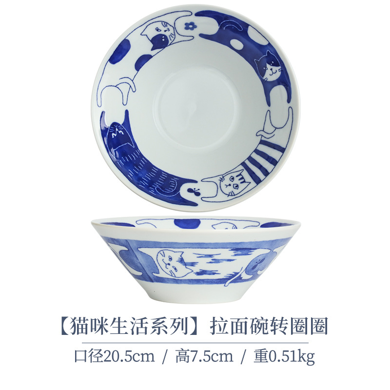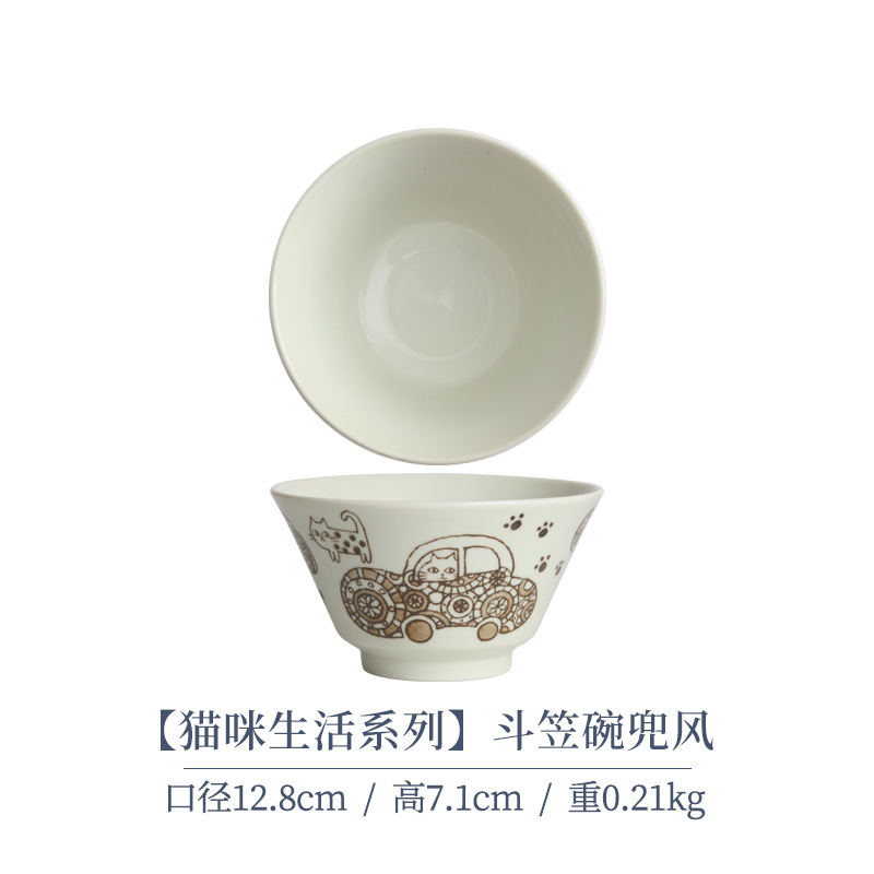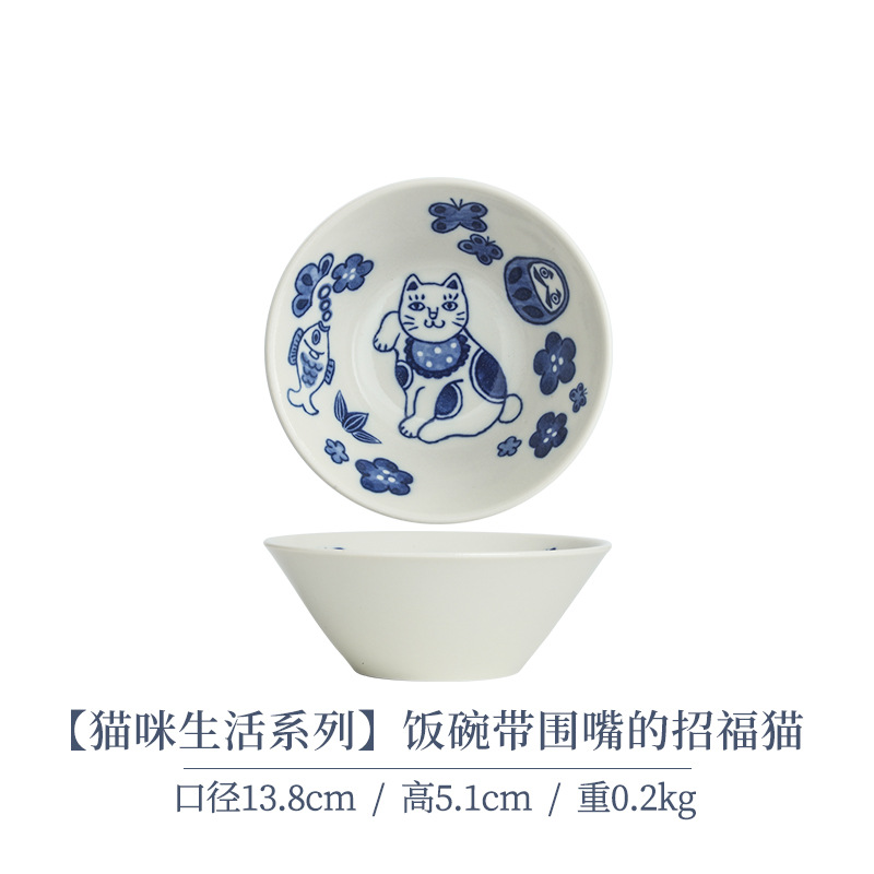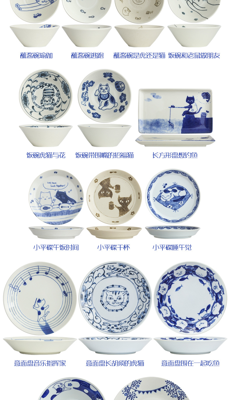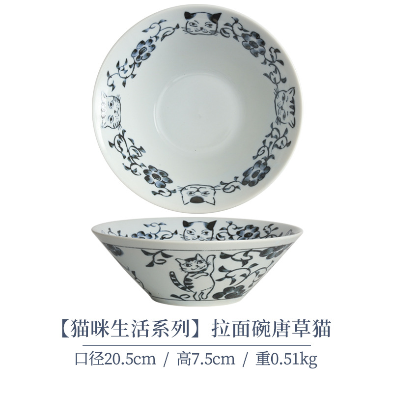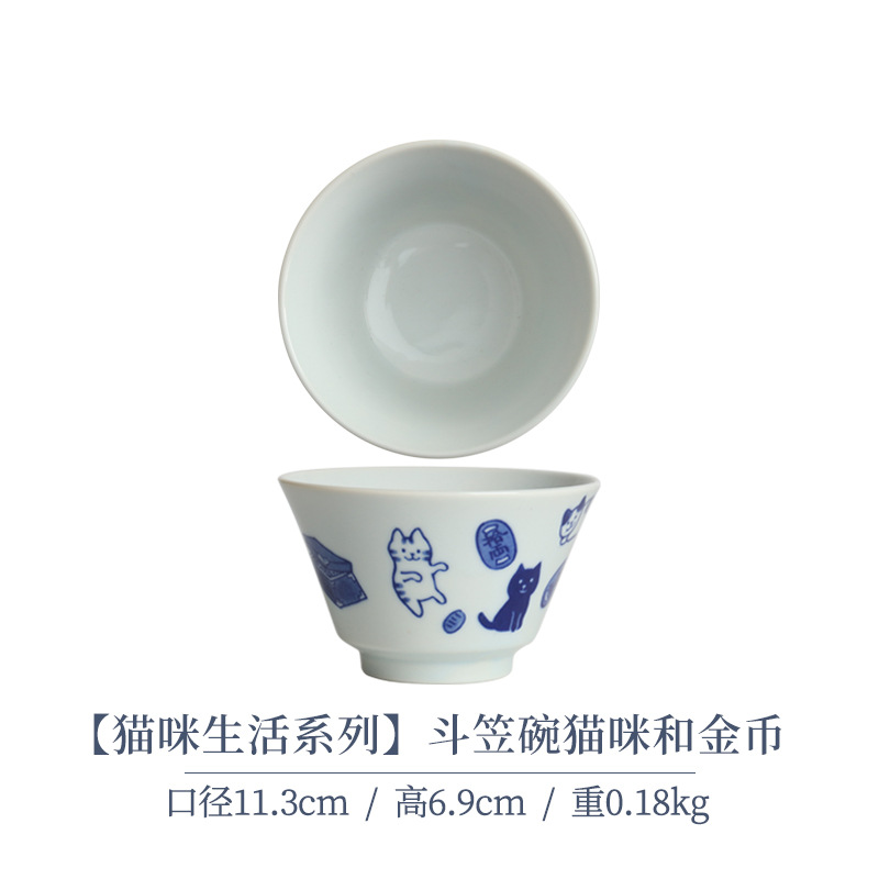 일본 수입 메이자키 세라믹 식기 고양이 라이스 그릇 일본 딥 플레이트 딥 소스 디저트 접시라면 그릇 수프 그릇스토어 가기