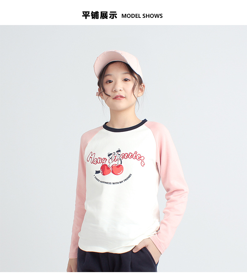 봄과 가을 한국 스타일 새 여자 긴팔 티셔츠 중대형 어린이 면화 캐시미어 라글란 탑 어린이 바닥 셔츠 도매스토어 가기