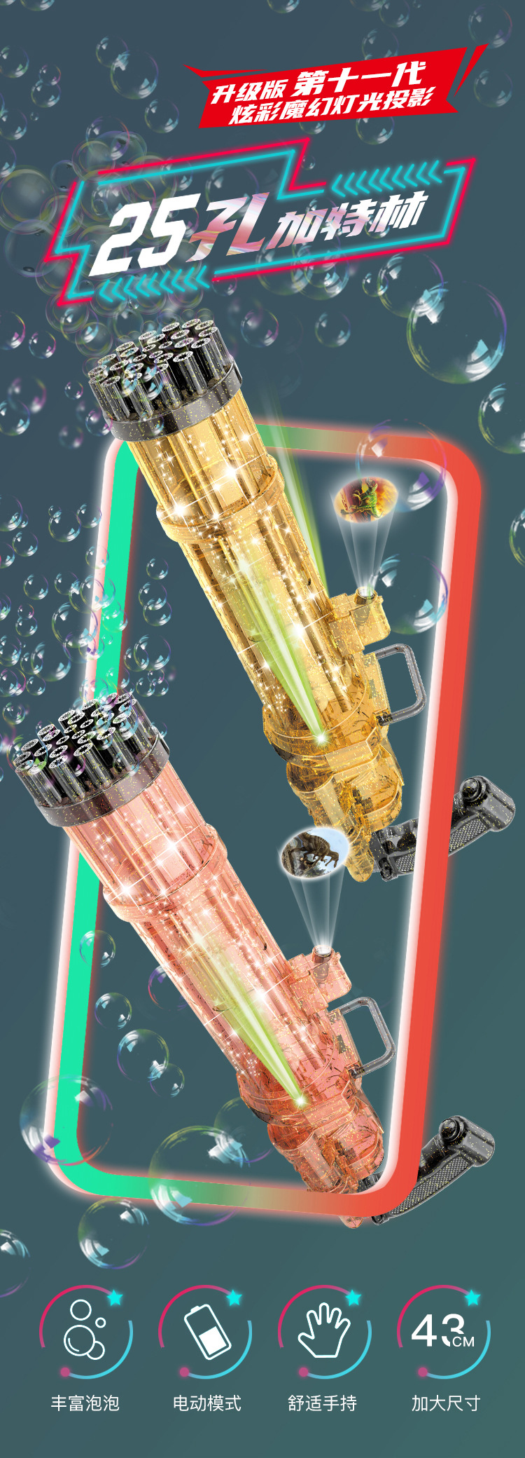 가틀링 버블 머신 어린이용 휴대용 버블 장난감 남녀공용 자동 버블 건 전동 버블 머신