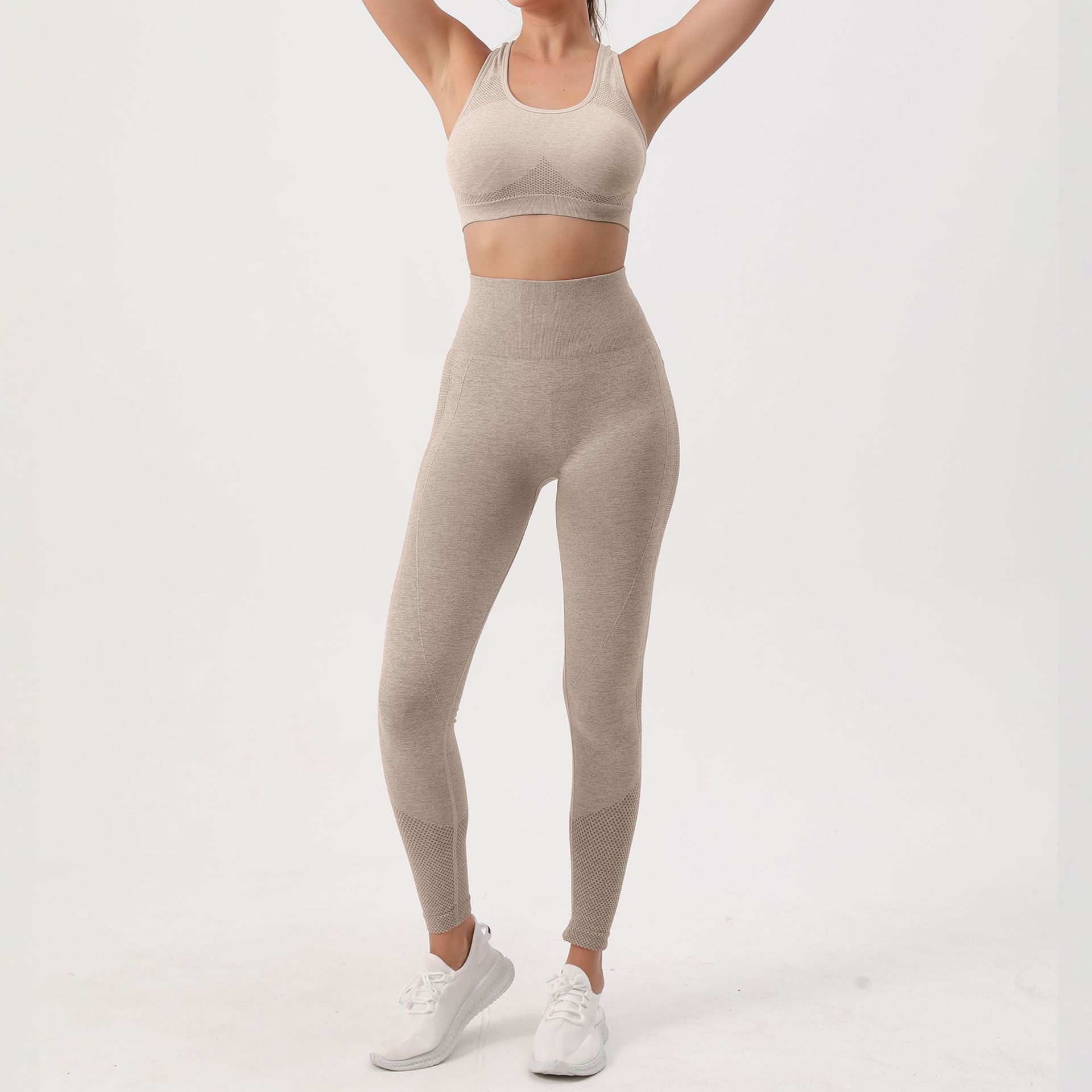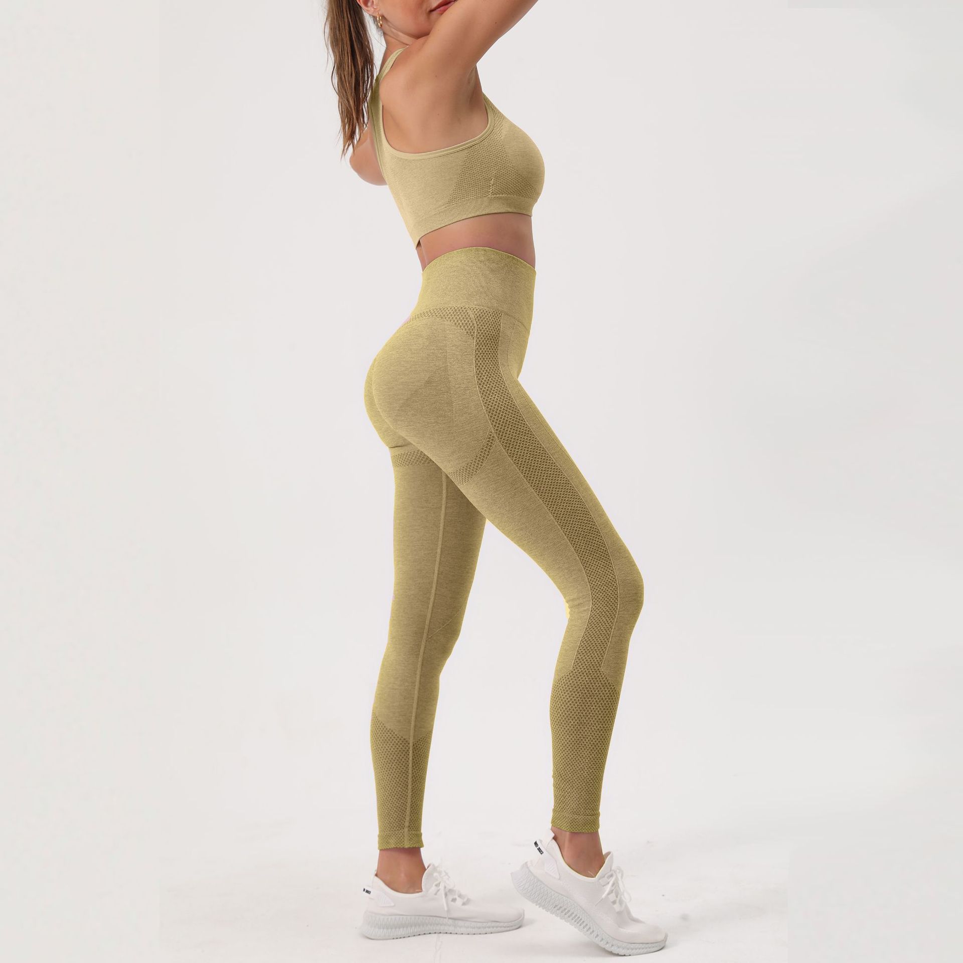 크로스 보더 심리스 요가 의류 하이 웨이스트 포인트 힙 요가 팬츠 가슴 패드 스포츠 피트니스 브라 속옷 2 종 세트스토어 가기