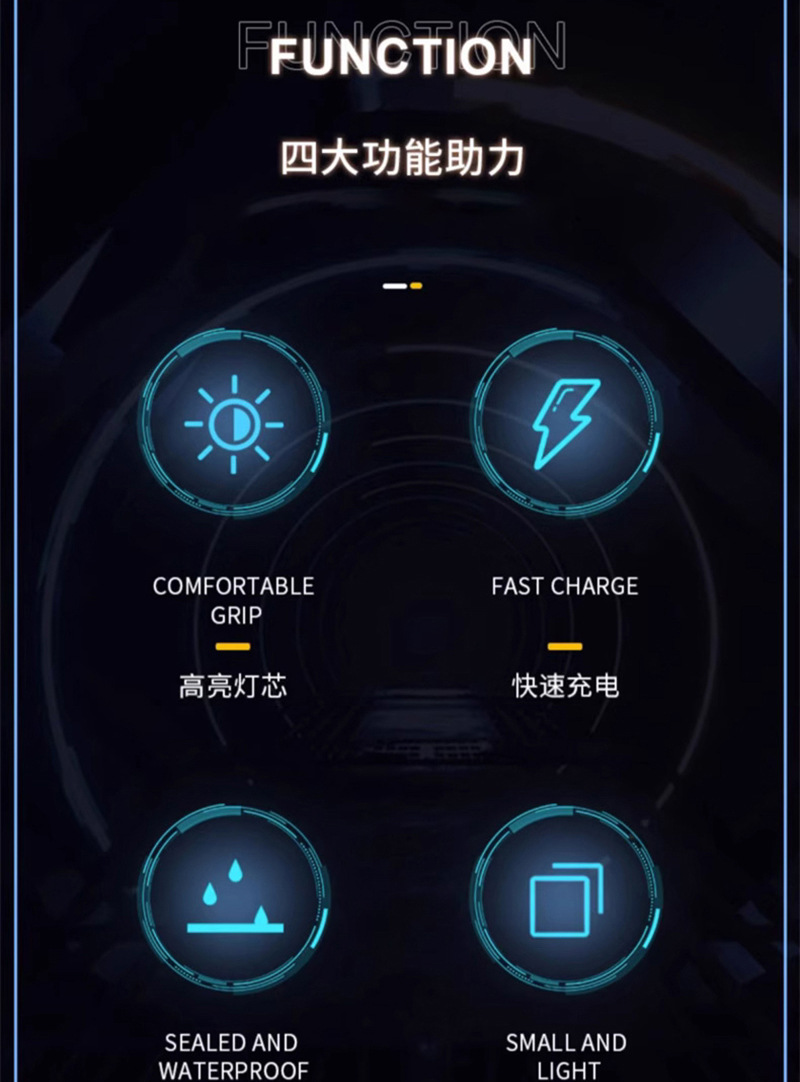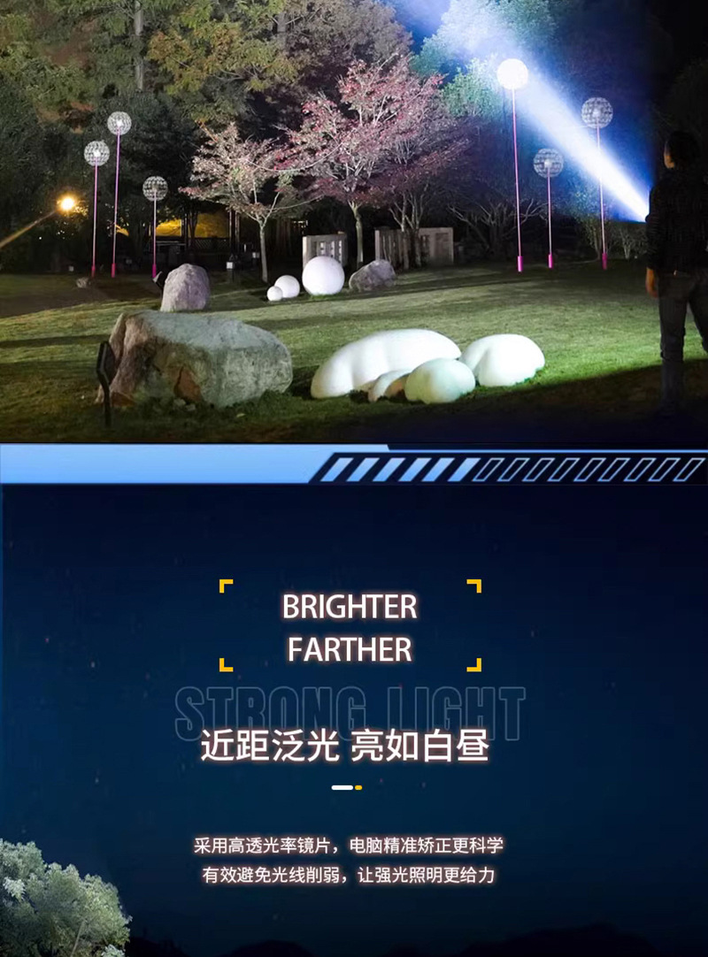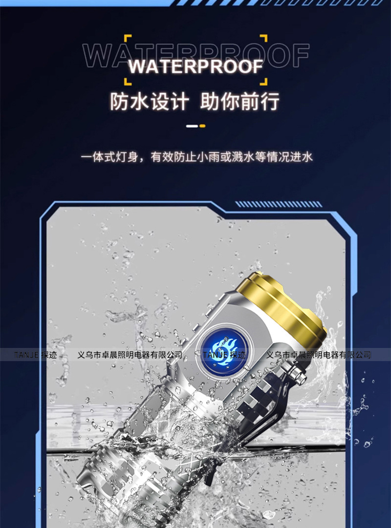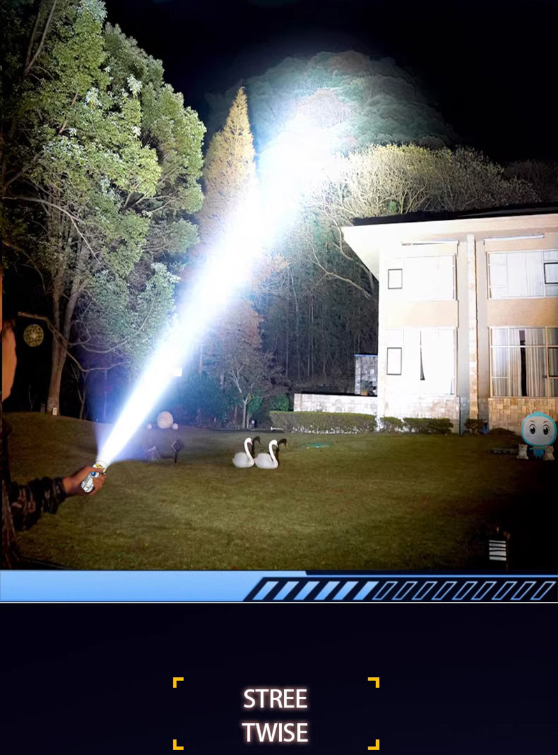 폭발성 강한 빛 슈퍼 밝은 가정 충전식 야외 야간 휴대용 LED 장거리 손전등 3 눈 작은 괴물 손전등