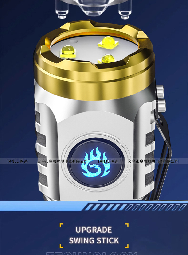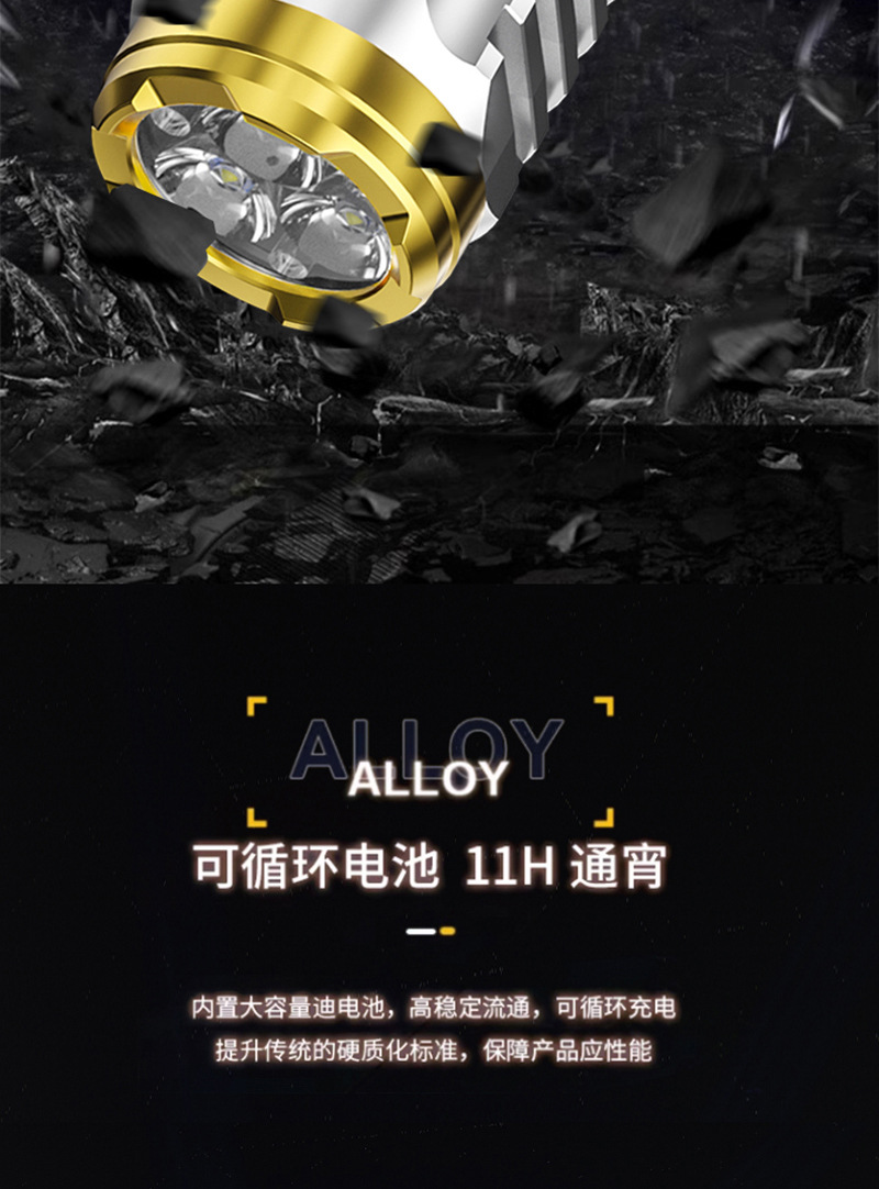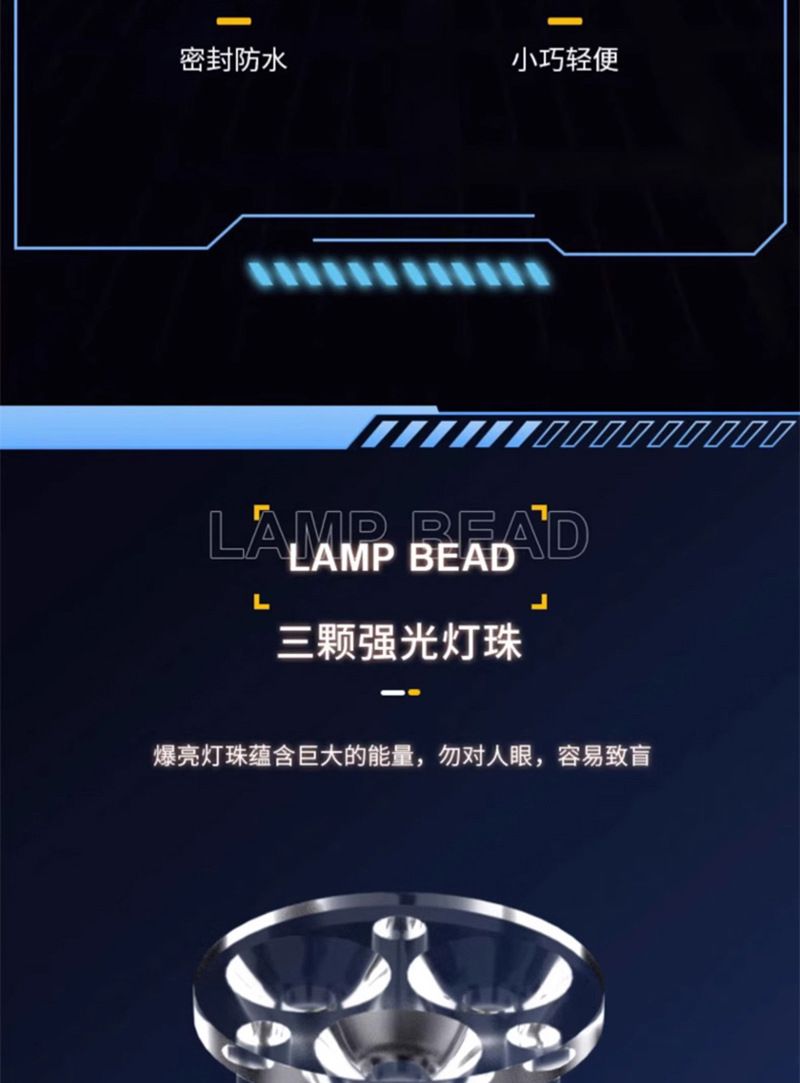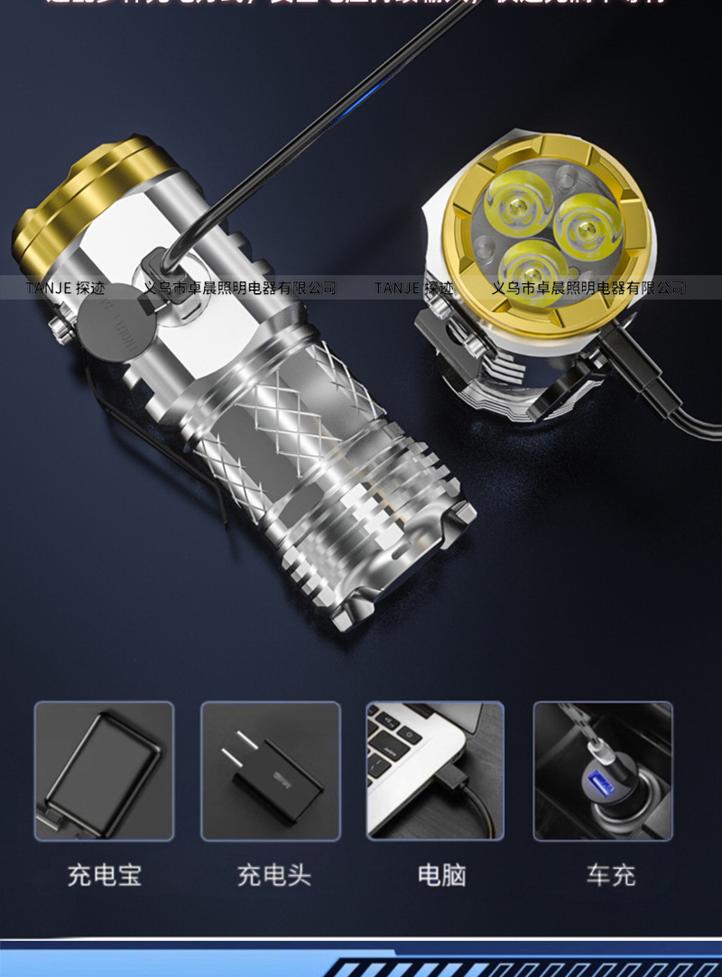 폭발성 강한 빛 슈퍼 밝은 가정 충전식 야외 야간 휴대용 LED 장거리 손전등 3 눈 작은 괴물 손전등스토어 가기