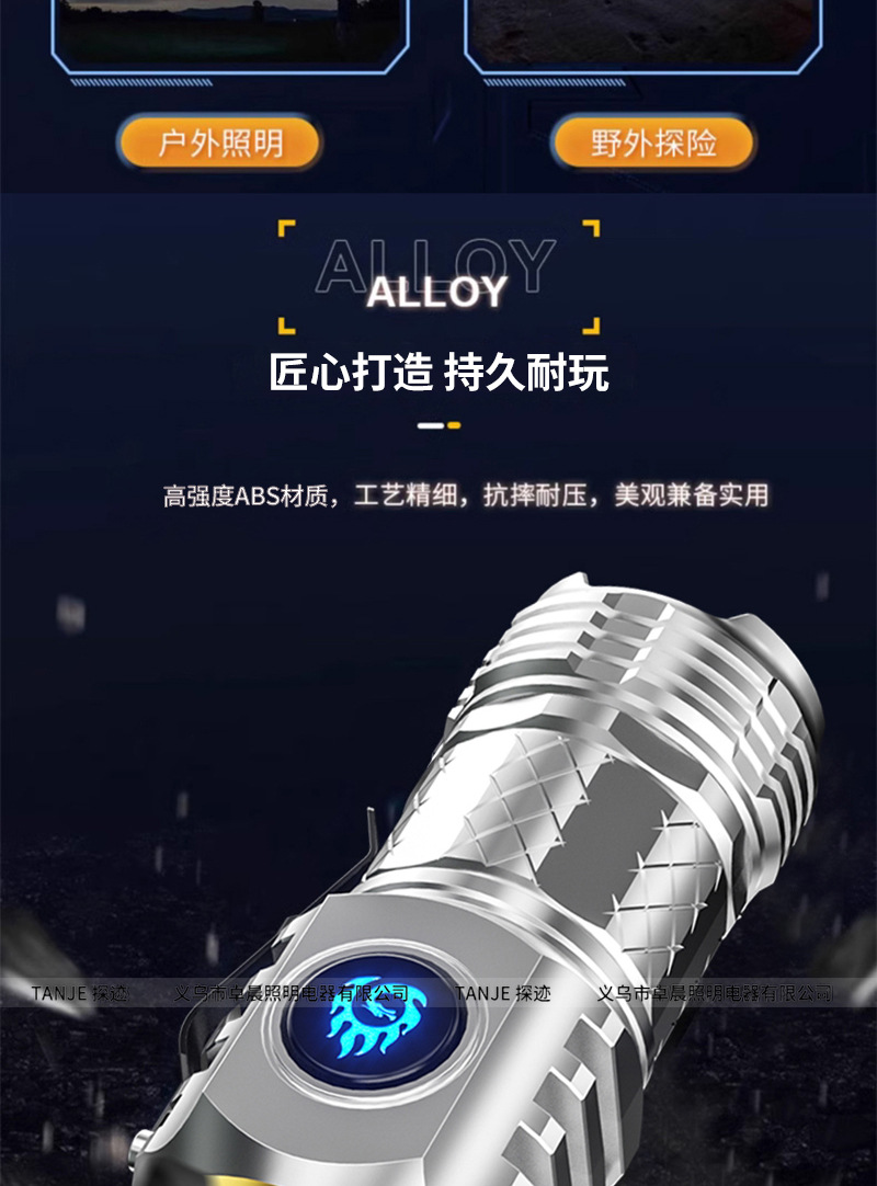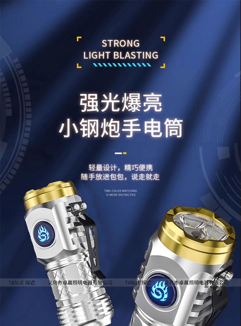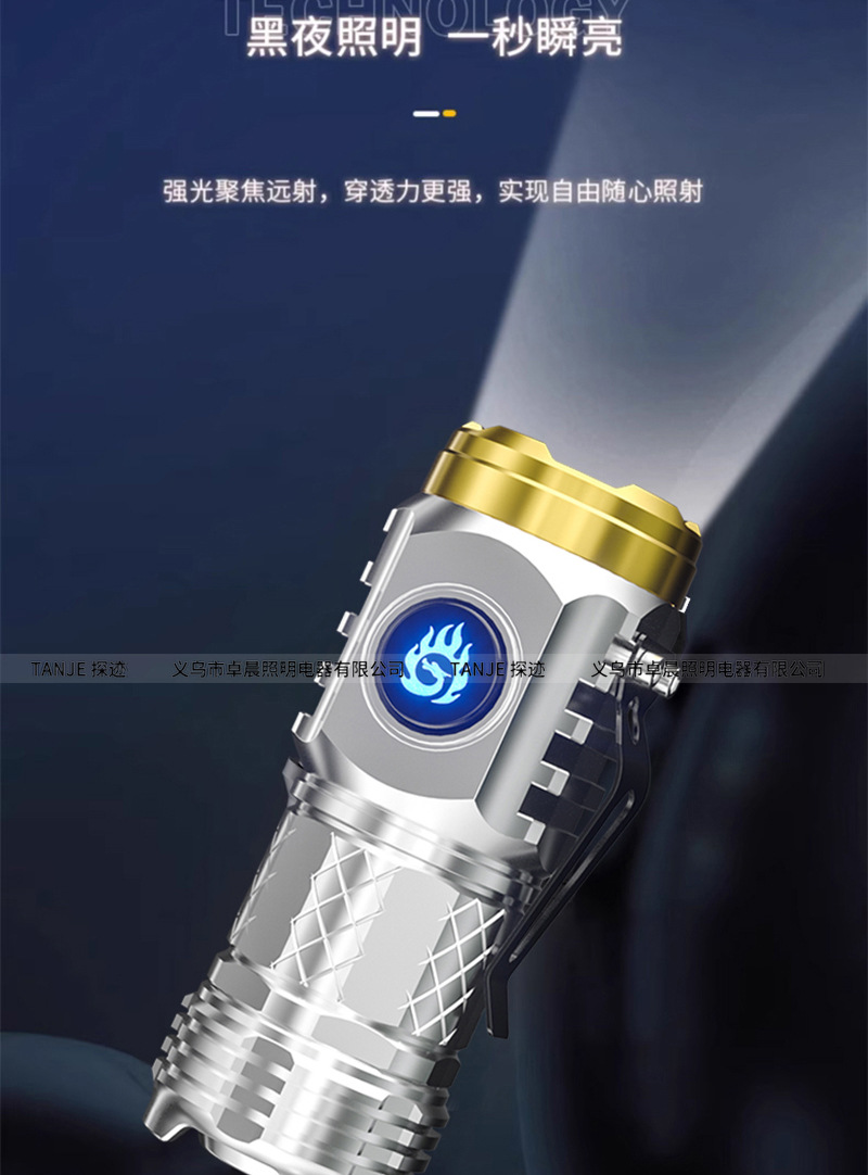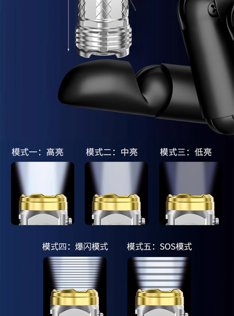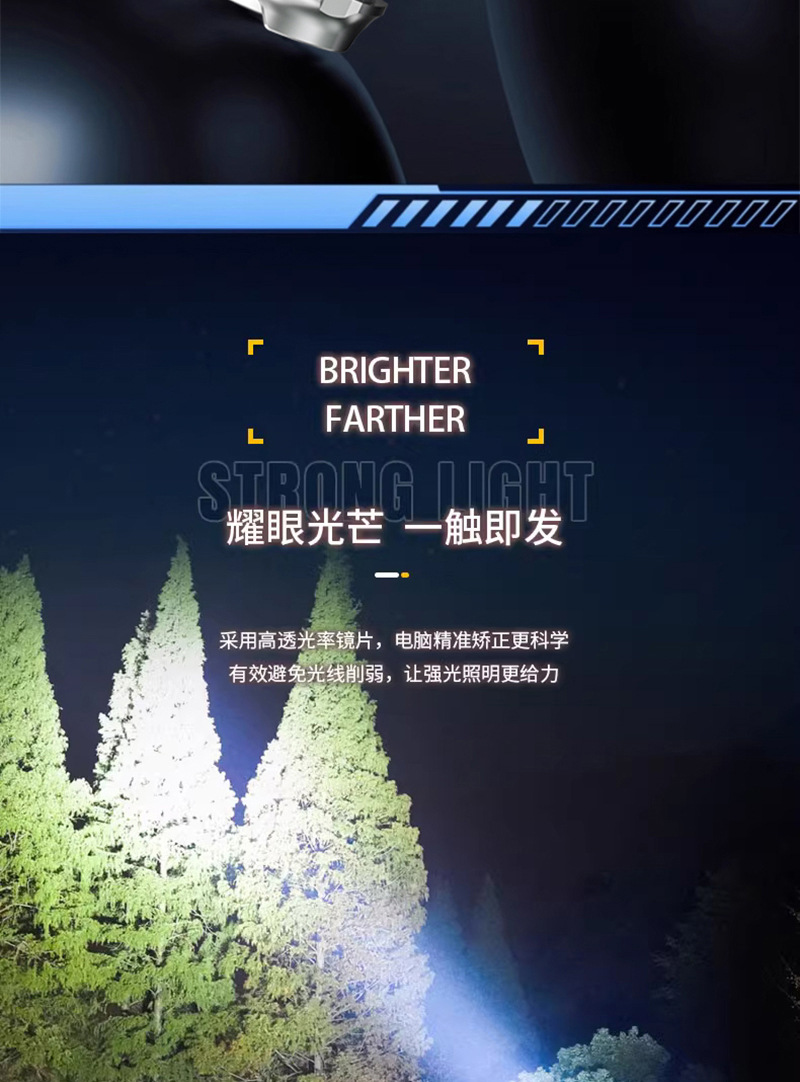 폭발성 강한 빛 슈퍼 밝은 가정 충전식 야외 야간 휴대용 LED 장거리 손전등 3 눈 작은 괴물 손전등스토어 가기