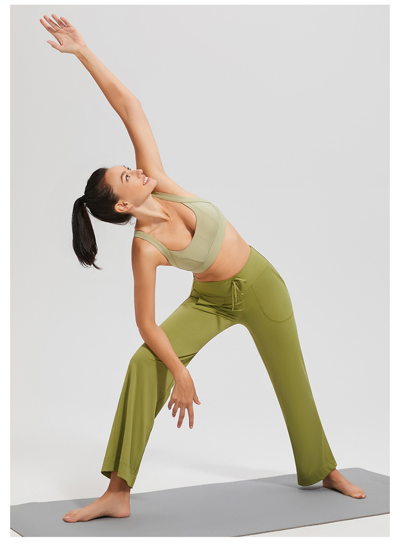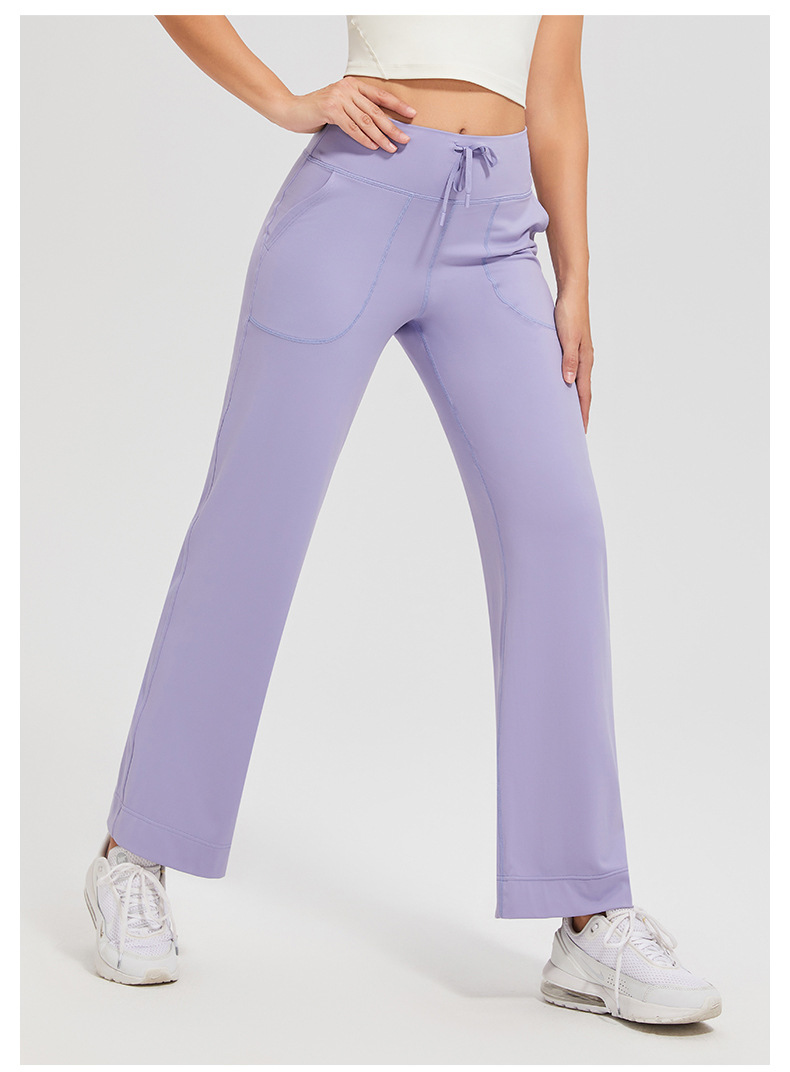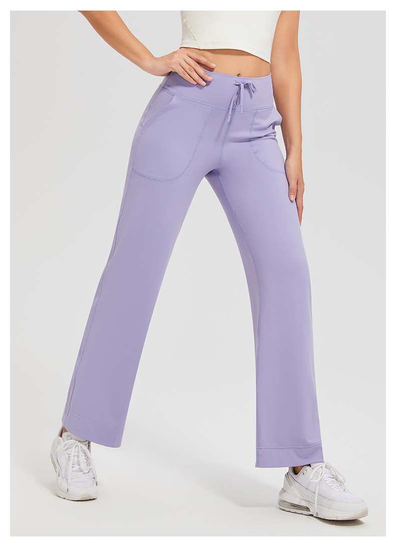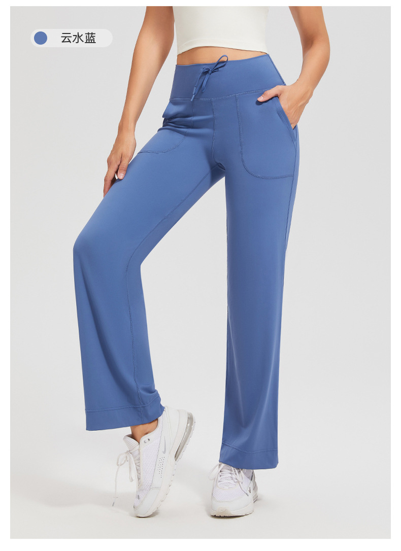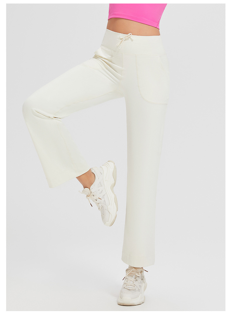 크로스보더 누드톤 드로스트링 요가 팬츠 여성용 신축성 높은 허리 슬림핏 드레이프 스포츠 캐주얼 마이크로 플레어 롱 와이드 팬츠스토어 가기
