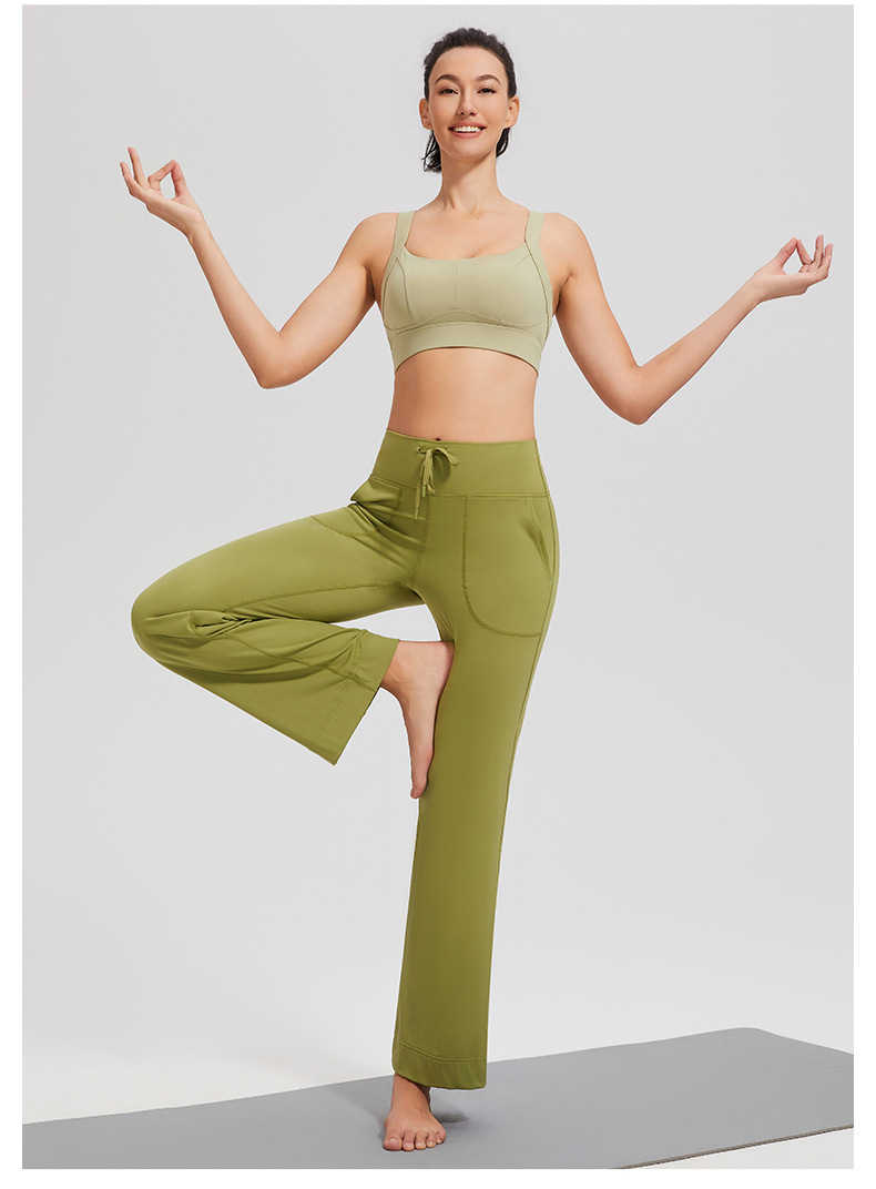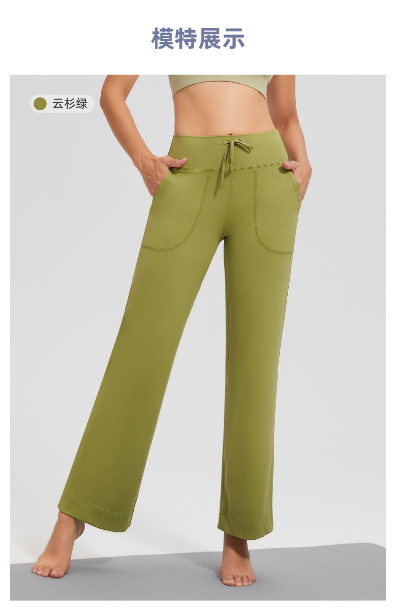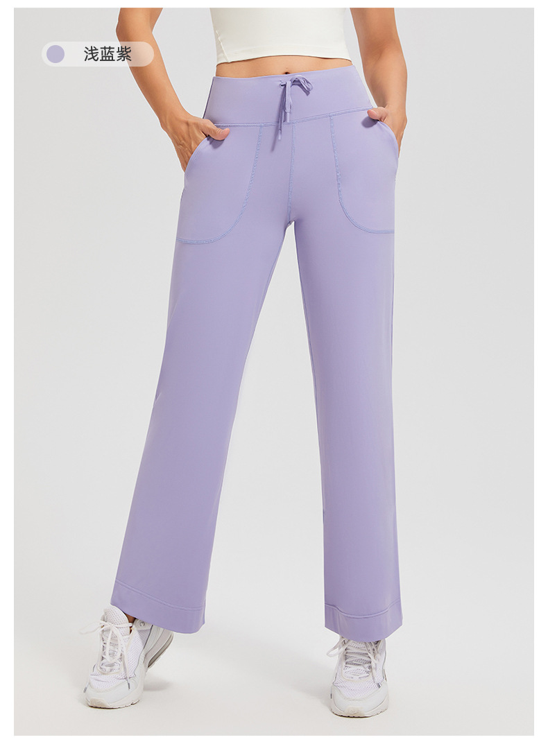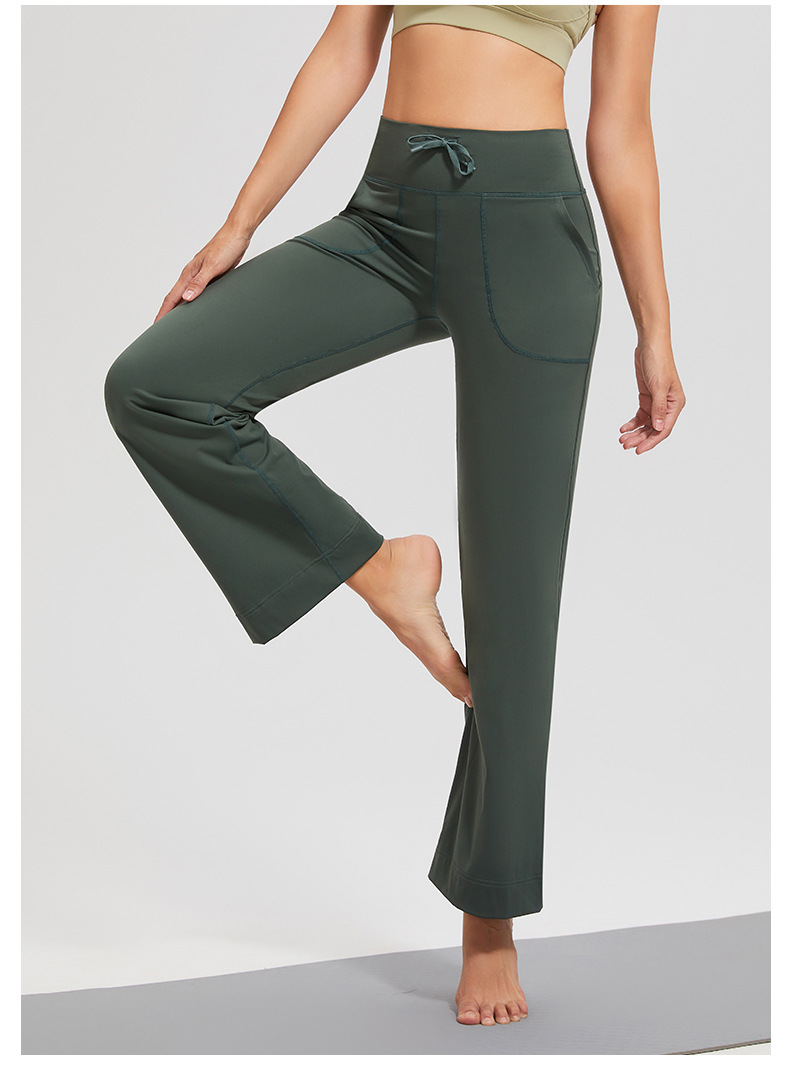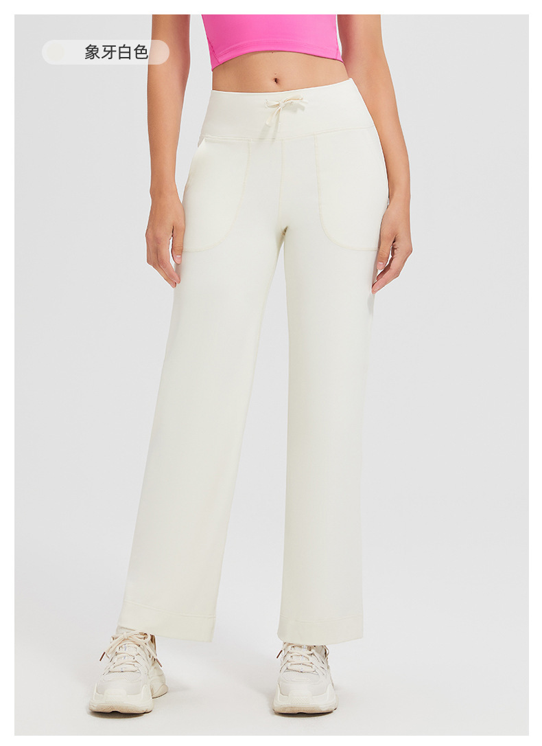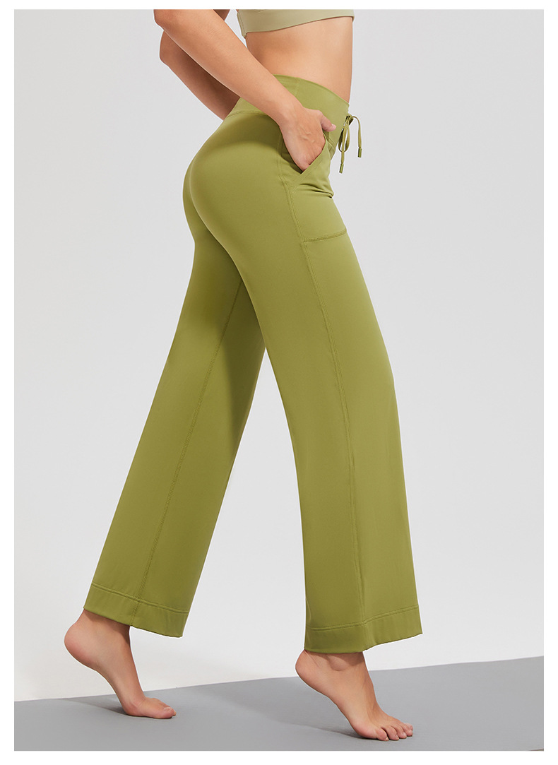 크로스보더 누드톤 드로스트링 요가 팬츠 여성용 신축성 높은 허리 슬림핏 드레이프 스포츠 캐주얼 마이크로 플레어 롱 와이드 팬츠스토어 가기