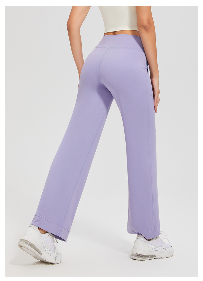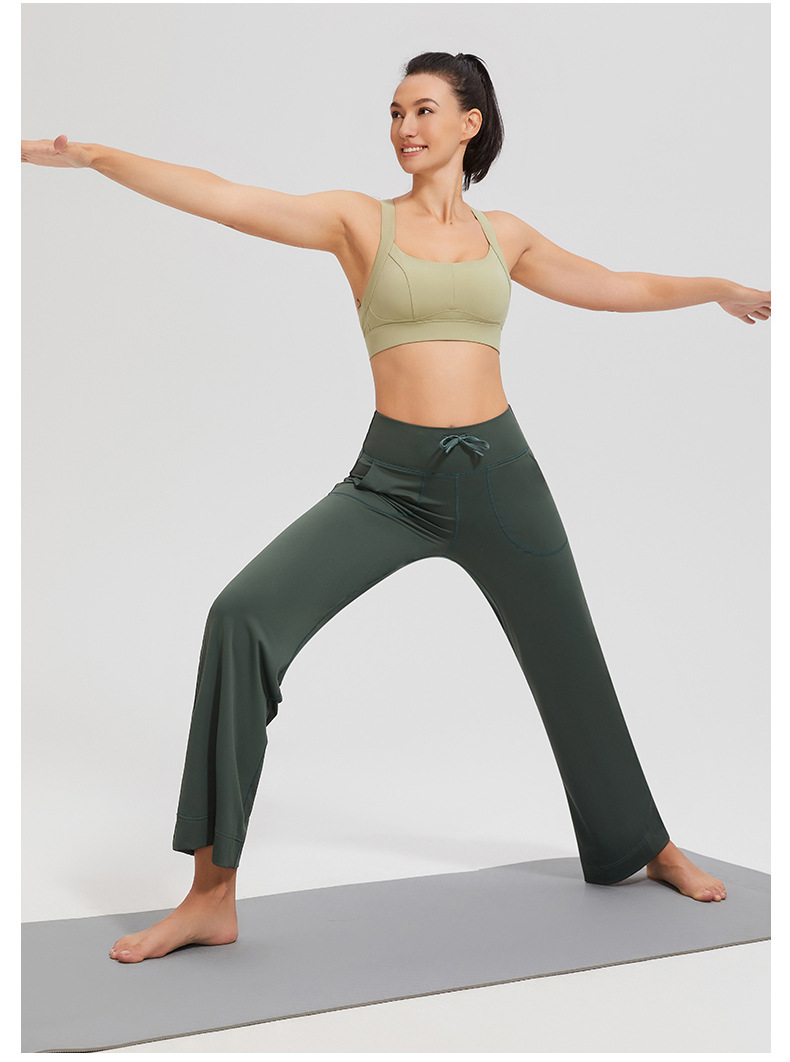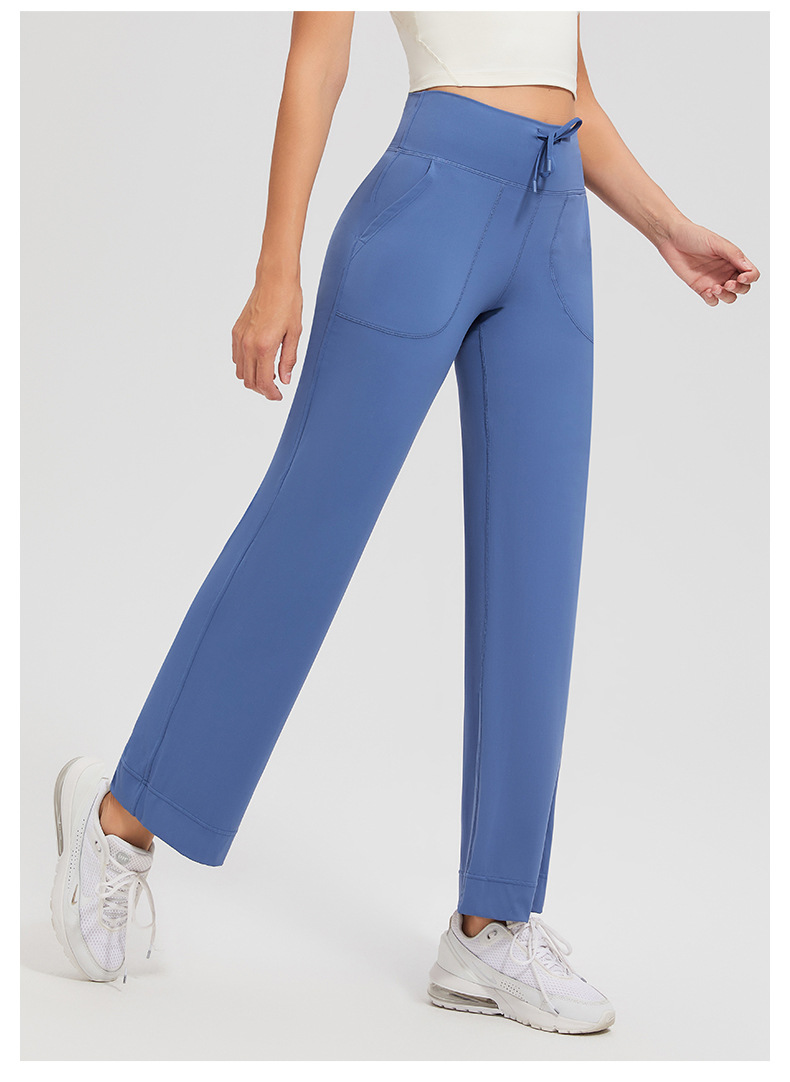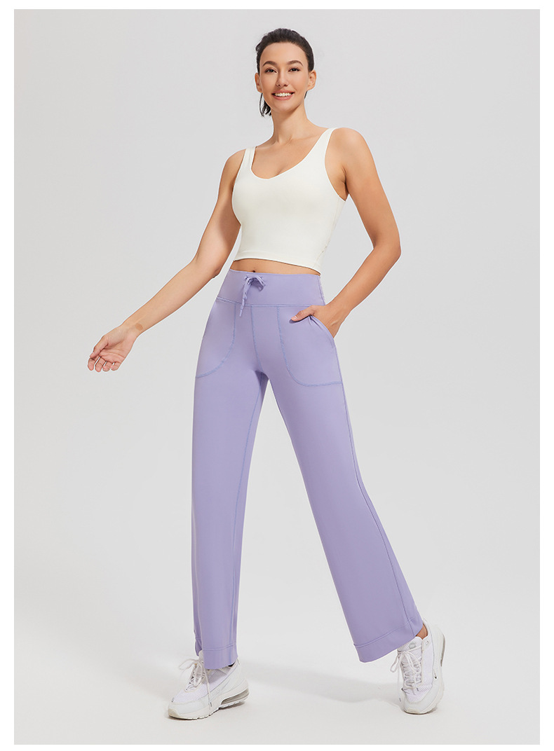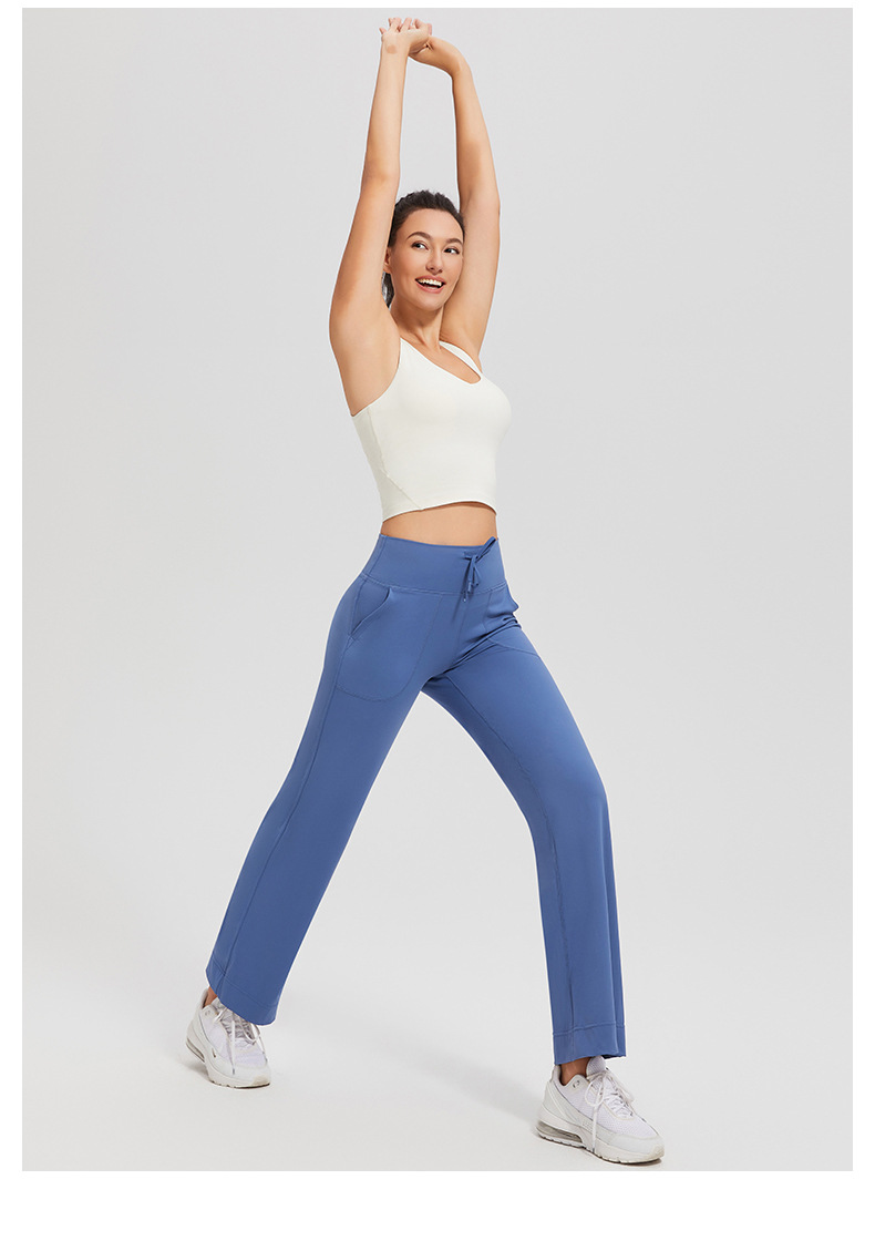크로스보더 누드톤 드로스트링 요가 팬츠 여성용 신축성 높은 허리 슬림핏 드레이프 스포츠 캐주얼 마이크로 플레어 롱 와이드 팬츠스토어 가기
